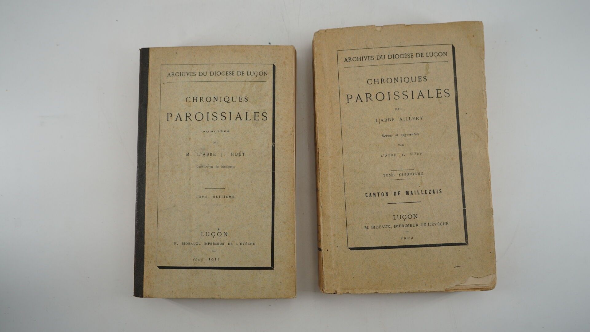 AILLERY (Abbé) & HUET (Abbé J.) - Archives du diocèse de Luçon. Parish chronicles. Tome cinquième Canton de Maillezais. Tome huitième - Luçon ; M. Bideaux, 1904-1911 - 2 volumes In-8° stapled (spine of 2nd volume restored) - Out-of-text plates.