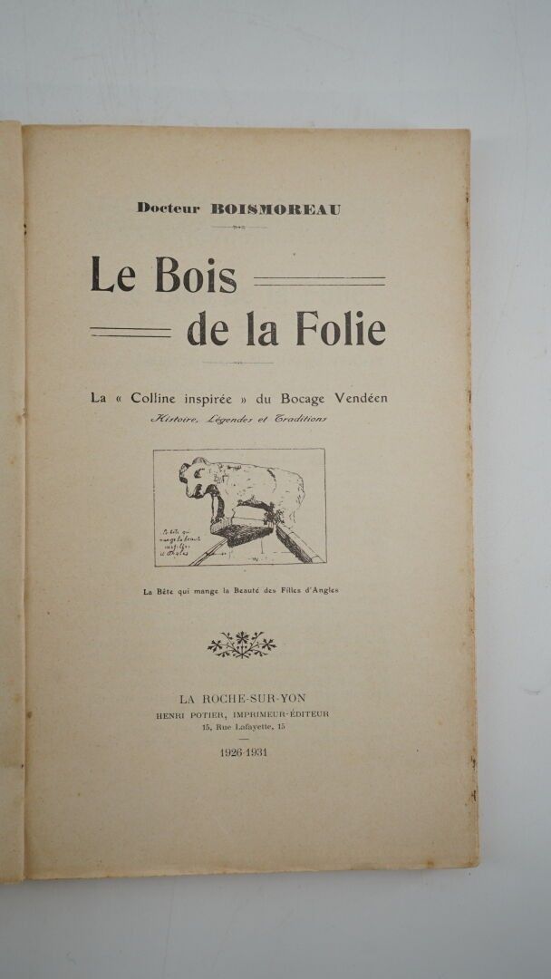 BOISMOREAU (Docteur) - Le Bois de la Folie ; La colline inspirée du bocage vendéen ; Histoire, légendes et traditions - La Roche-sur-Yon ; Henri Potier, 1926-1931 - 1 volume In-8° stapled, without cover - Vignette on title.