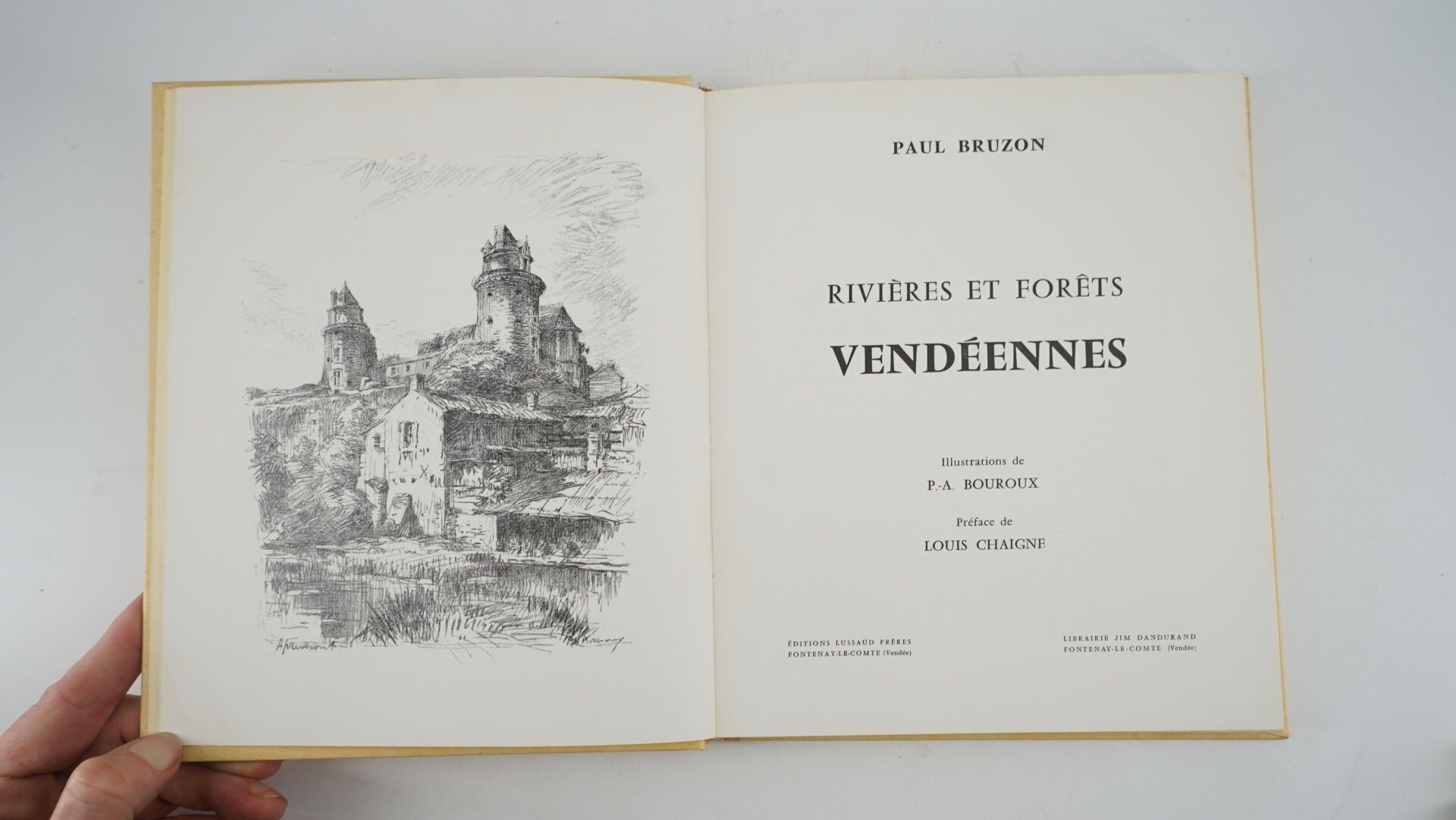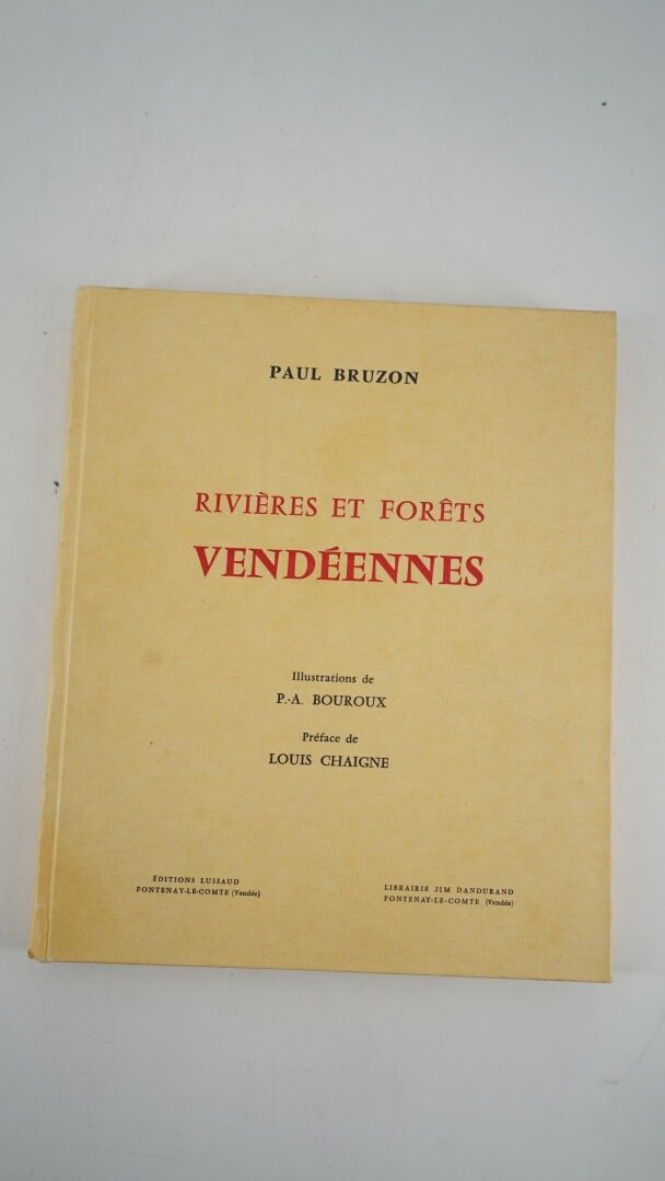 BRUZON (Paul) - Rivières et forêts vendéennes - Fontenay-le-Comte ; Éditions Lussaud, Librairie Jim Dandurand, 1969 - 1 volume In-8° - Bound in publisher's hardback - Frontispiece and illustrations in text, including full-page illustrations by P.-A. Bouroux - A very good numbered copy on fine paper.