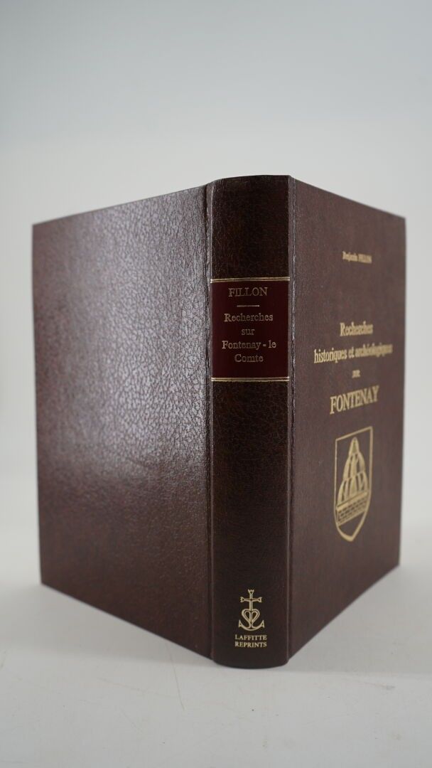 FILLON (Benjamin) - Recherches historiques et archéologiques sur Fontenay - Marseille ; Laffitte Reprints, 1976 (reprint of the edition of Fontenay, Nairière-Fontaine, 1846) - In-8° Portrait frontispice - Bound in havana skyvertex à la Bradel with gold titling - A very good copy printed at 300.