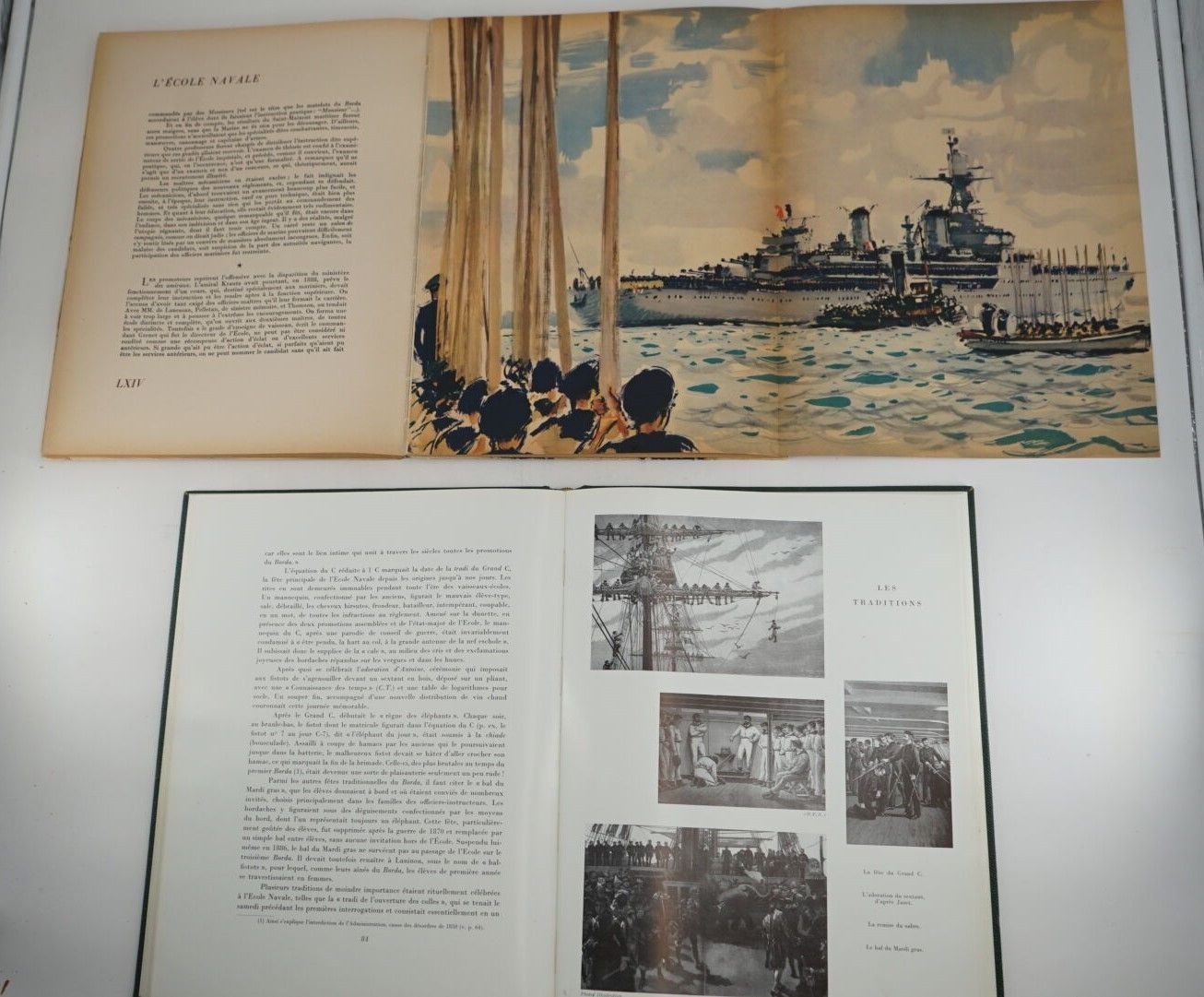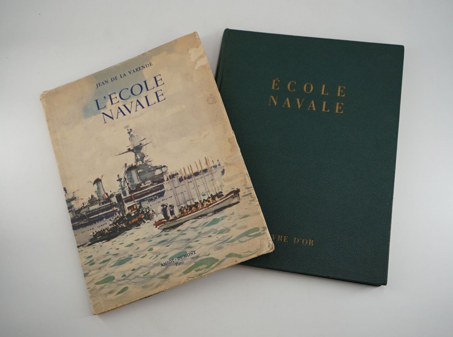 [MARINE] - Set of 2 volumes In-4° - LA VARENDE - L'école navale - Paris ; Amiot-Dumont, [1951] - Paperback with coloured illustrated front cover (small loss at top edge) - Illustrations in and out of text in 1 tone and 3 fold-outs out of text in colour by Albert Brenet - [COLLECTIF] - École navale. Livre d'or - Casablanca ; Raymond Lacour, [circa 1960] - Illustrations in text - Bound in publisher's green hardback with gold titling - Good copies.