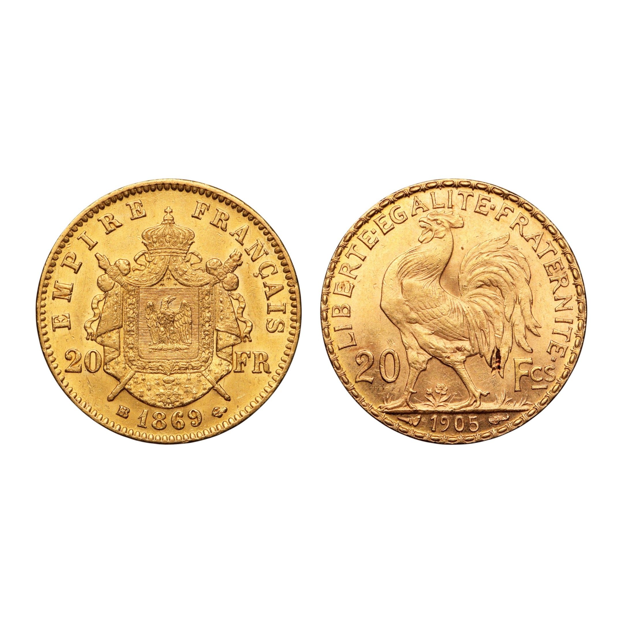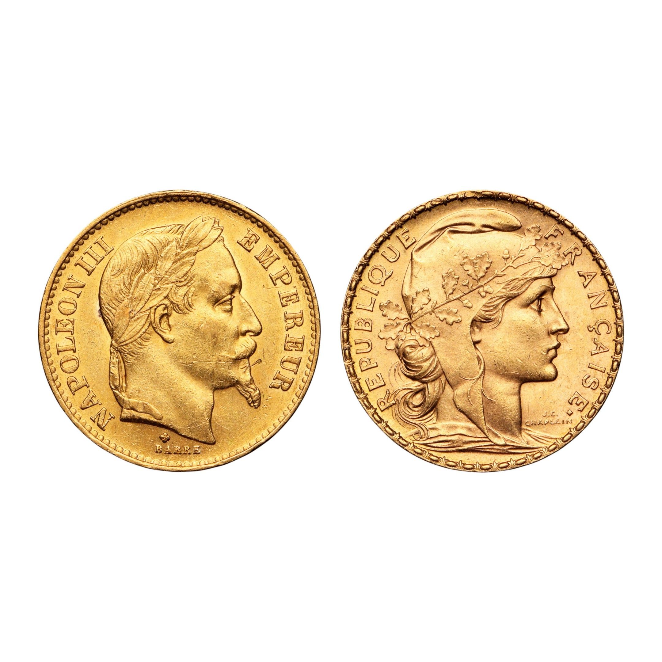 Premium FRANCE. 2 x 20 francs gold Napoléon III and IIIe République.