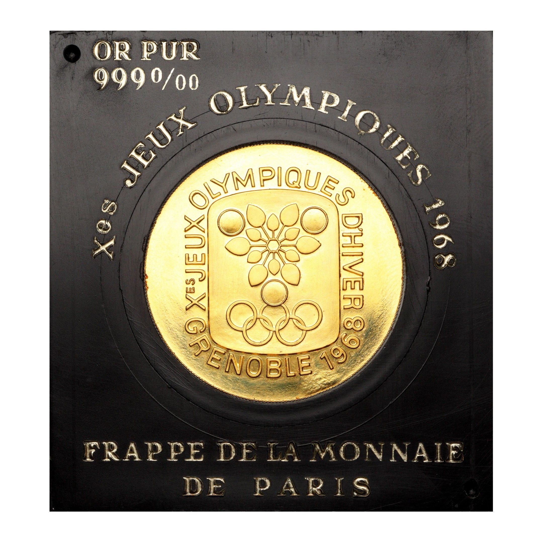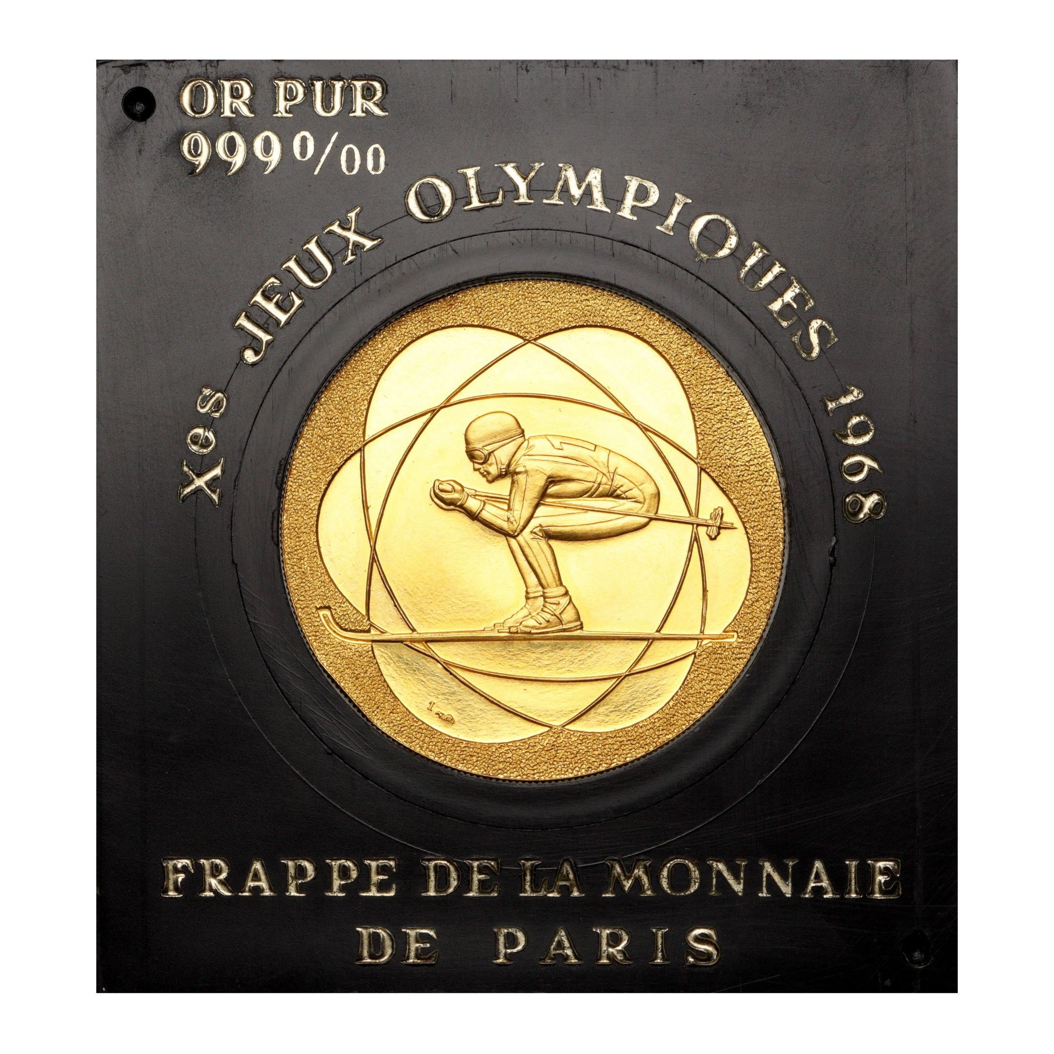 Coin in 24k yellow gold (999 thousandths) from the X Winter Olympic Games of Grenoble 1968.