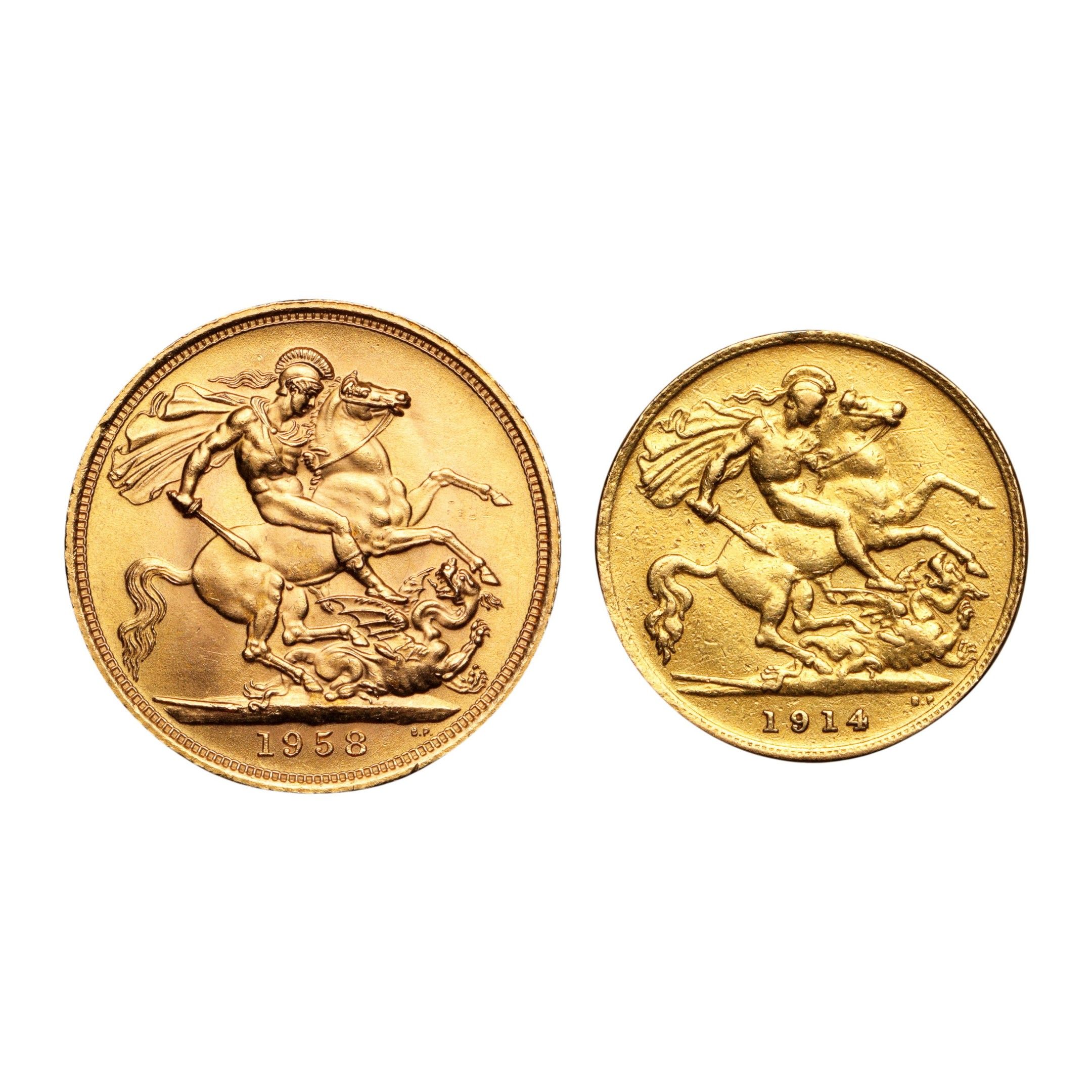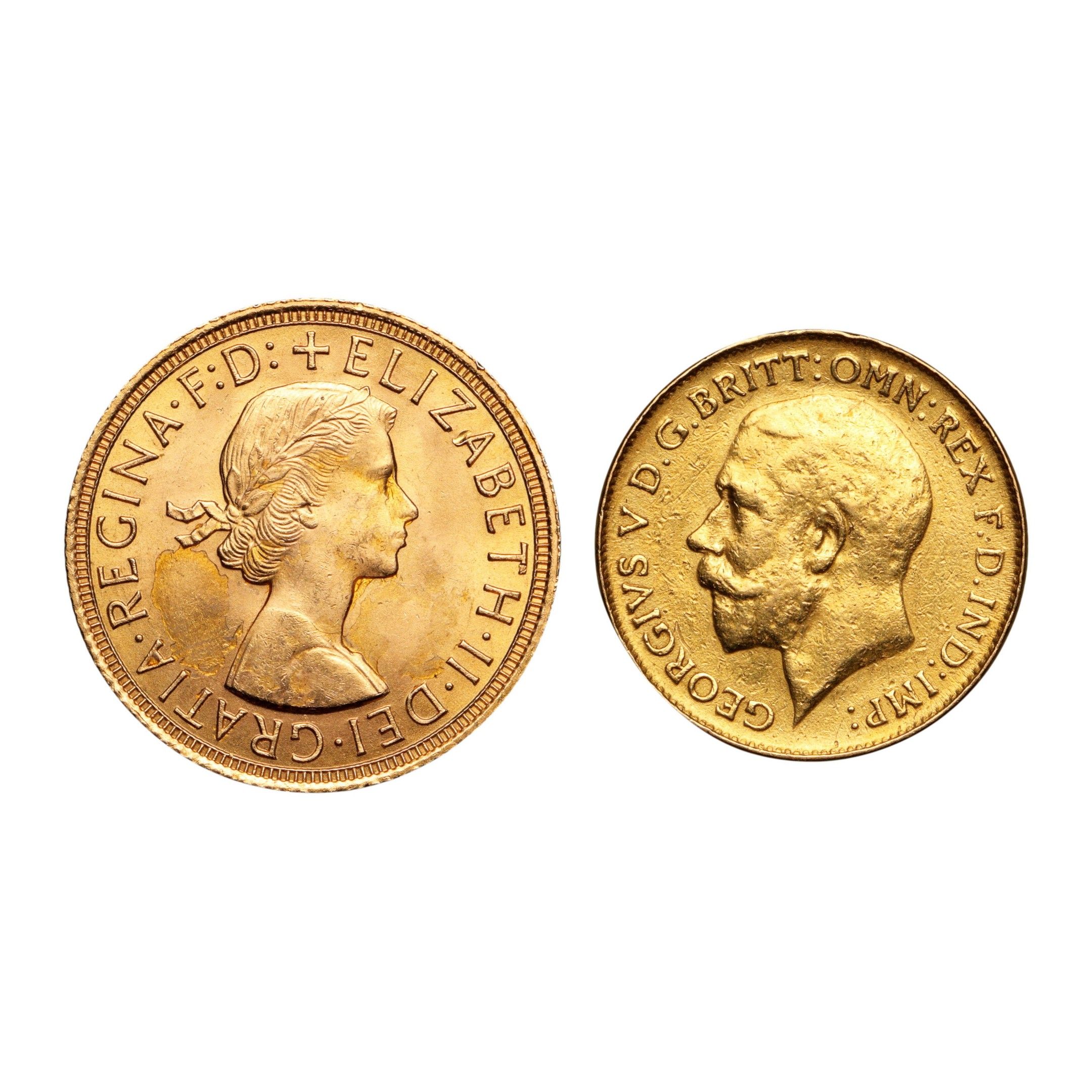 ENGLAND. - 1 x gold sovereign Elizabeth II young head, 1958. - 1 x half sovereign gold Geroges V, 1914. Lot kept outside the study in a bank safe and sold by designation. Fees reduced to 12% incl. VAT for lots 1 to 35 (Live Interencheres fees for these lots 15.6% incl. VAT).