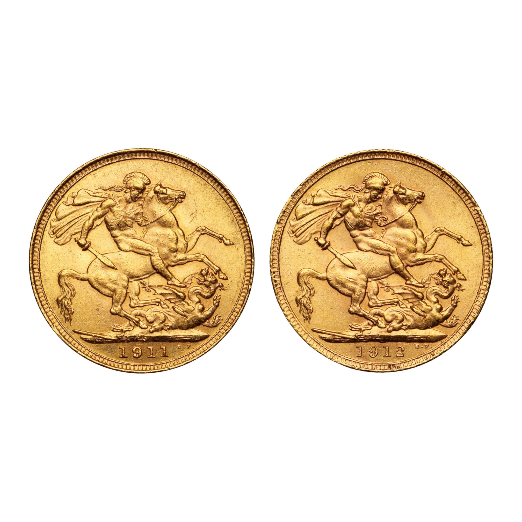 Premium ENGLAND. 2 x gold sovereigns, 1911 and 1912.
