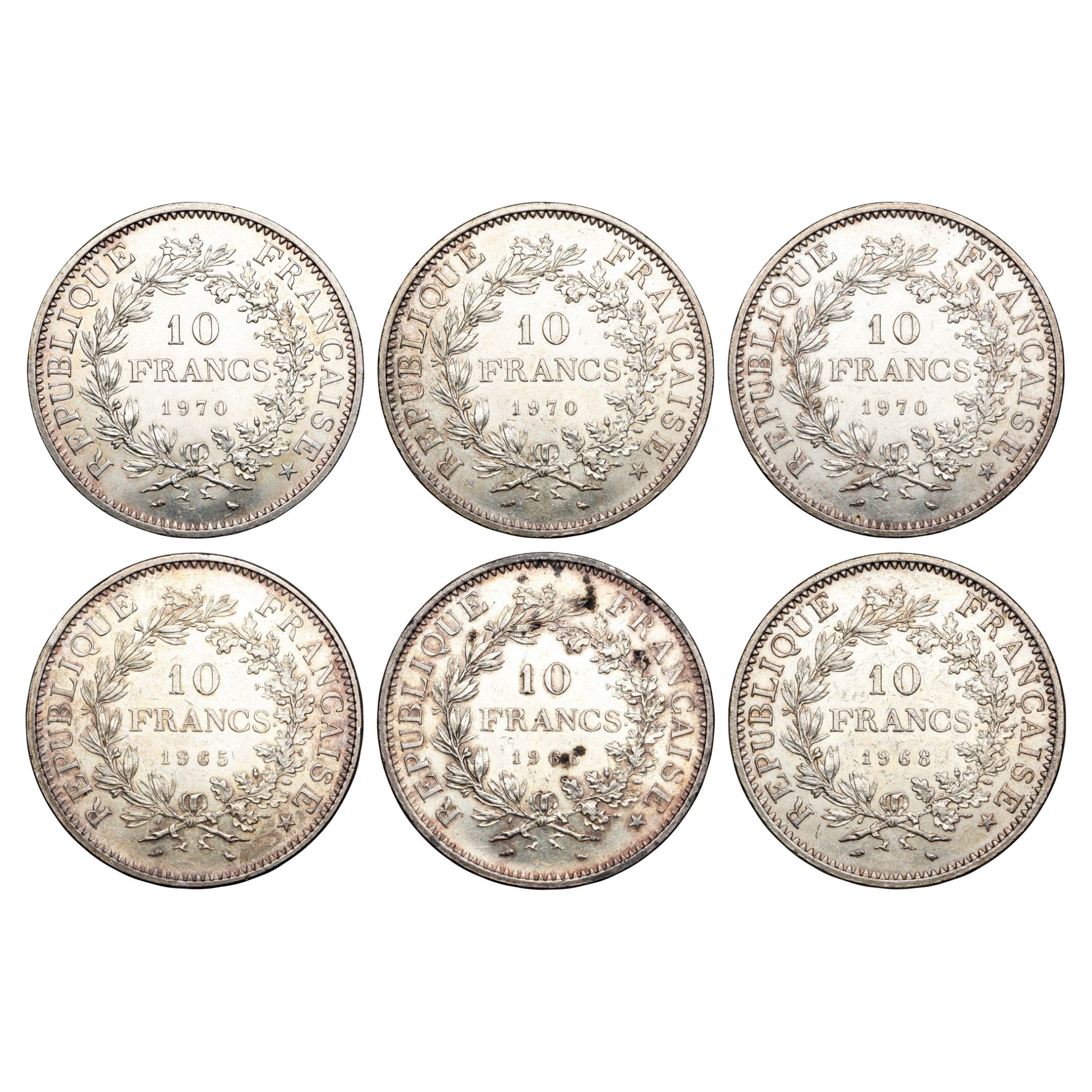 FRANCE. 6 x 10 francs silver Hercules. Lot kept outside the study in a bank safe and sold by designation. Fees reduced to 12% incl. VAT for lots 1 to 35 (Live Interencheres fees for these lots 15.6% incl. VAT)
