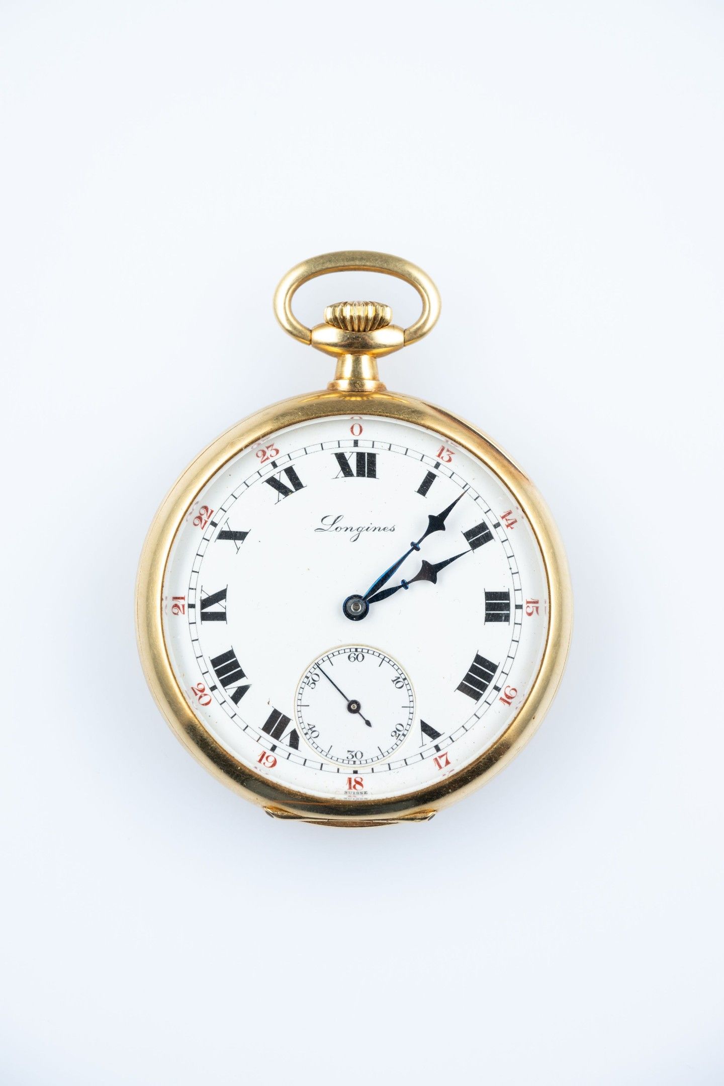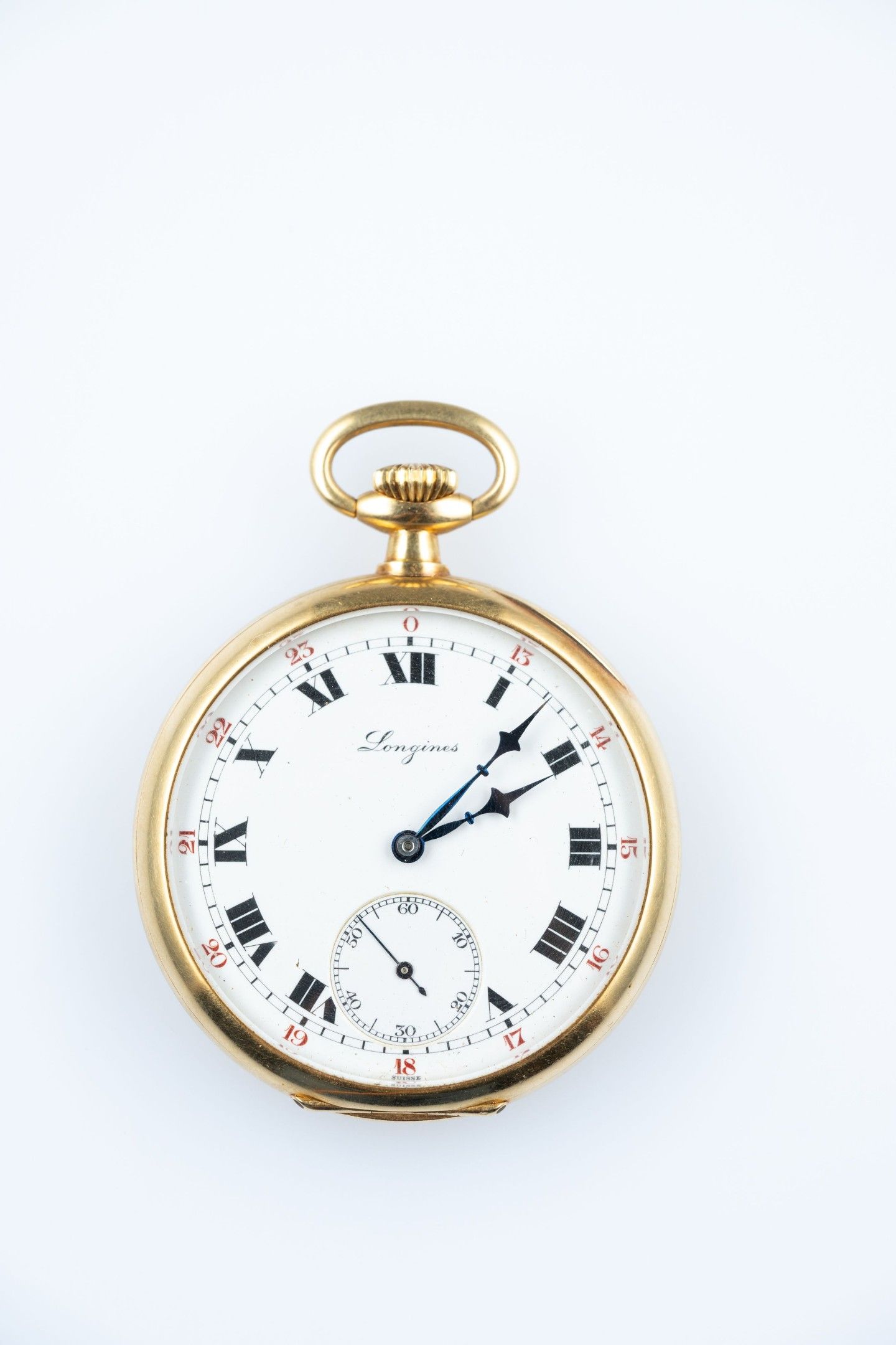 LONGINES. 18k (750 thousandths) yellow gold pocket watch, pl…