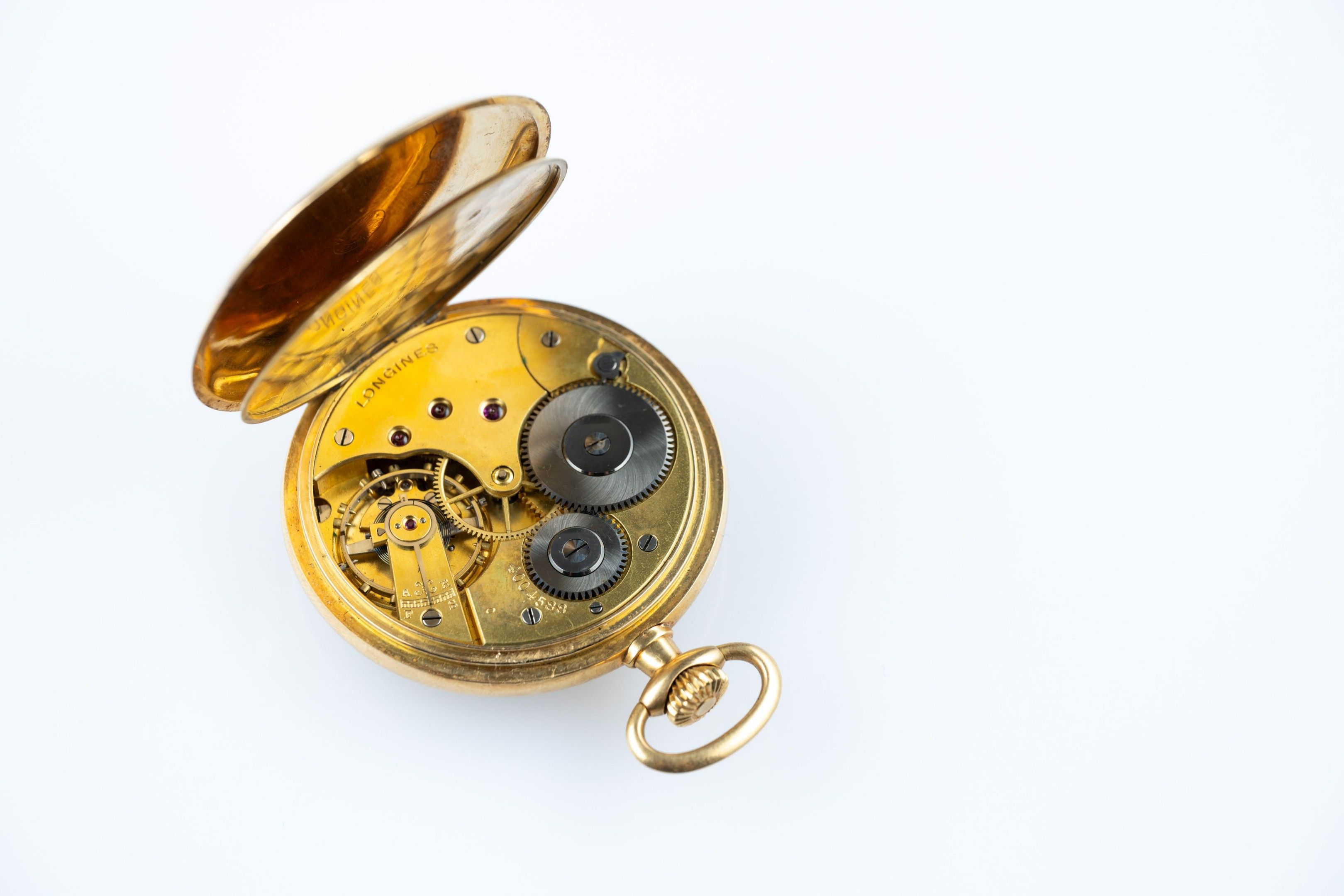 Premium LONGINES. 18k (750 thousandths) yellow gold pocket watch, pl…