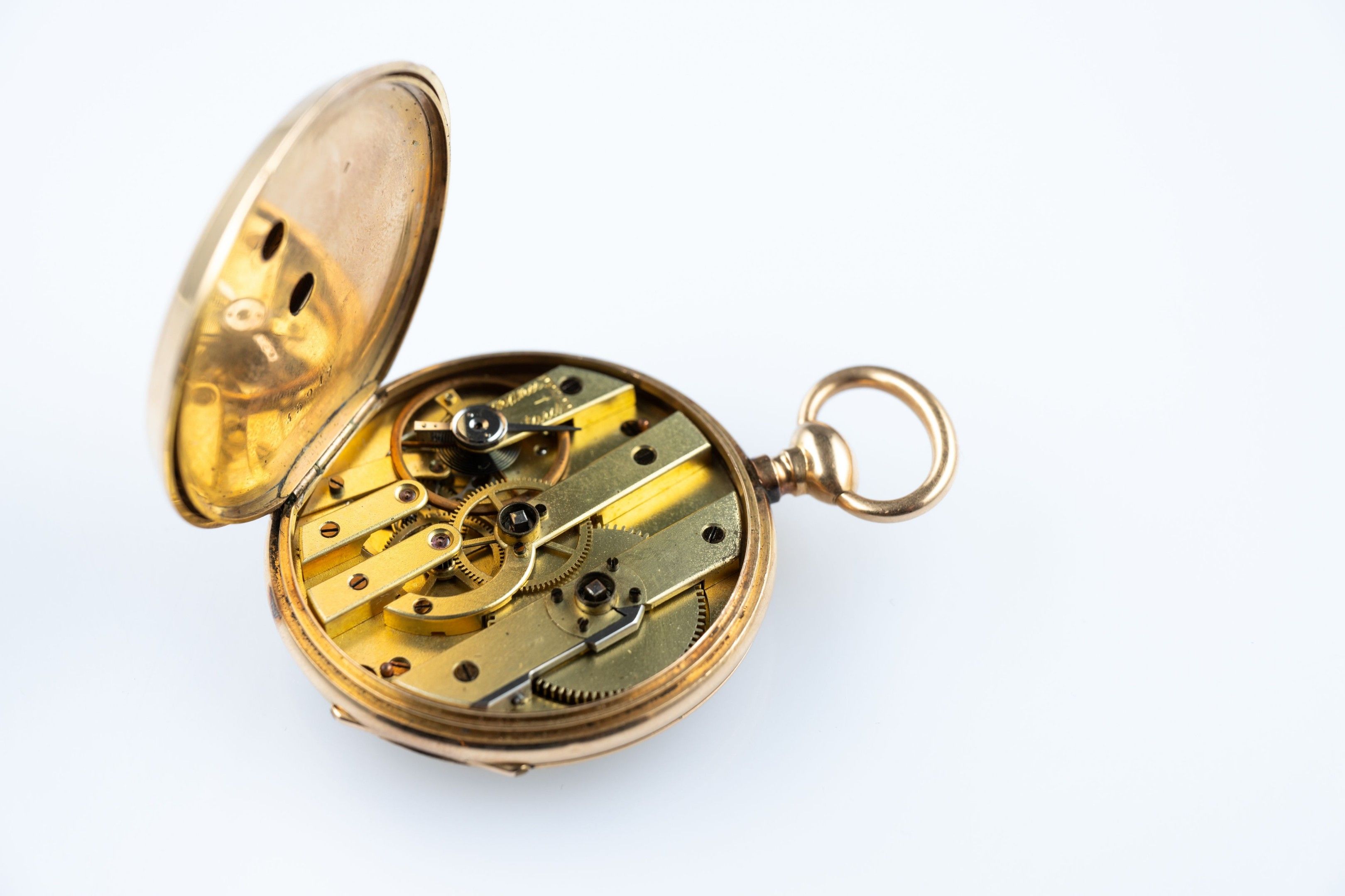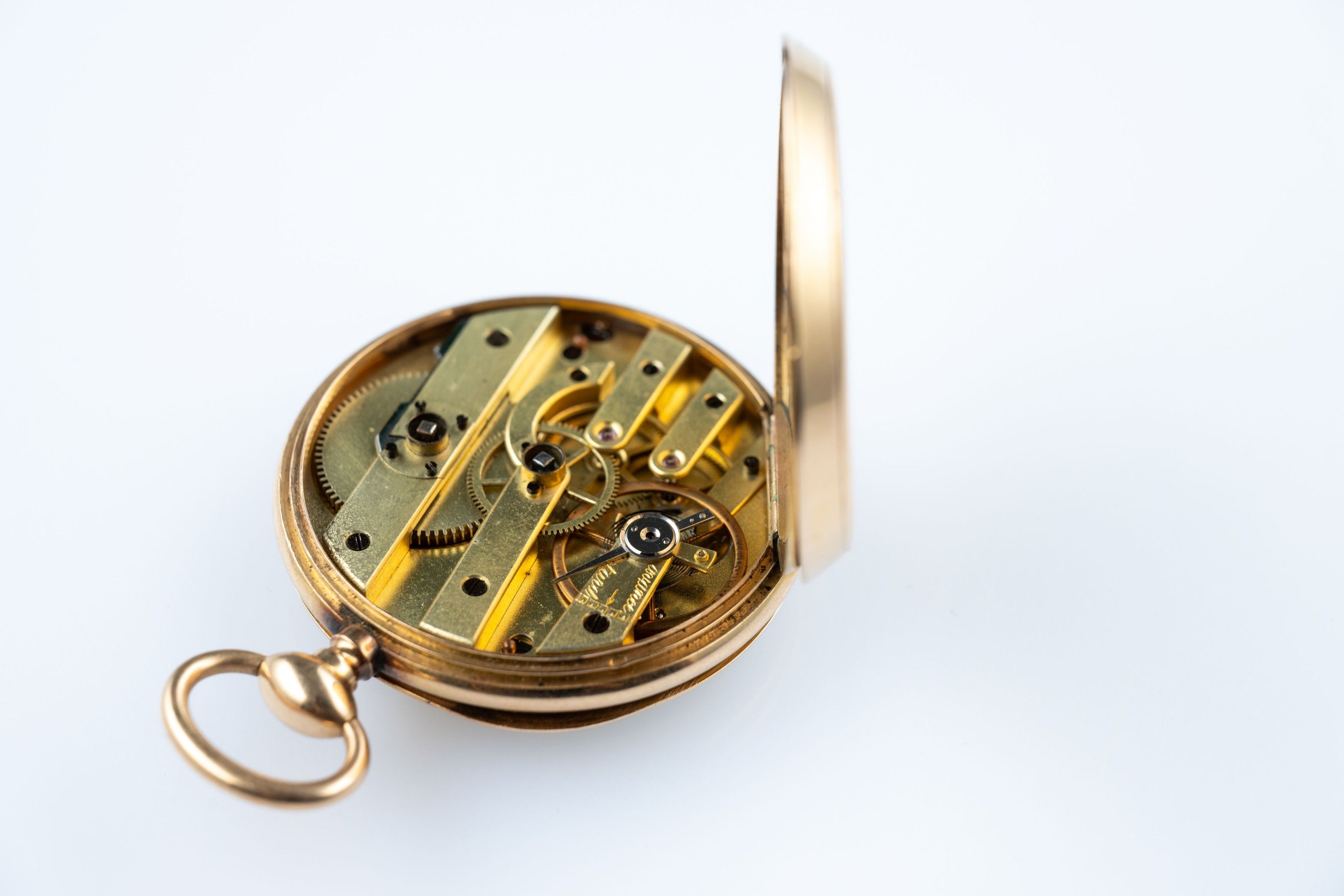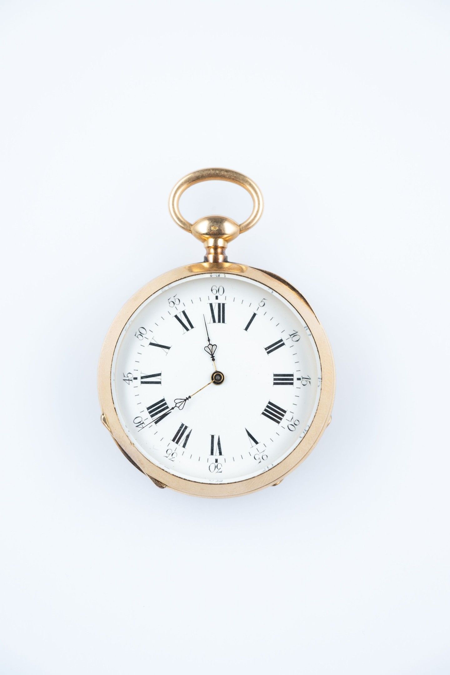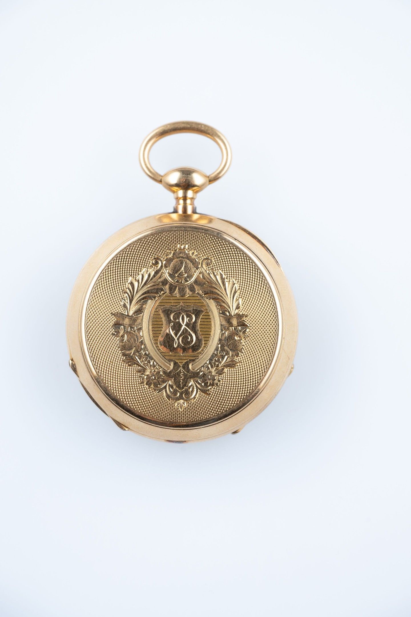 Pocket watch in 18k (750 thousandths) yellow gold, the back …