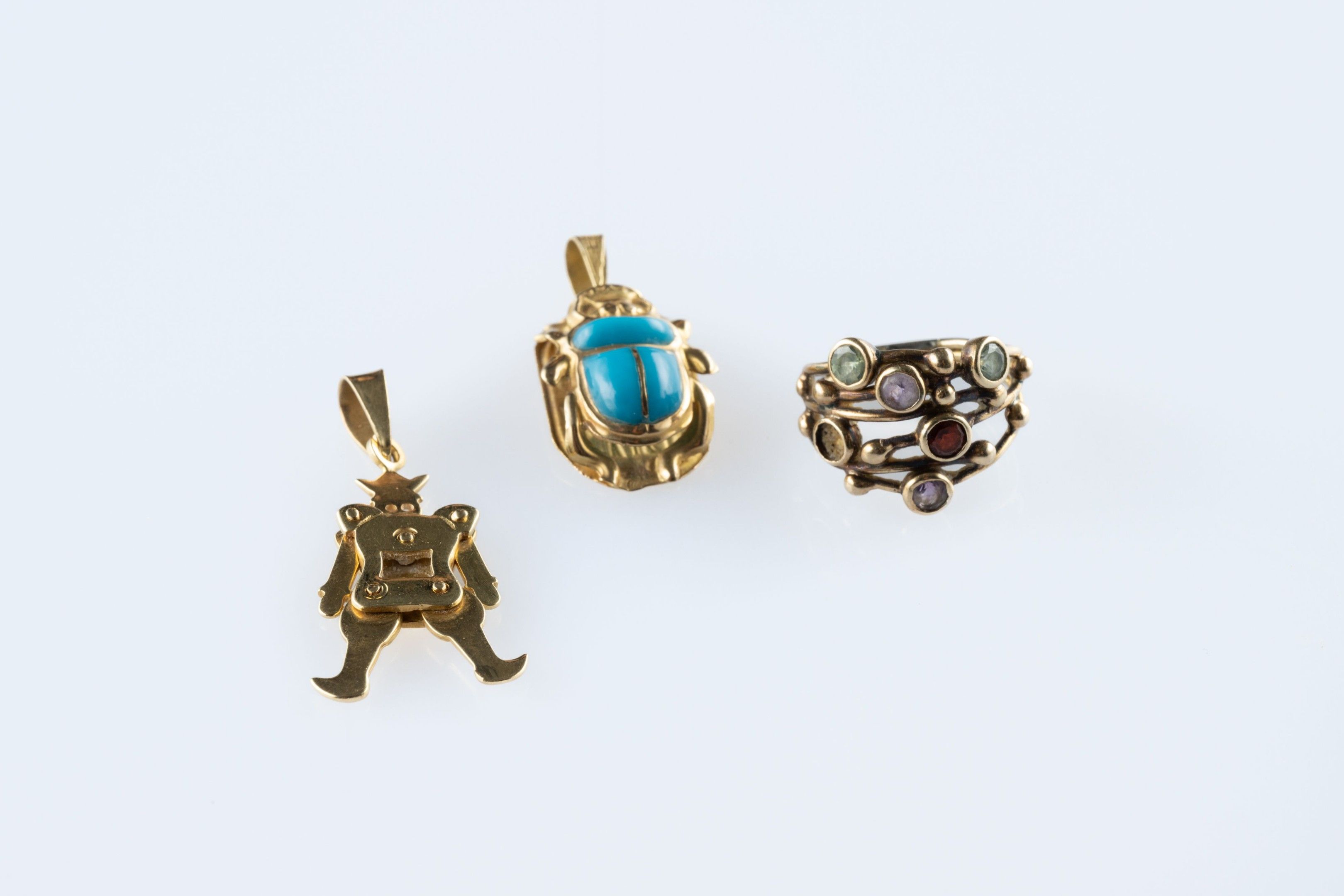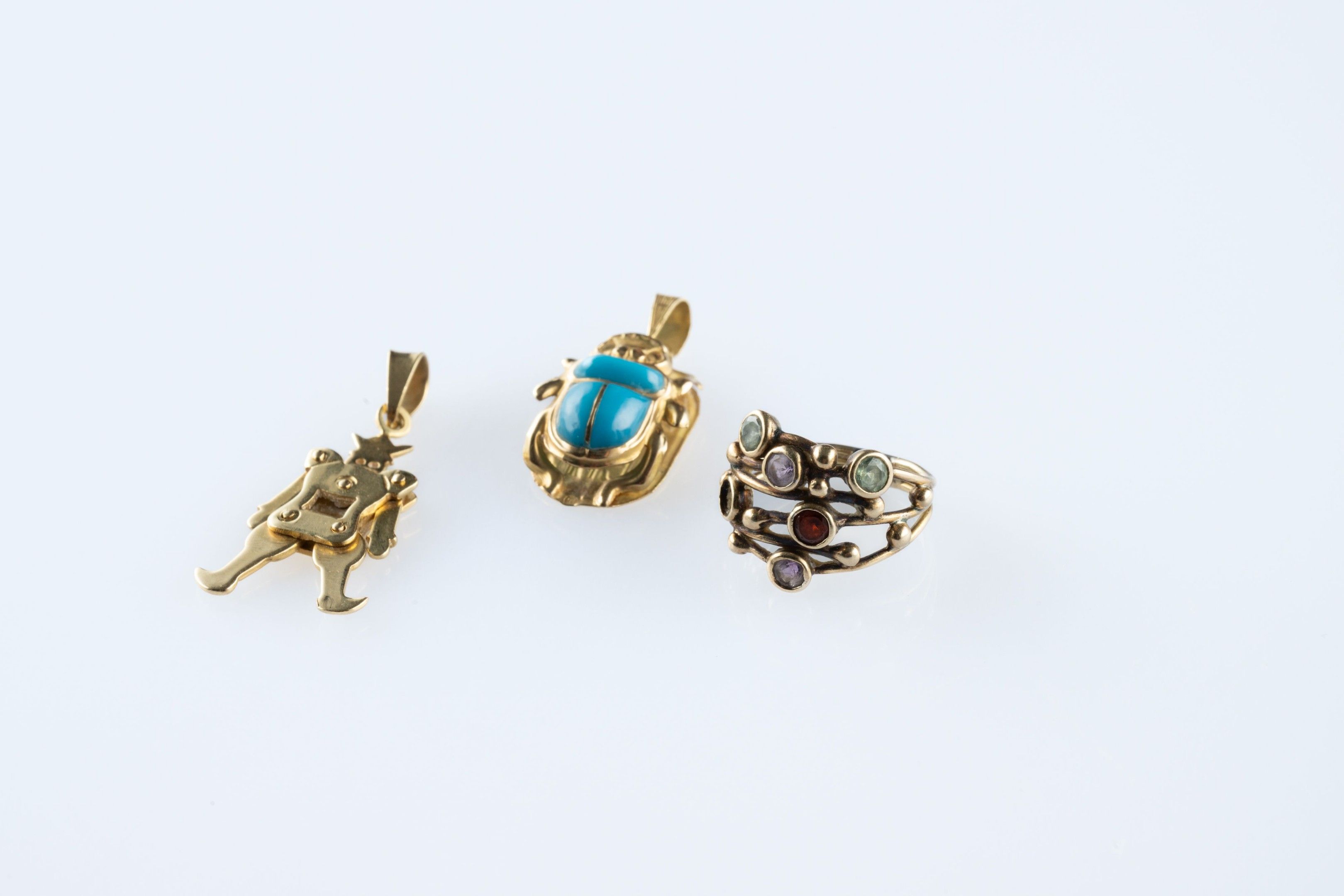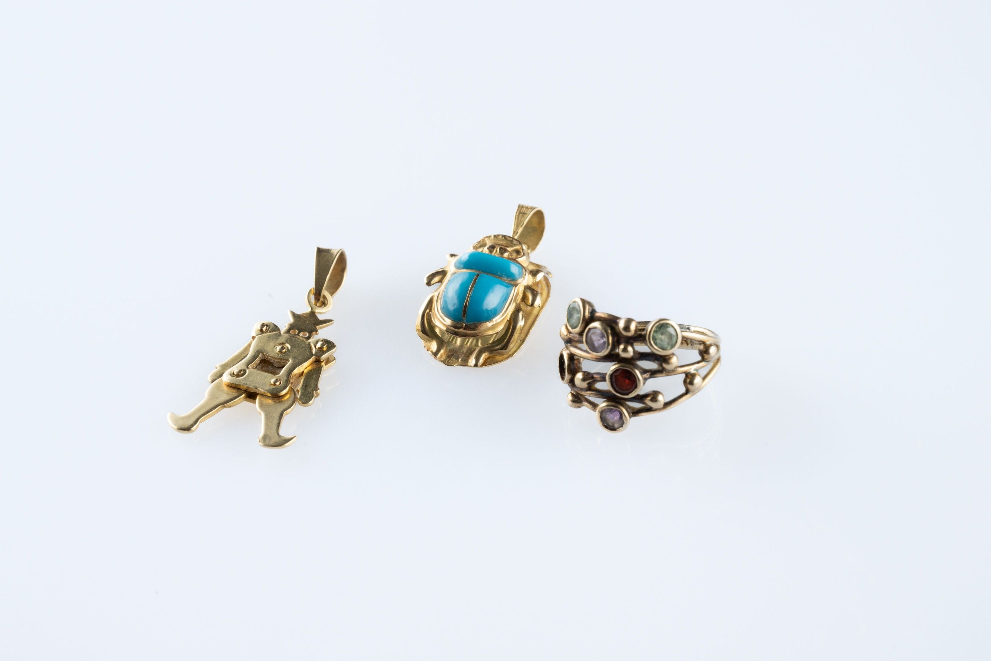 - a pendant in the form of an articulated harlequin. Height 3.5 cm (one piece missing from the centre)