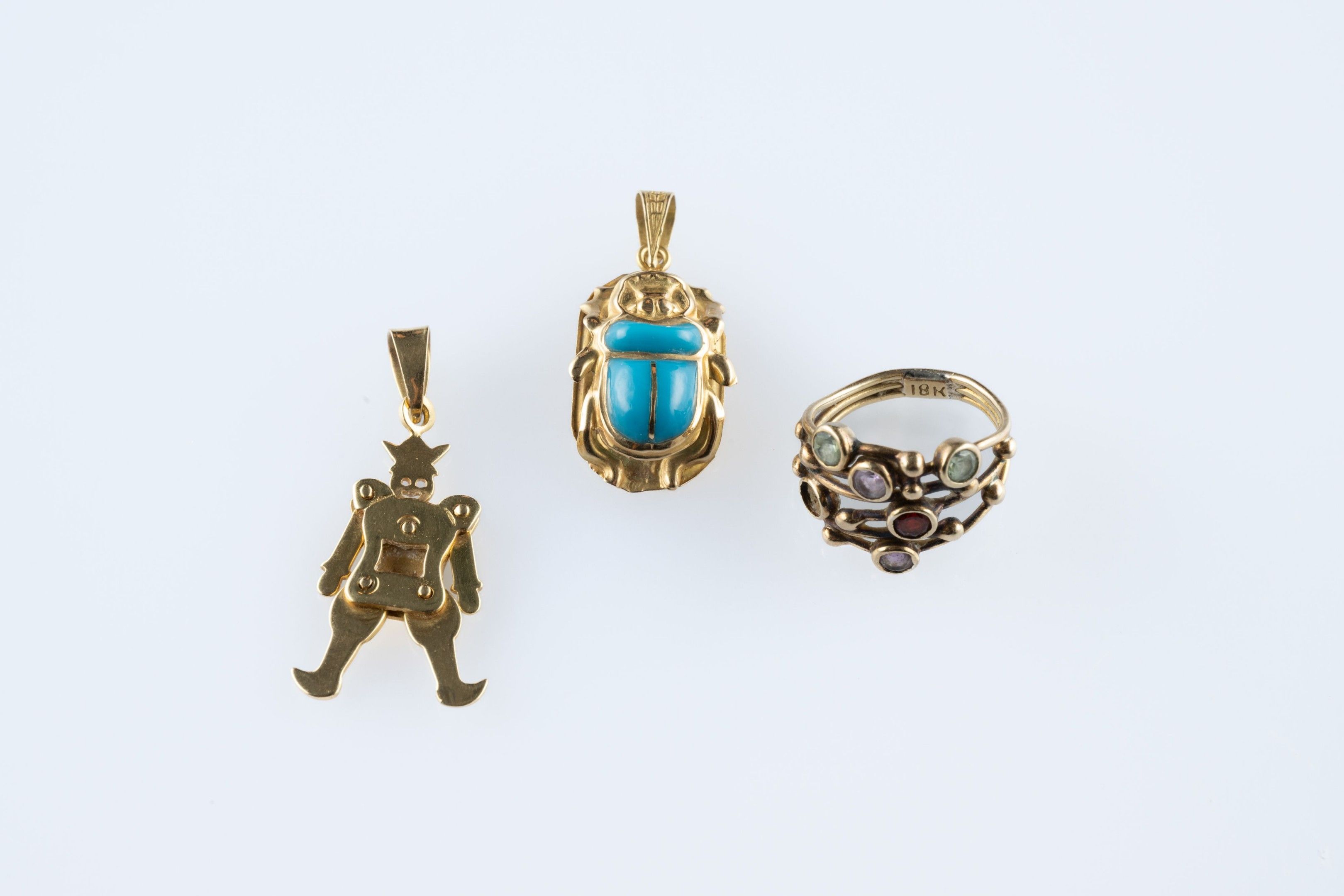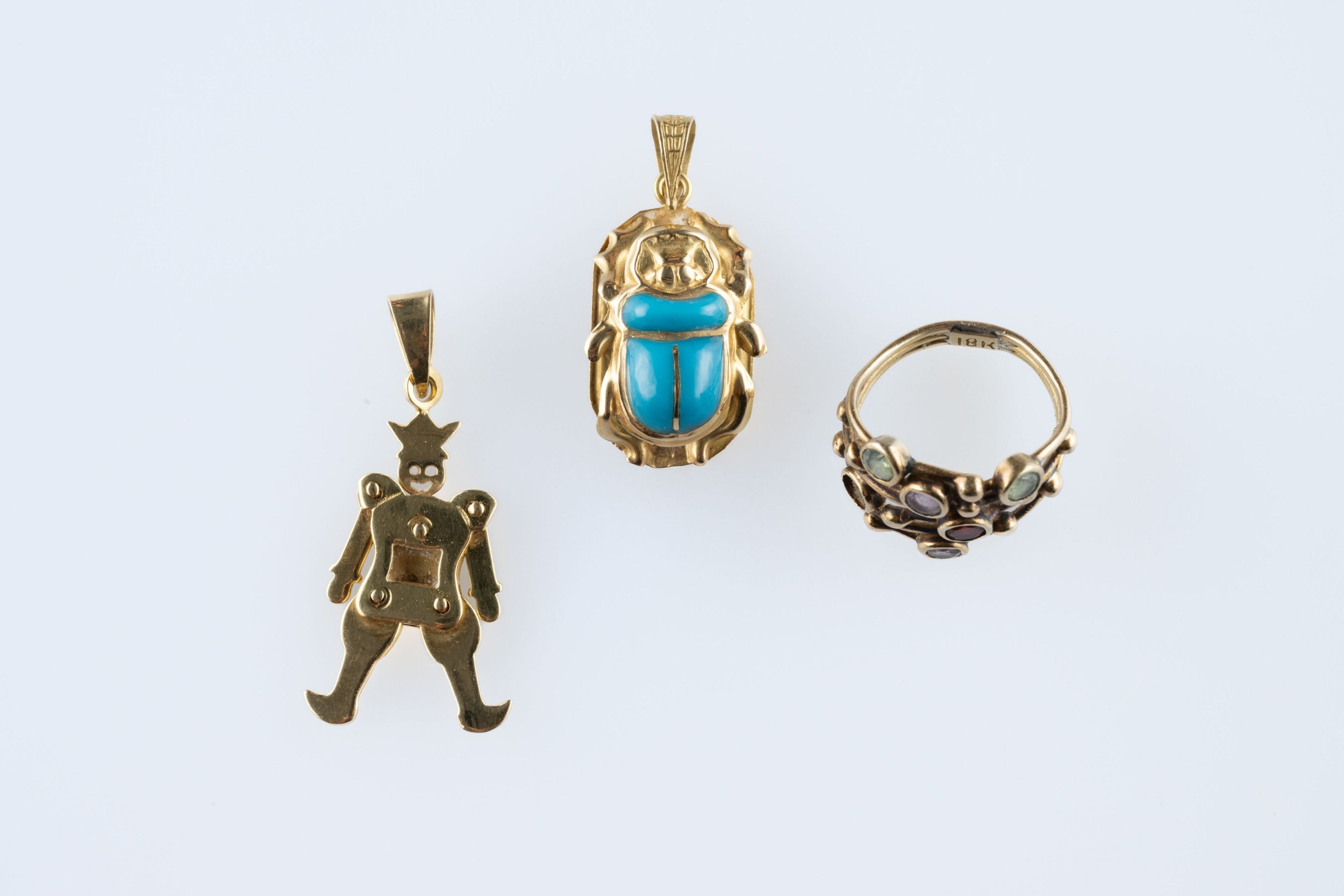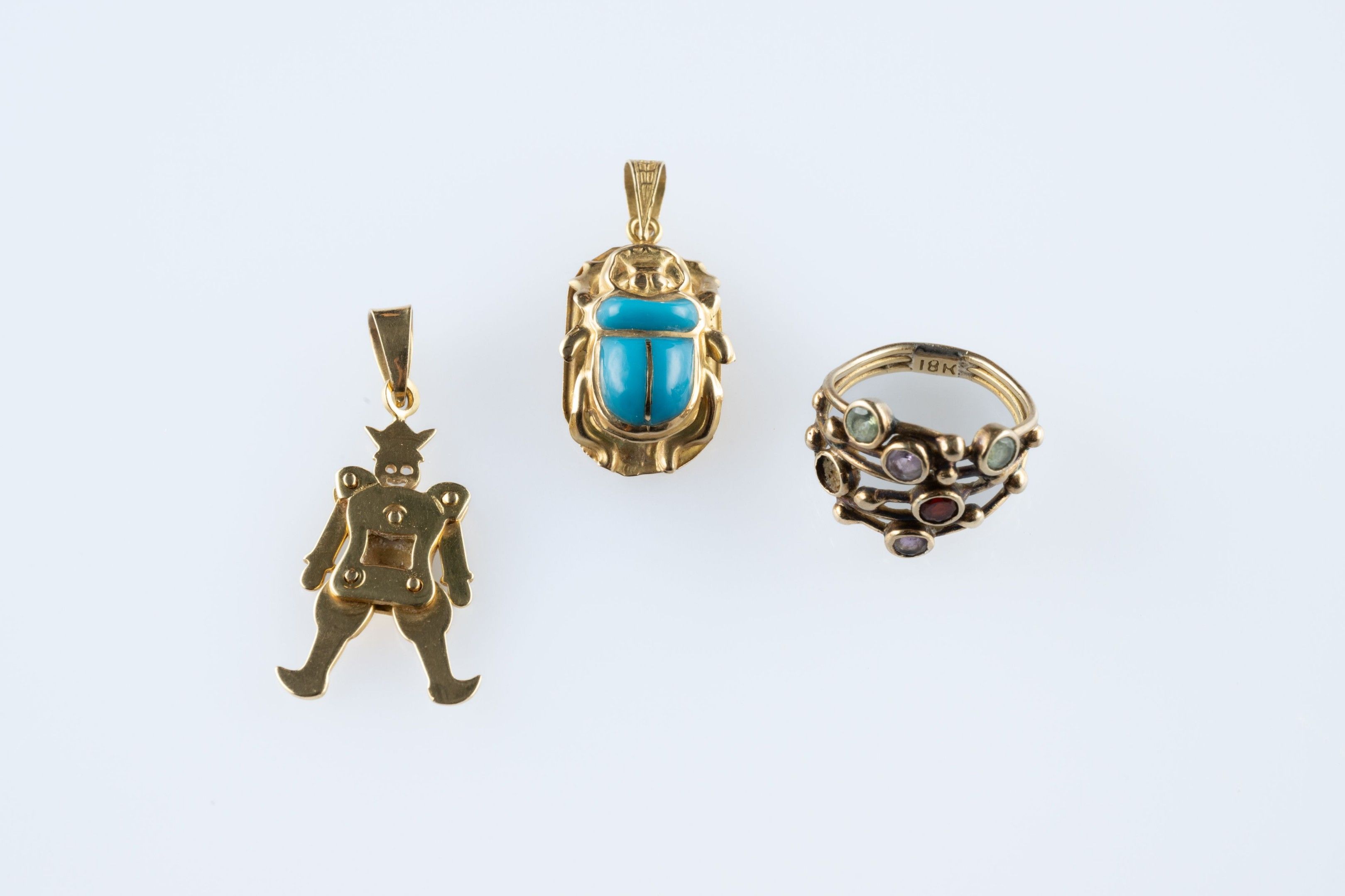 - a pendant in the form of an articulated harlequin. Height 3.5 cm (one piece missing from the centre)
