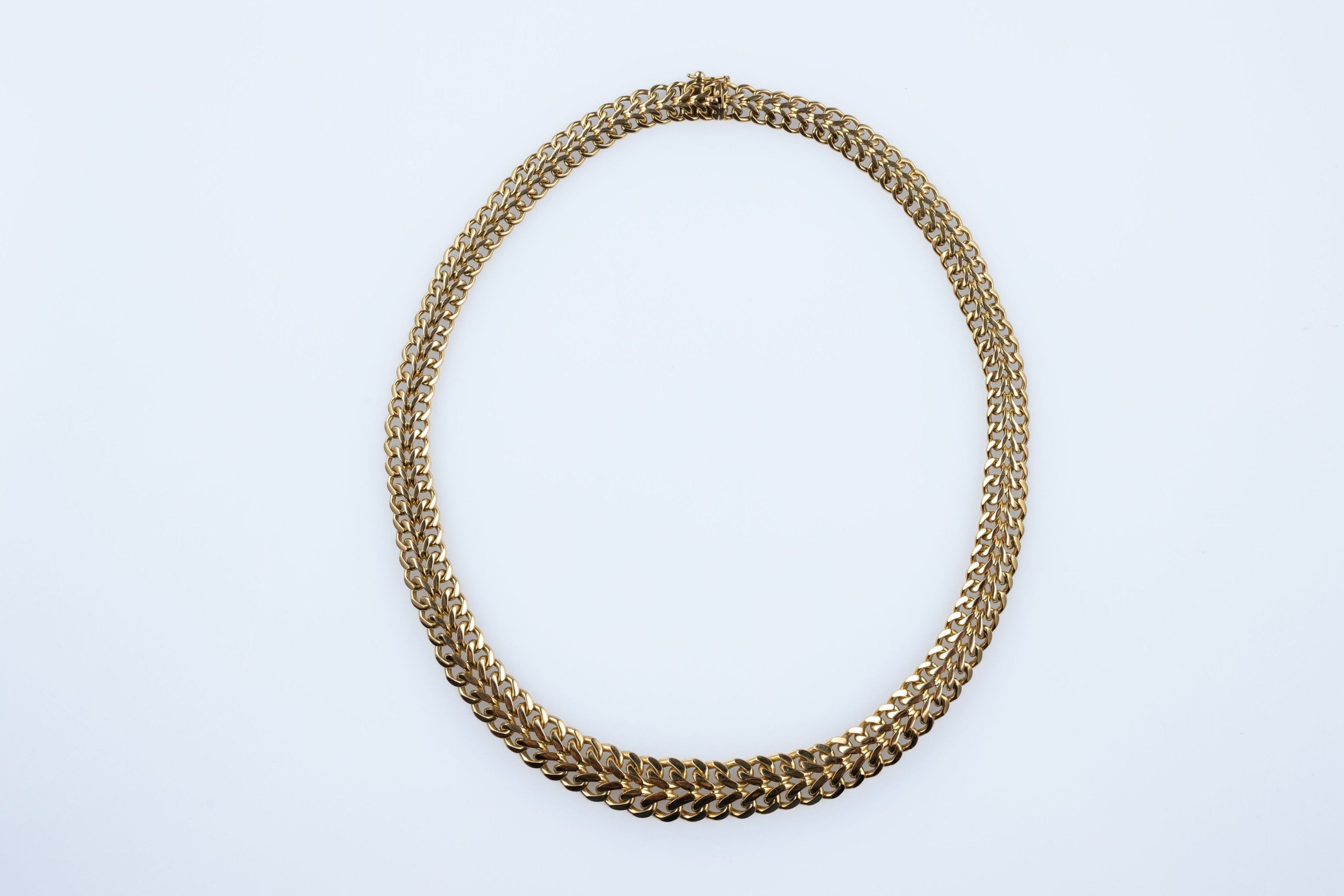 Necklace in 18k (750 thousandths) yellow gold with two rows …