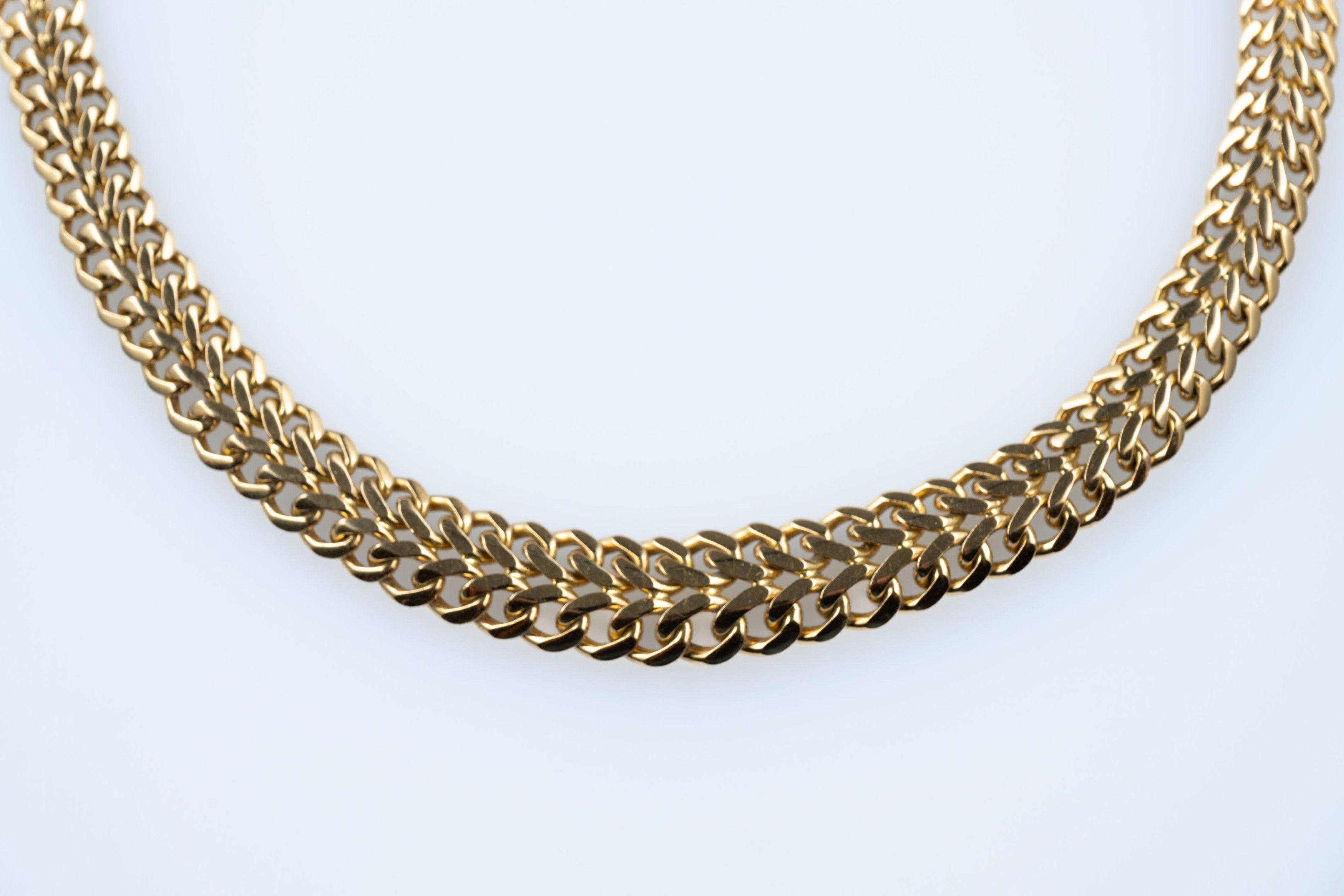 Necklace in 18k (750 thousandths) yellow gold with two rows of falling curb chain links.