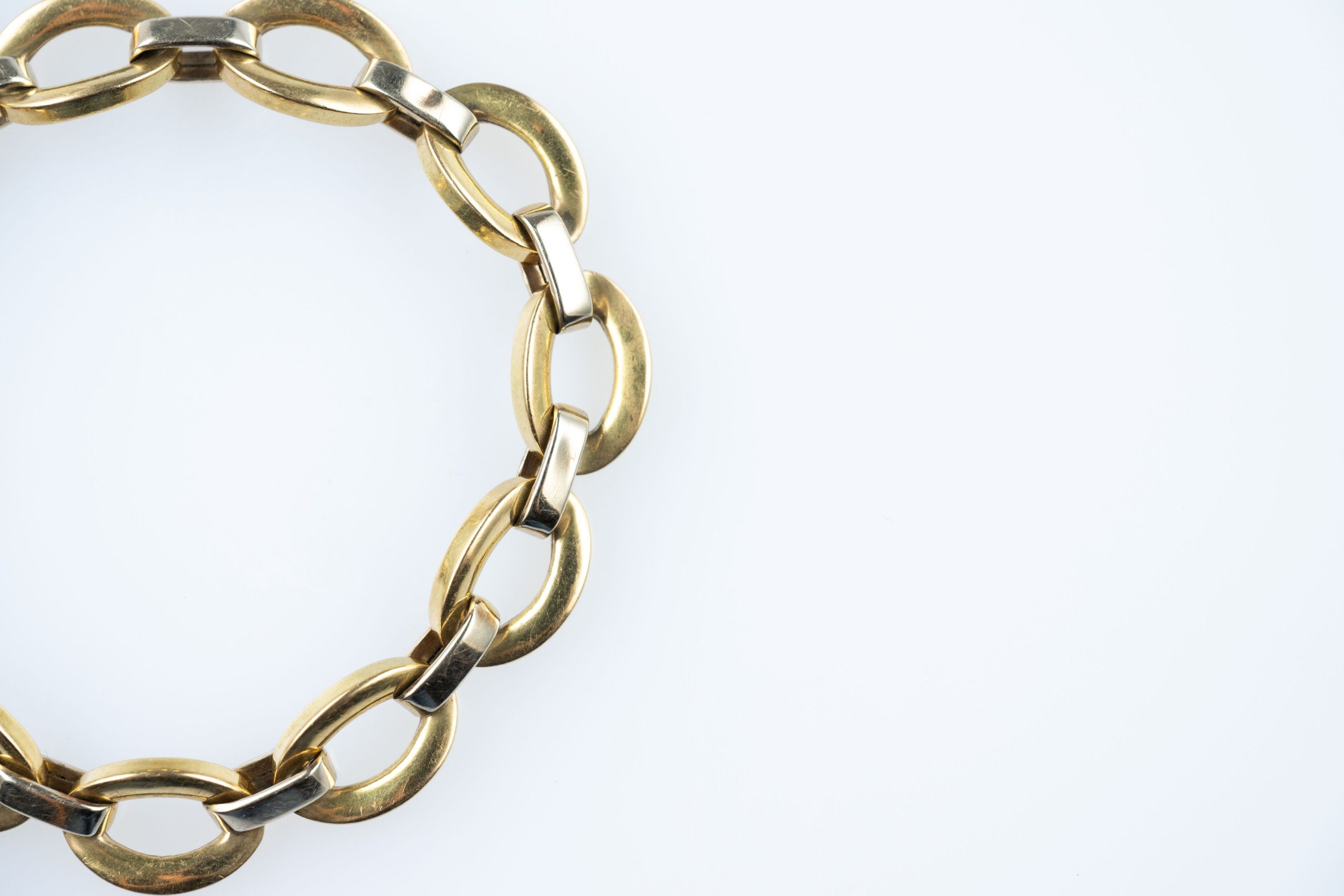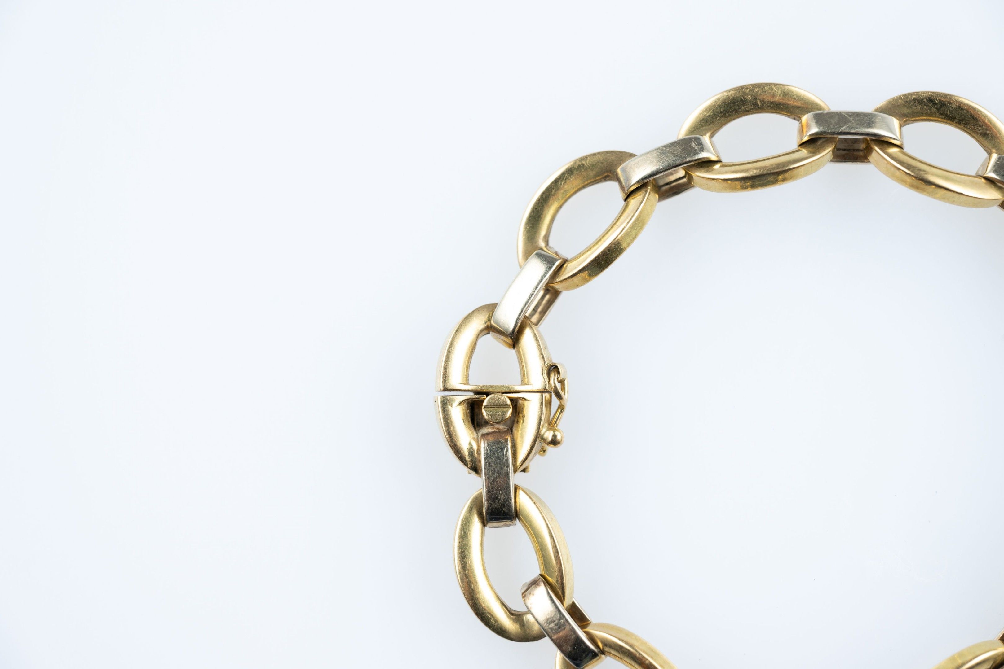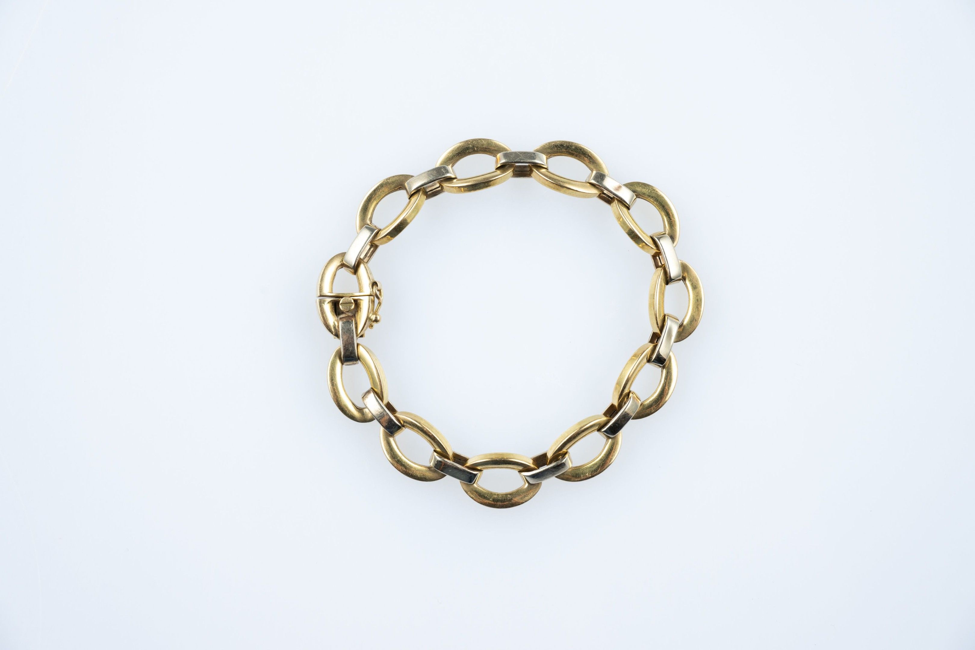18k (750 thousandths) yellow and white gold bracelet with oval links.