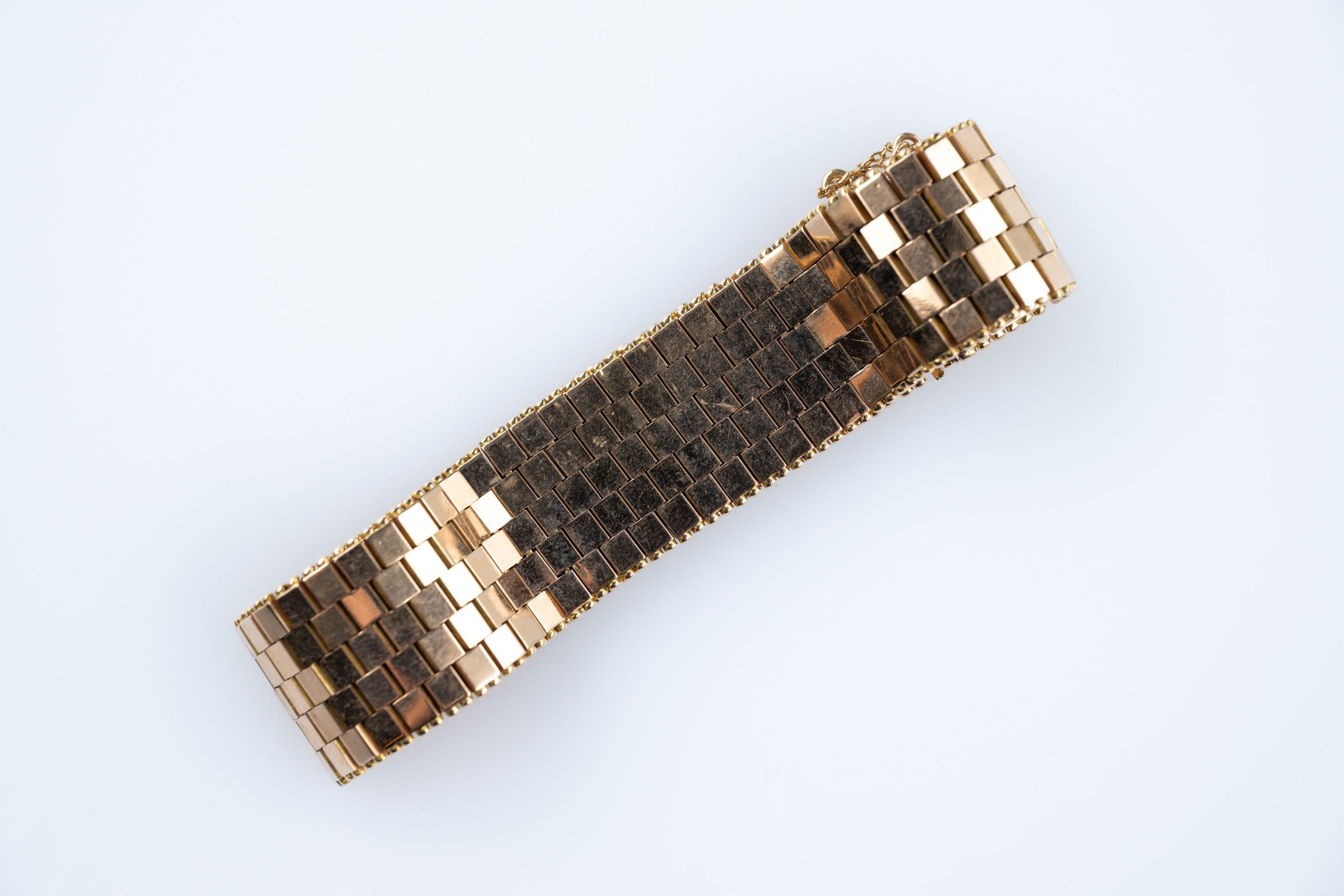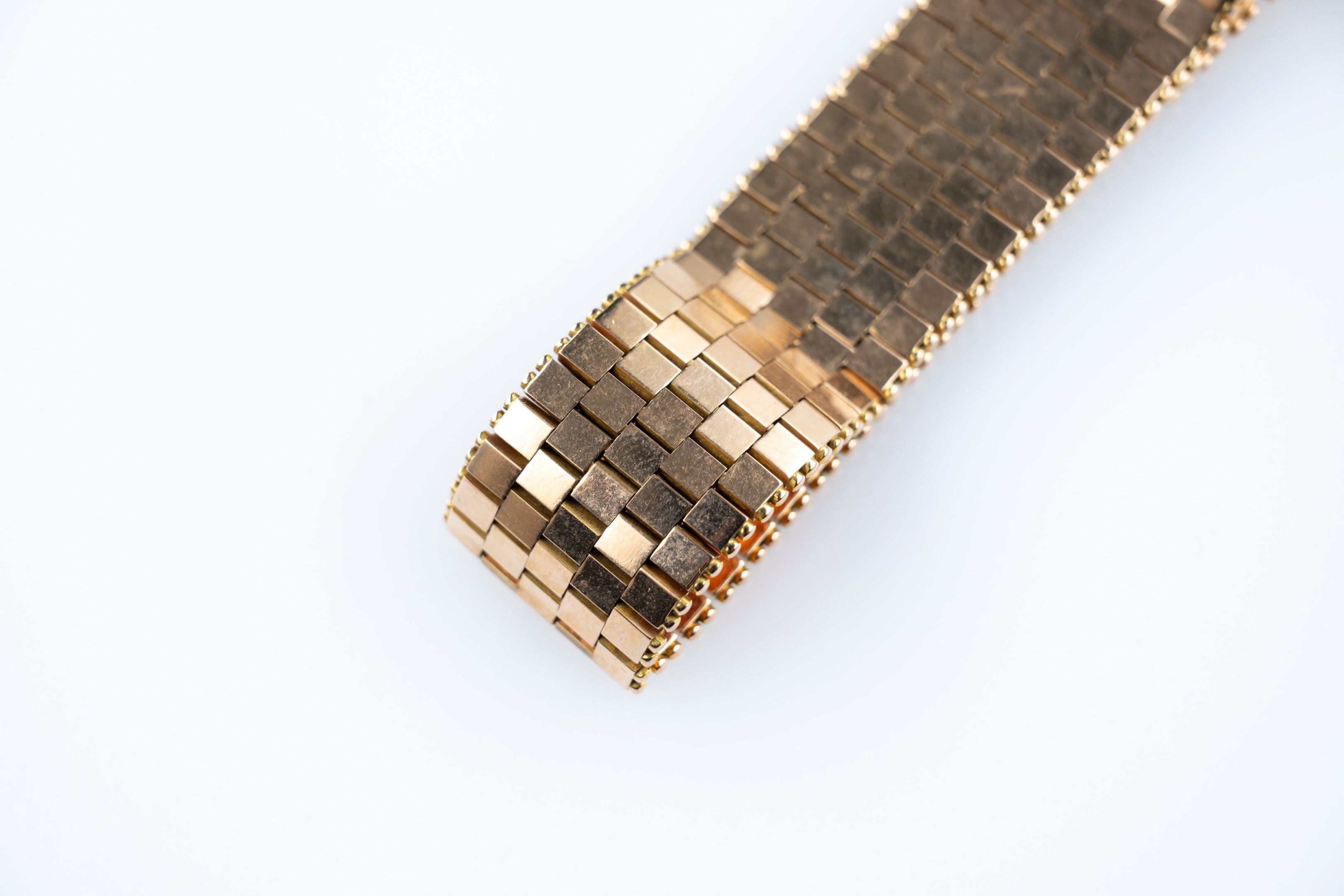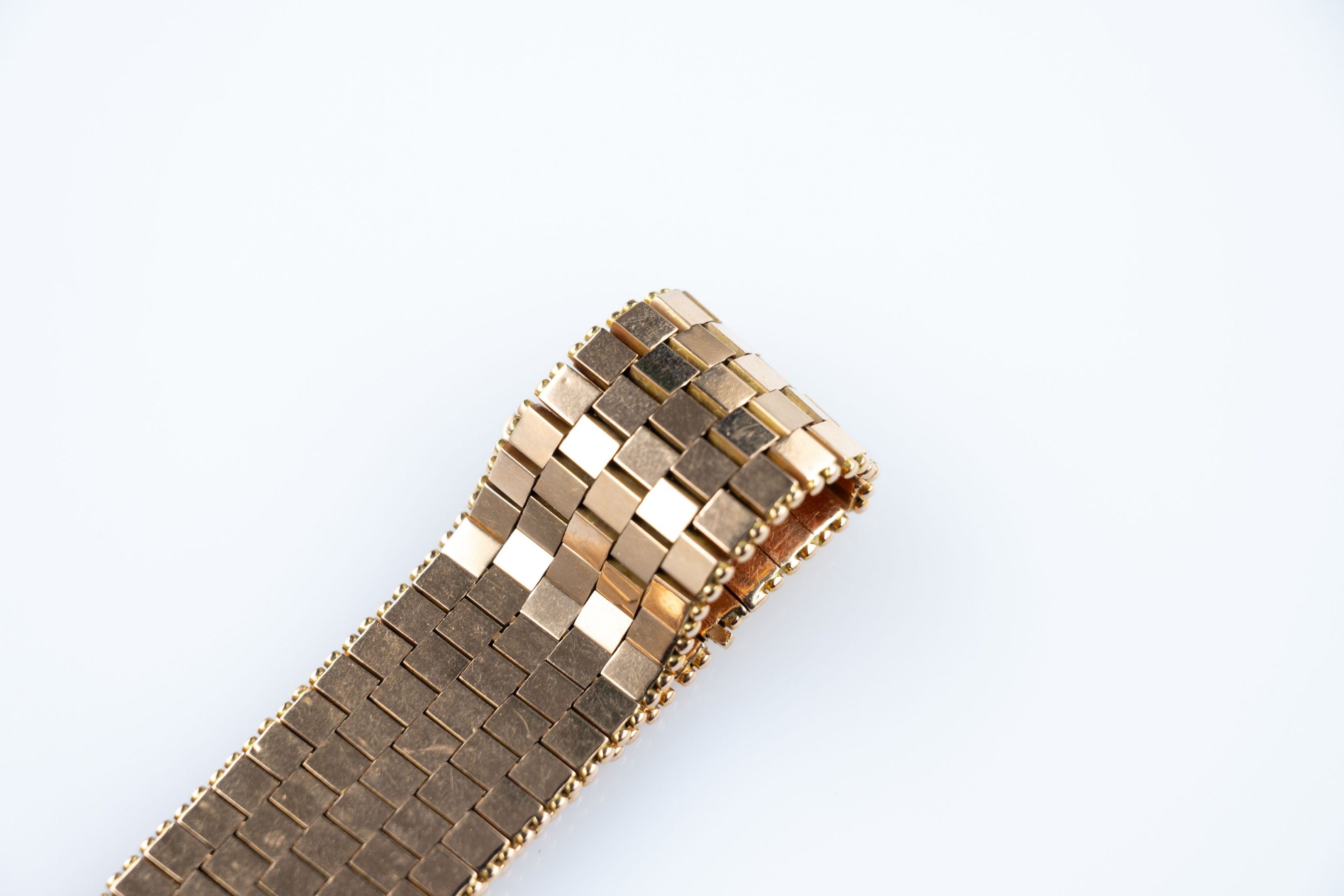 Ribbon bracelet in 18k (750 thousandths) pink gold with square articulated links highlighted with small balls.