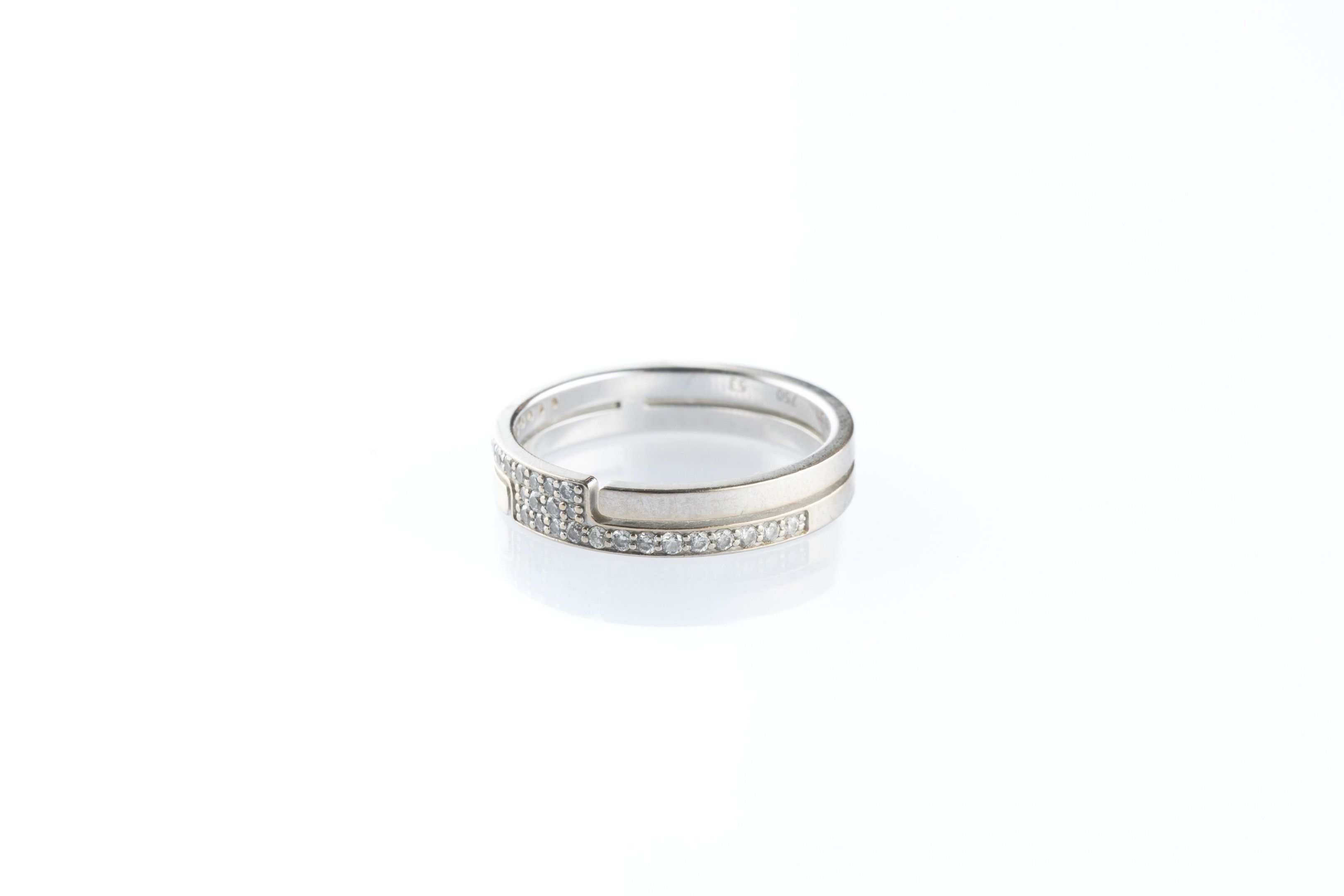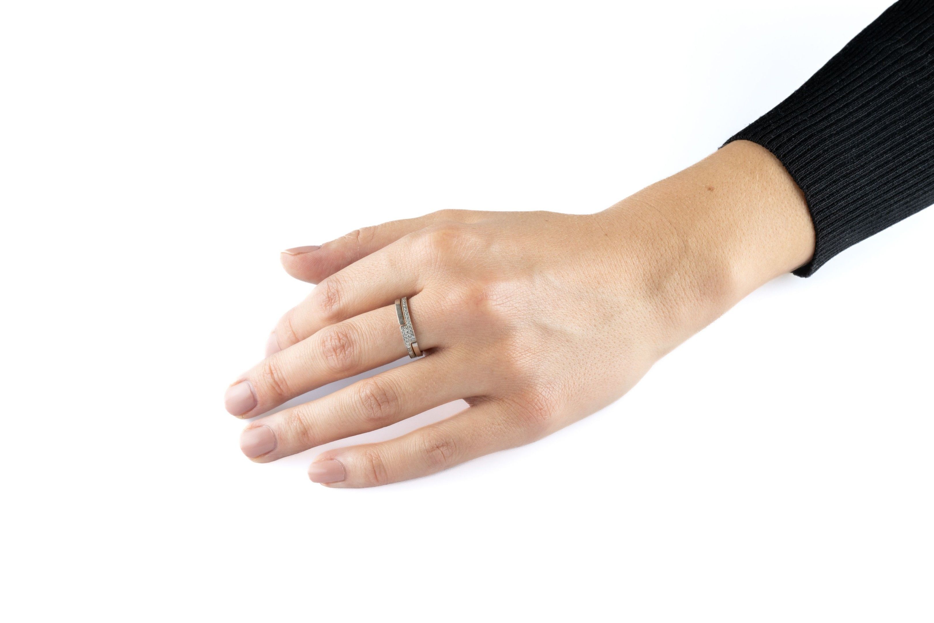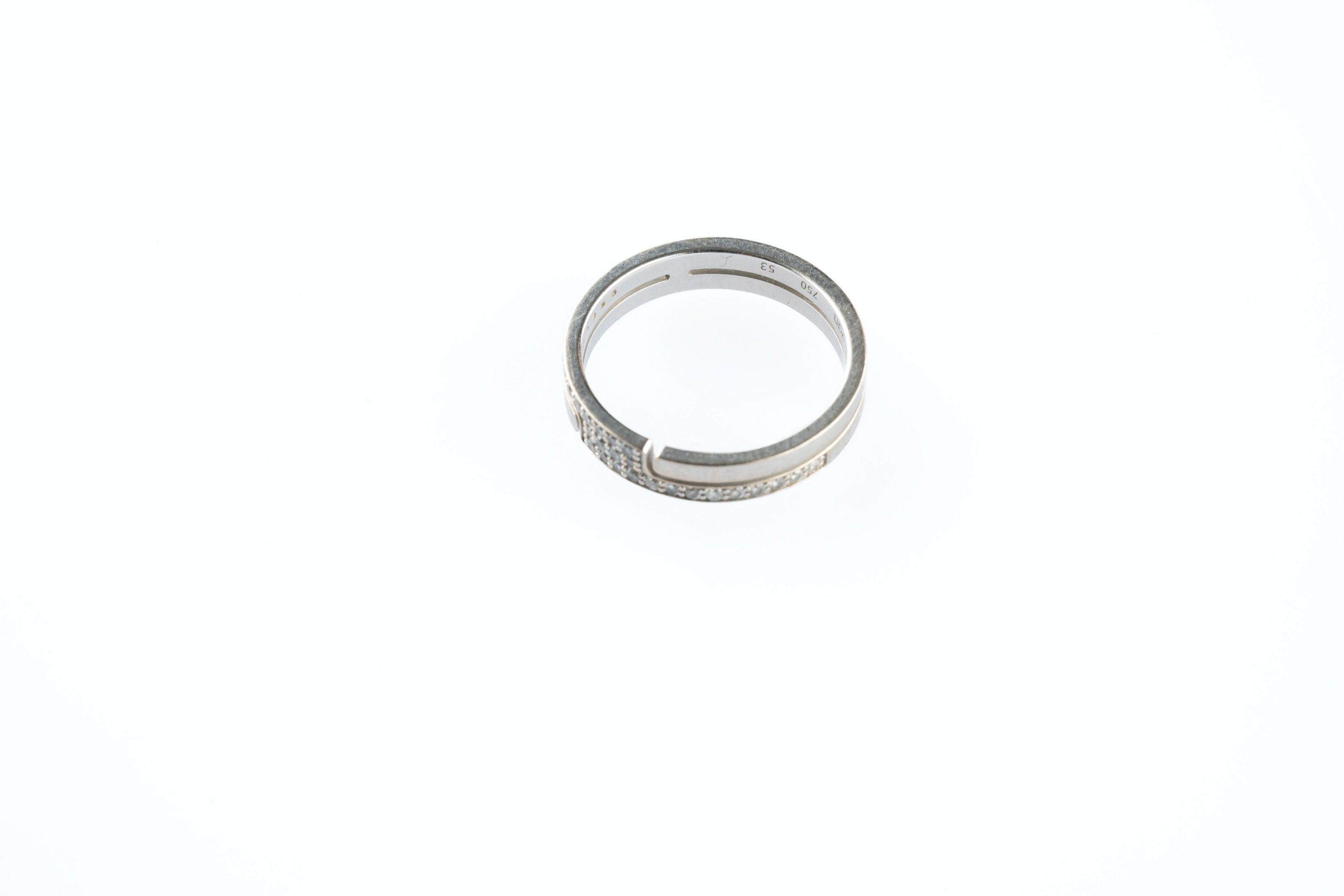 Ring from the "Seventies" collection in 18k (750 thousandths) white gold paved with small diamonds. Signed.