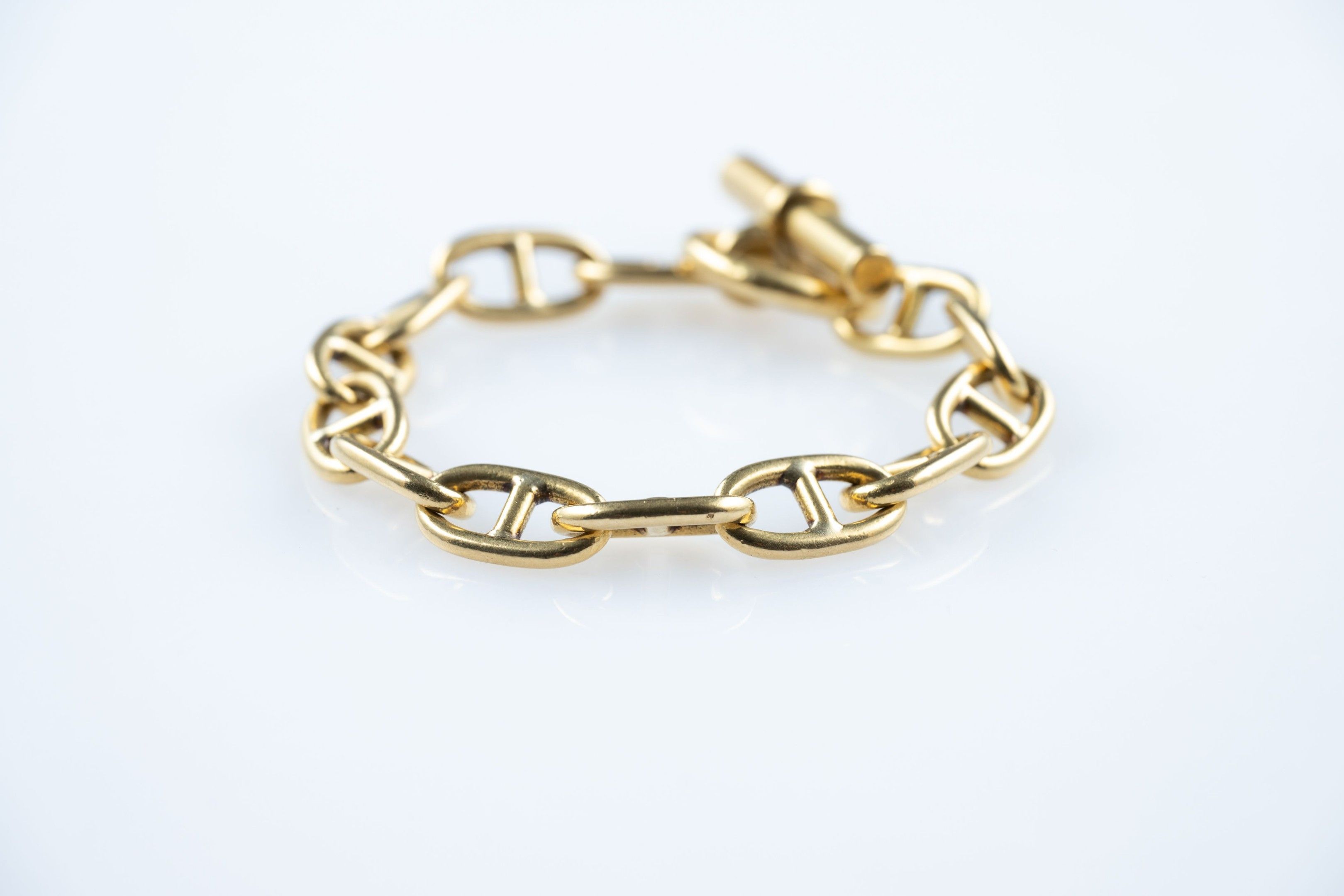 Premium Anchor chain bracelet in 18k (750 thousandths) yellow gold.