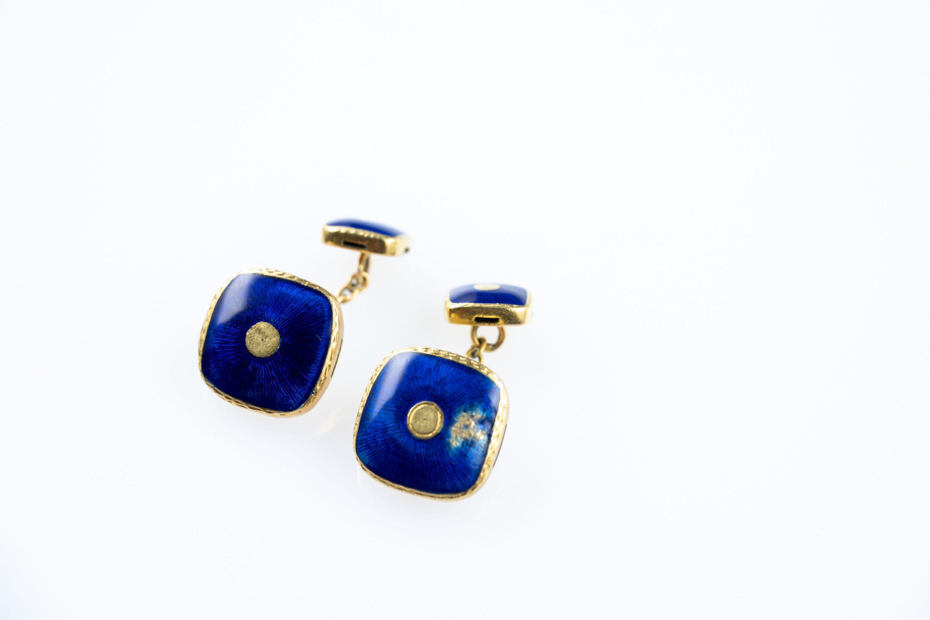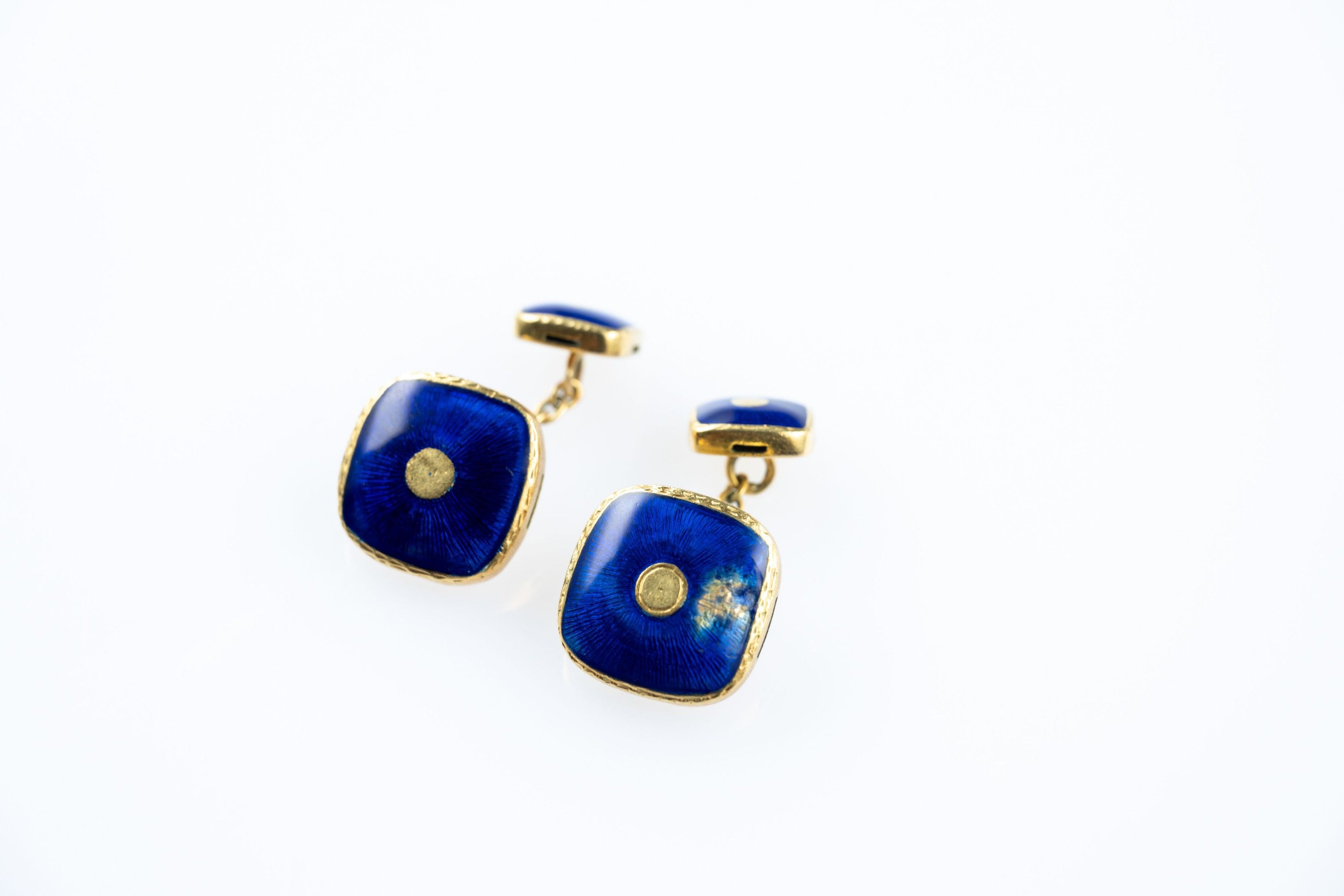 Pair of cufflinks in 18k (750 thousandths) yellow gold, the square plates with rounded corners enamelled blue.