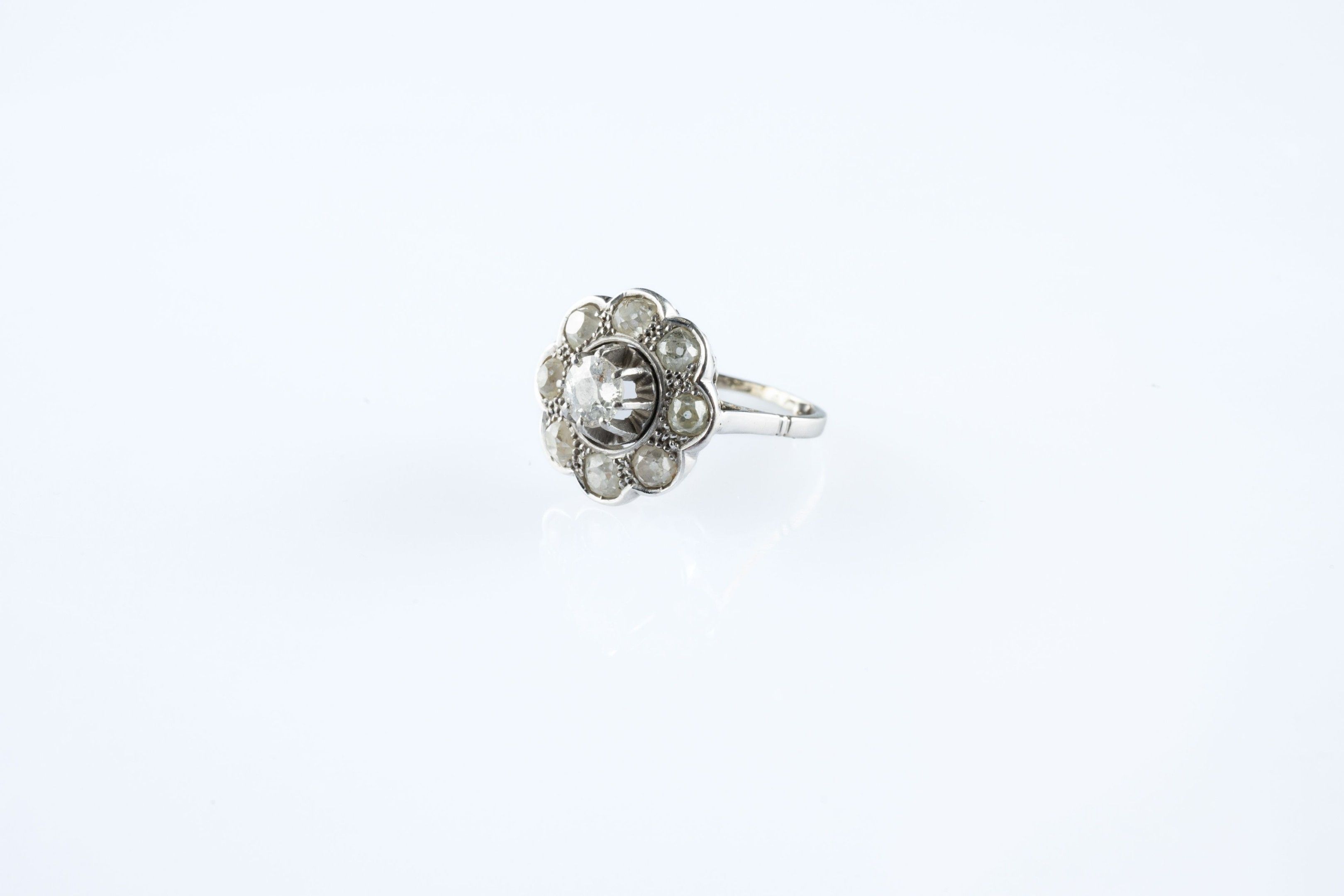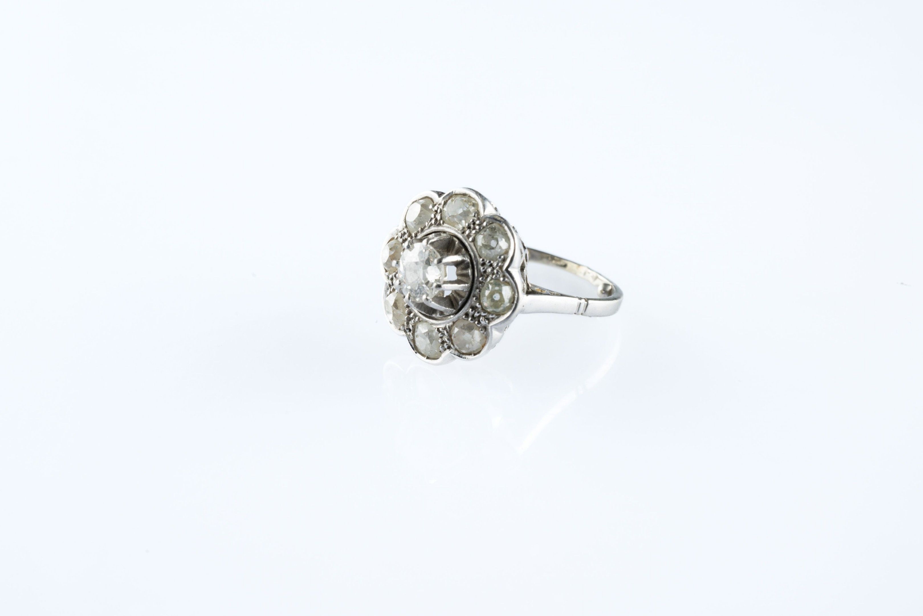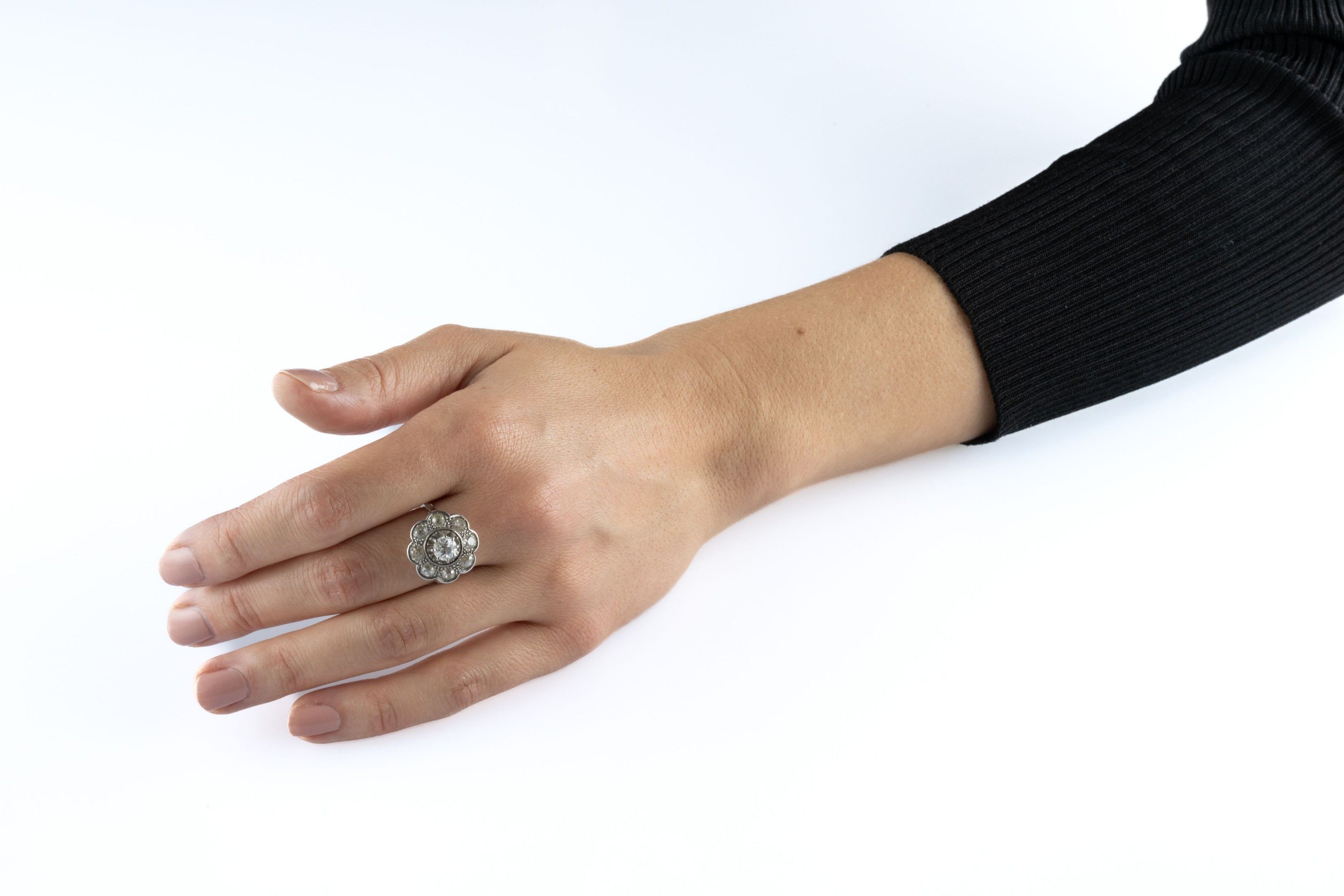 Daisy ring in 18k (750 thousandths) white gold and platinum …