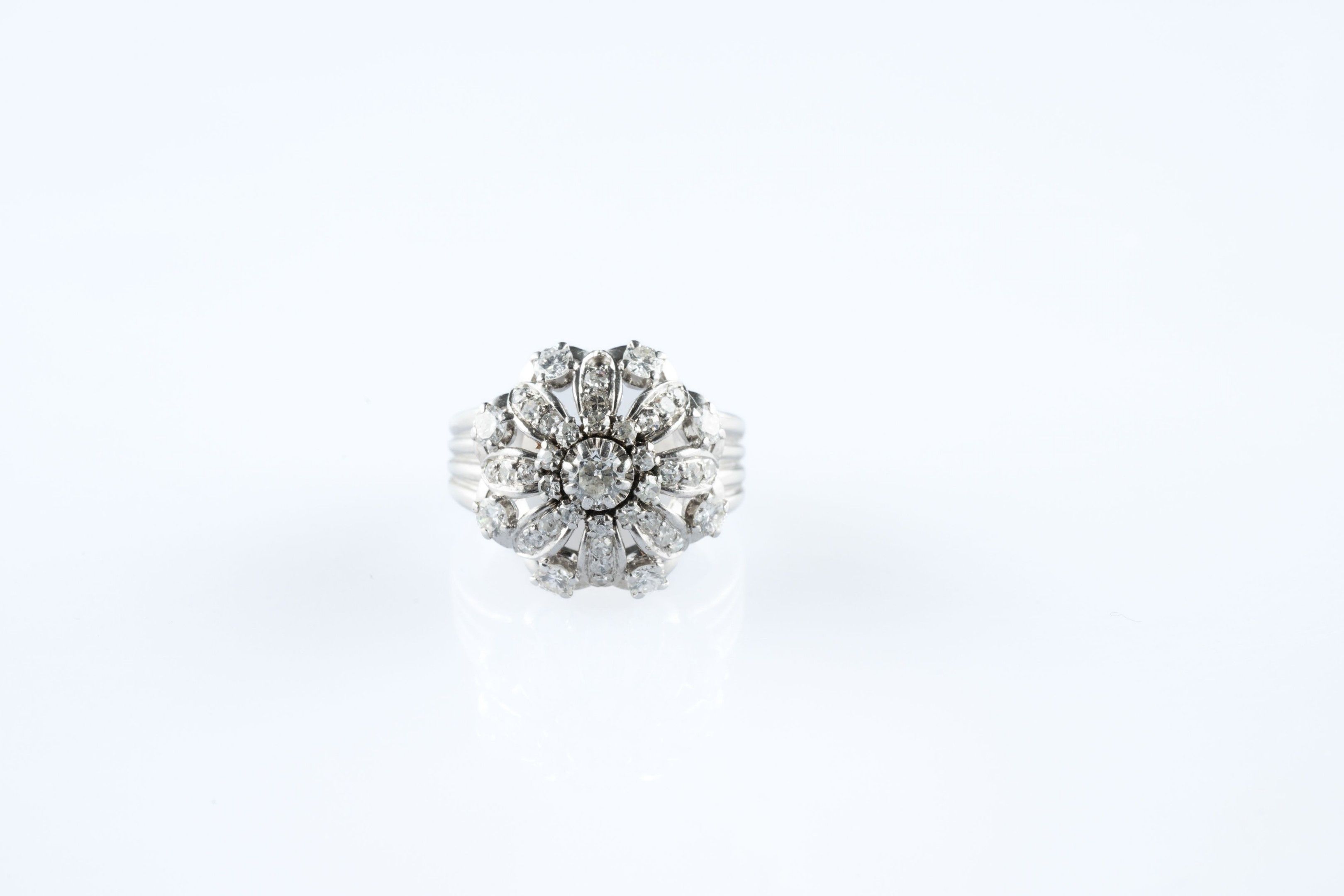 Basket ring in 18k (750 thousandths) white gold and 850 thou…