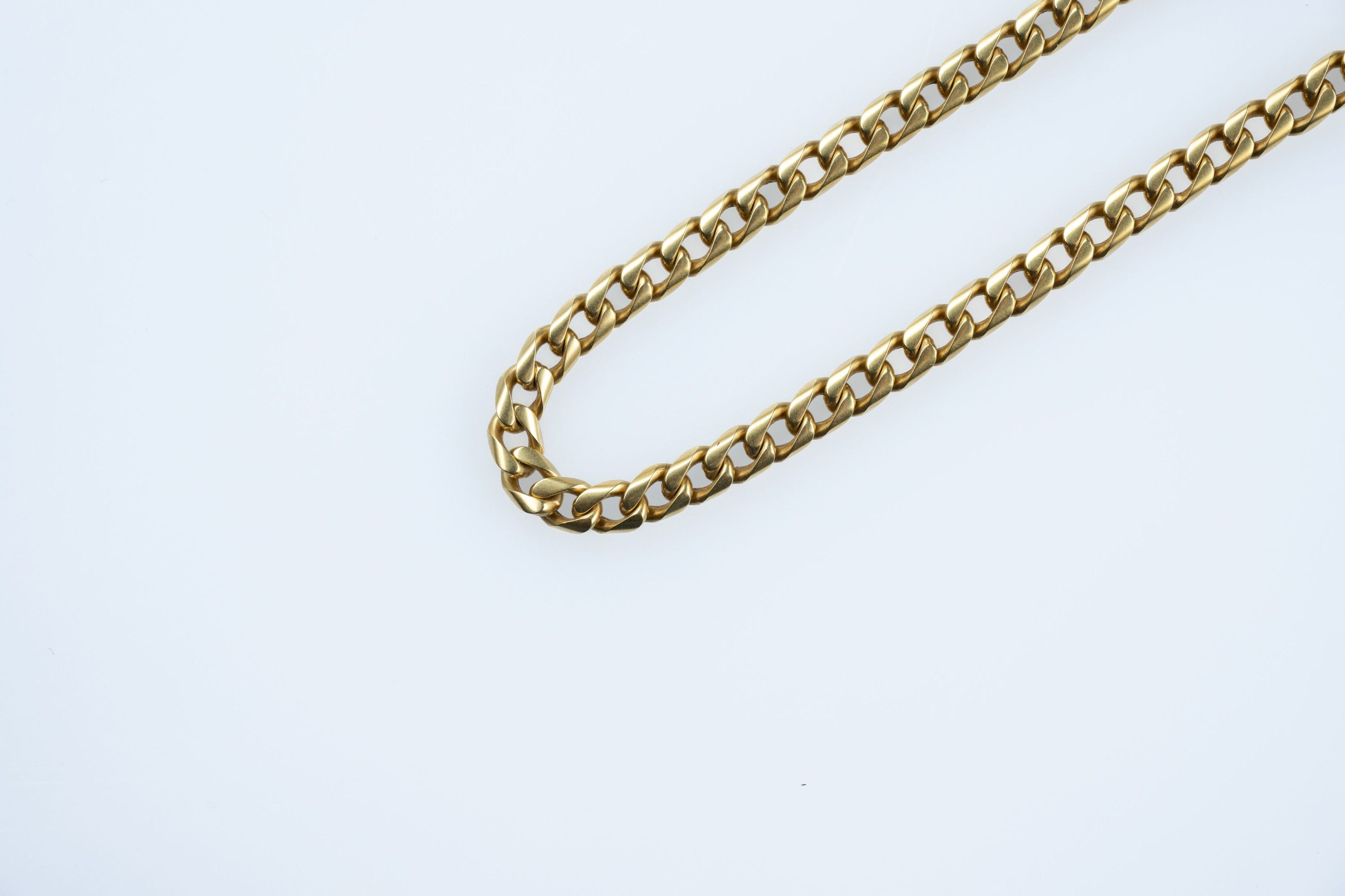 Premium 18k (750 thousandths) yellow gold Cuban link necklace.