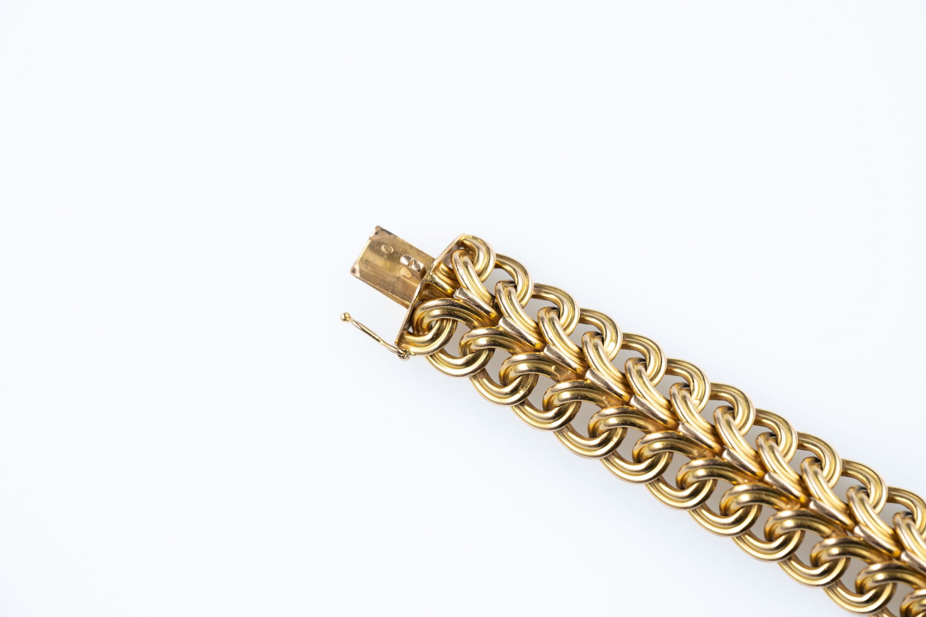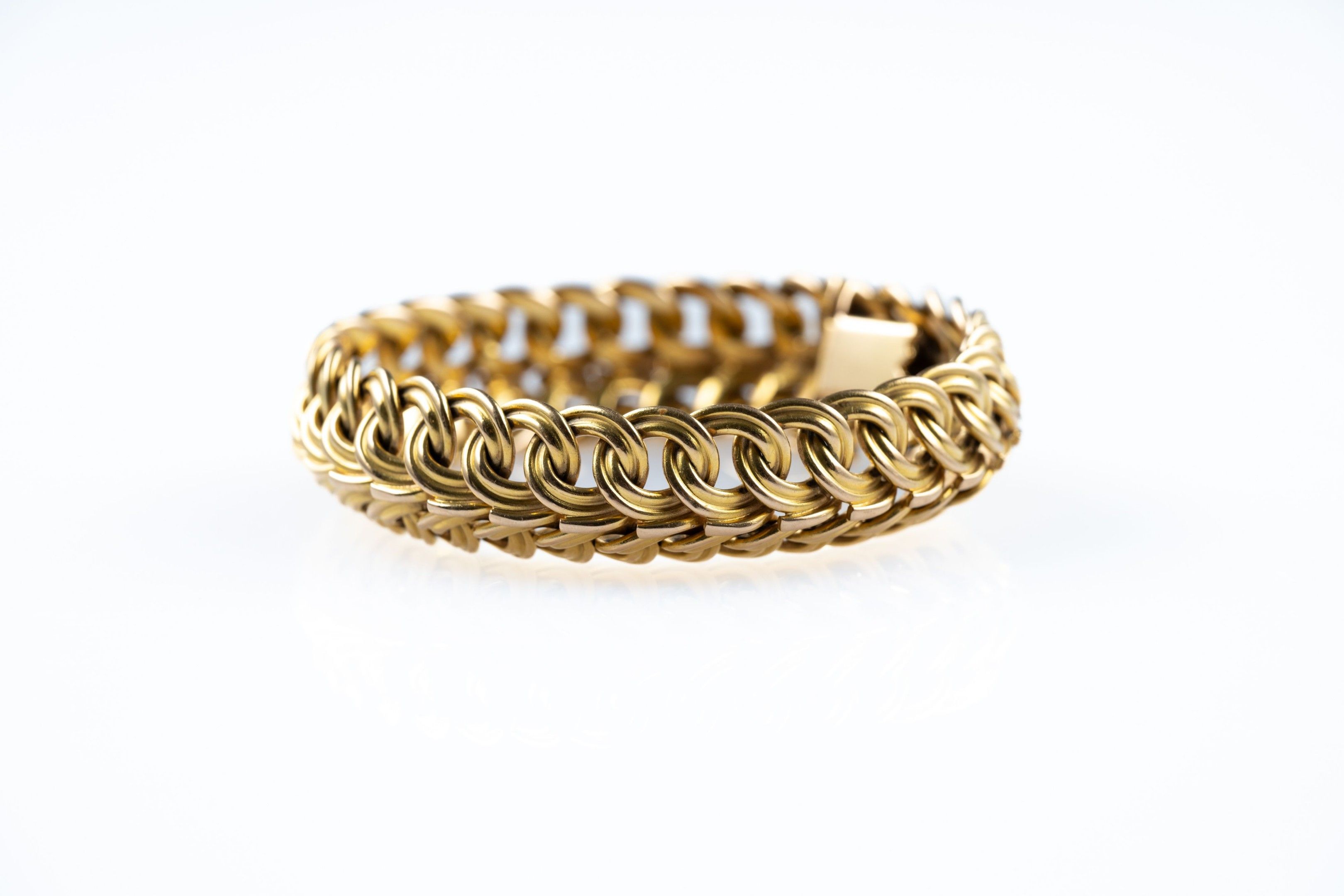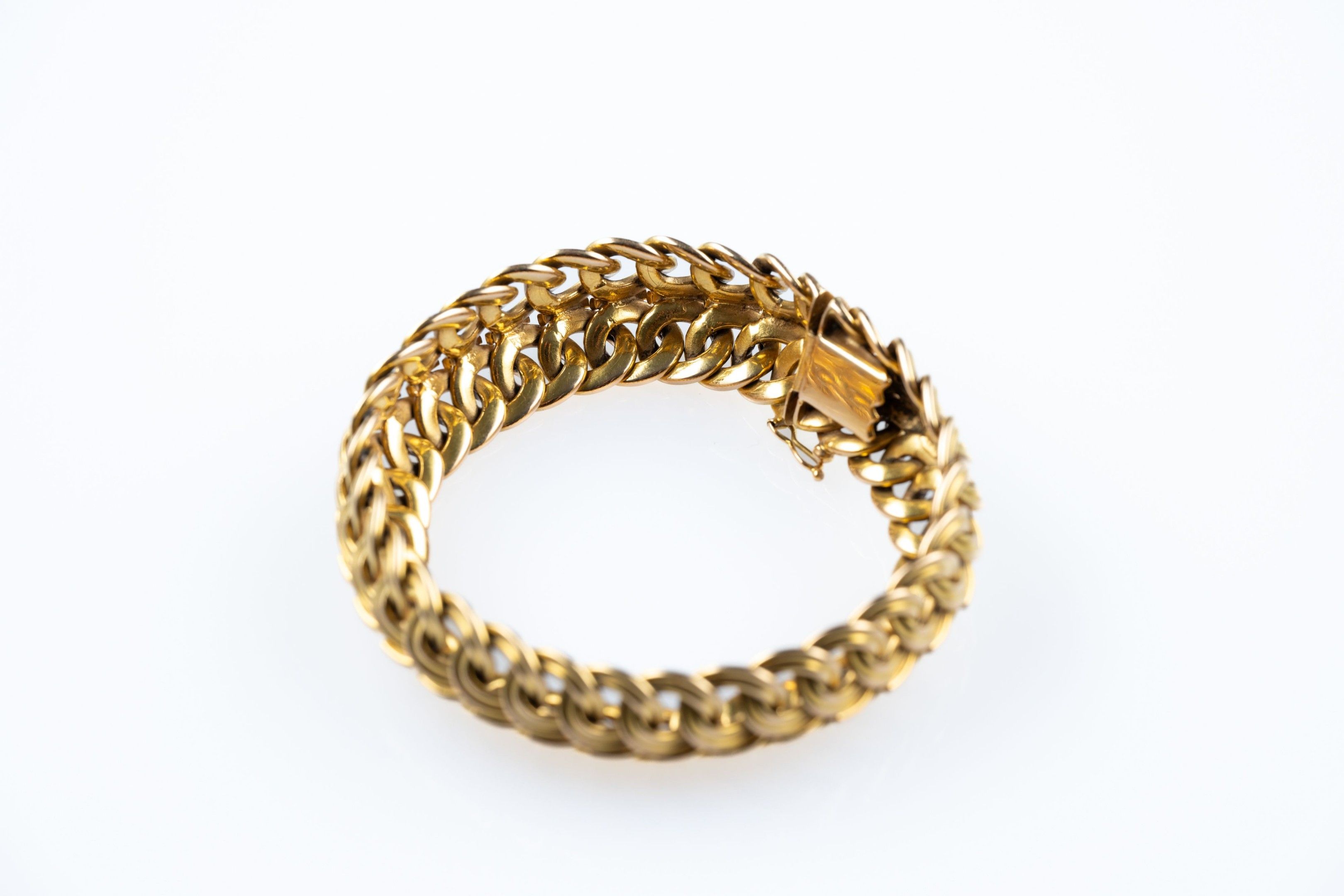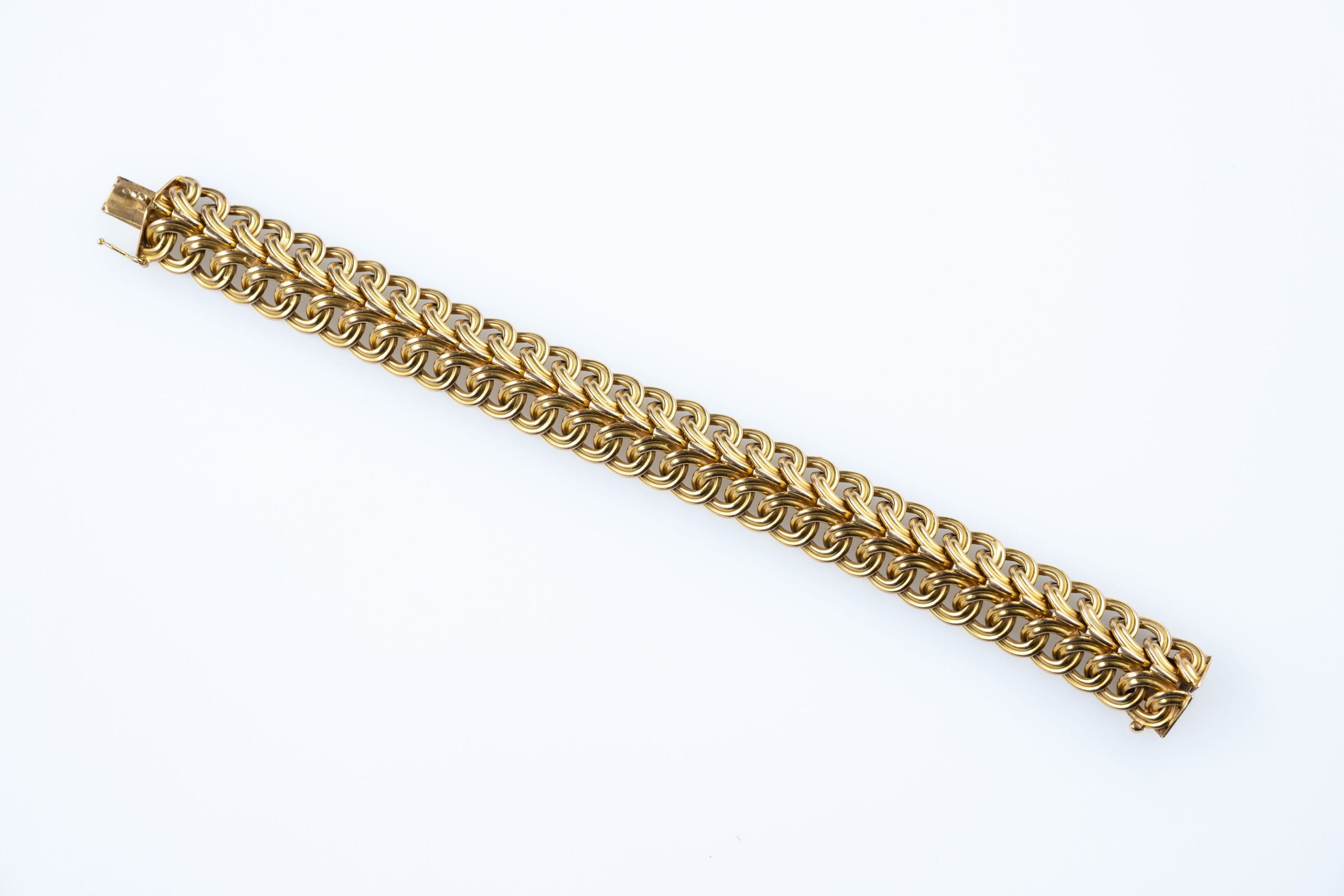 Bracelet in 18k (750 thousandths) yellow gold with large interlaced links.