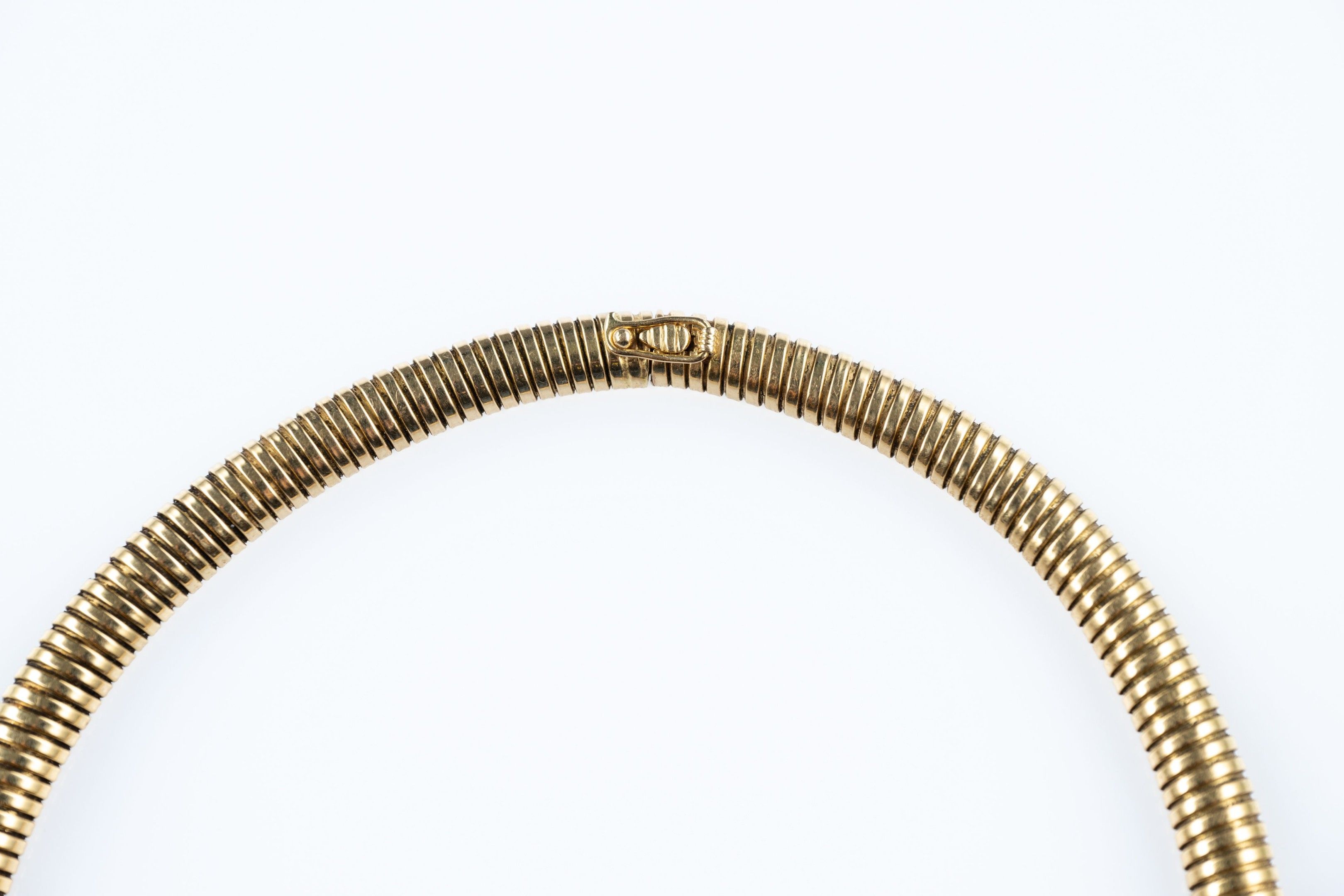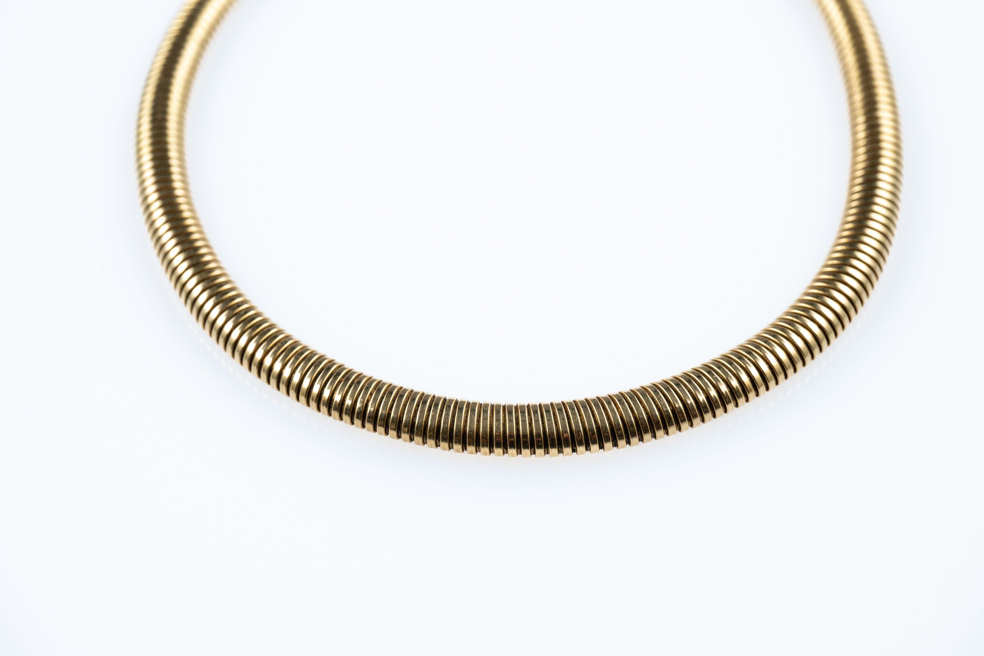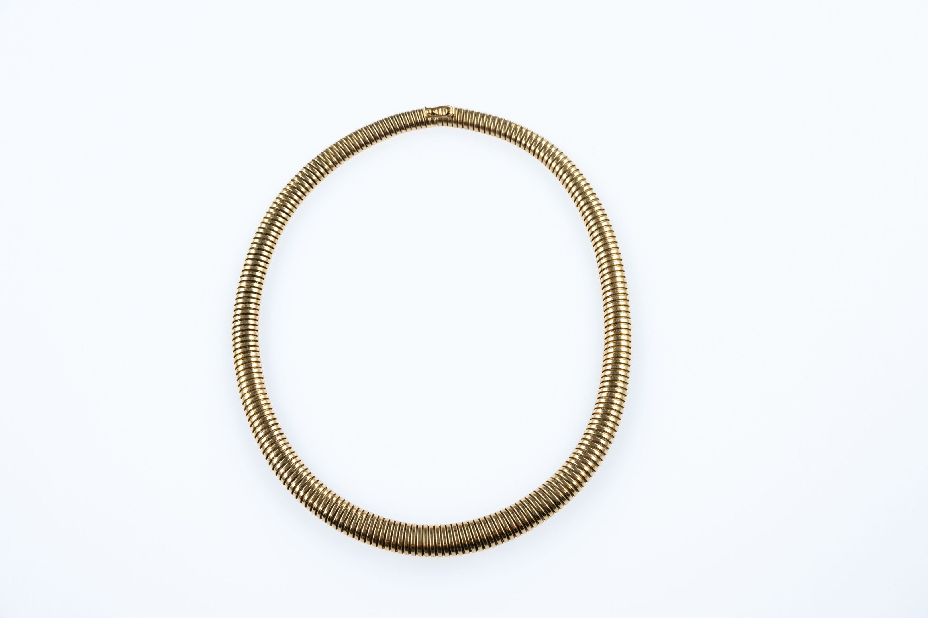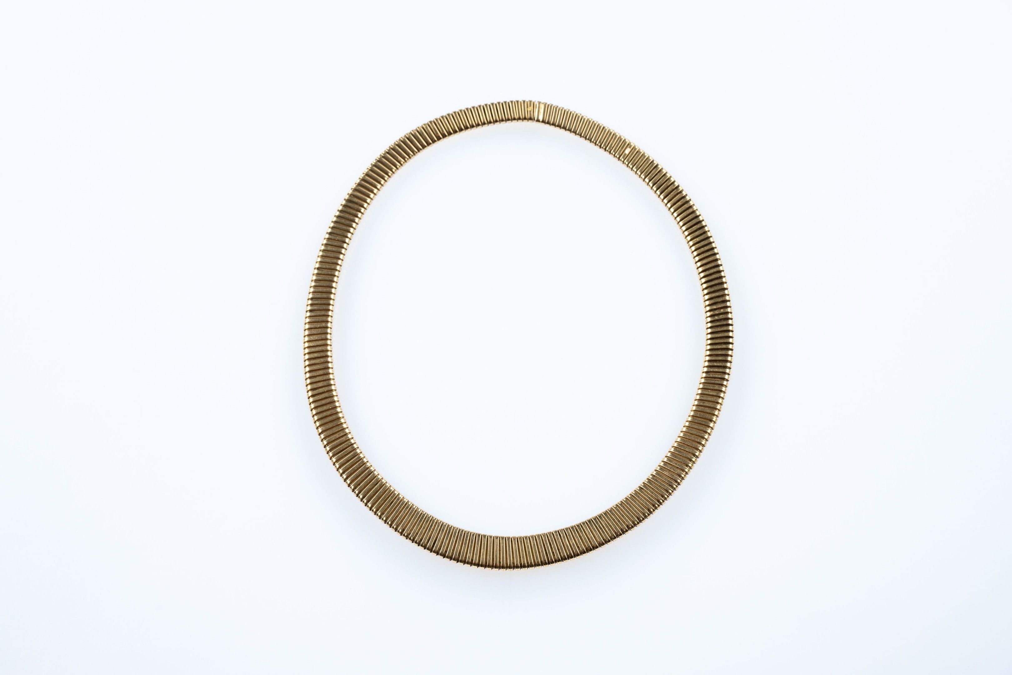 Necklace in 18k (750 thousandths) yellow gold with falling tubogaz mesh.
