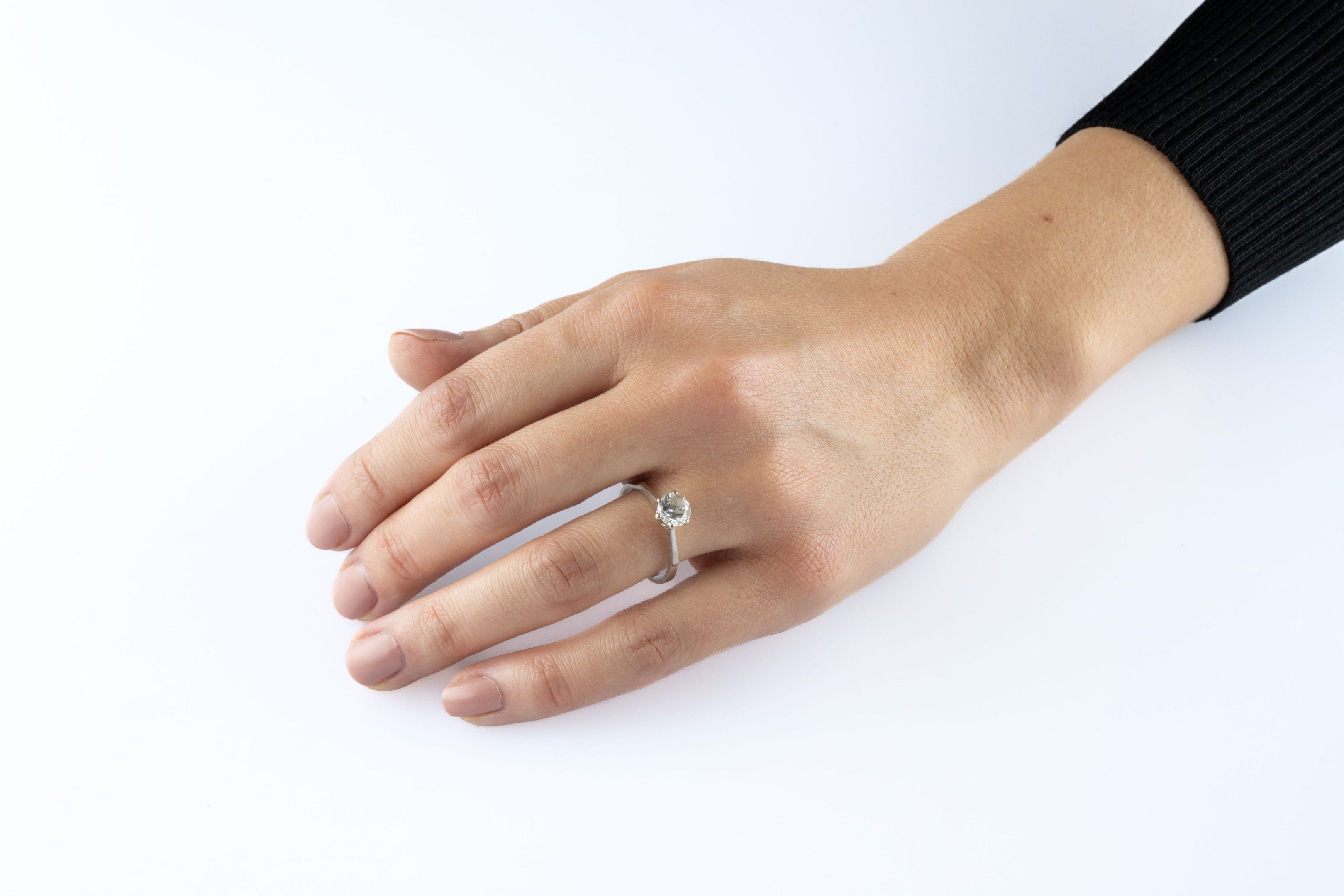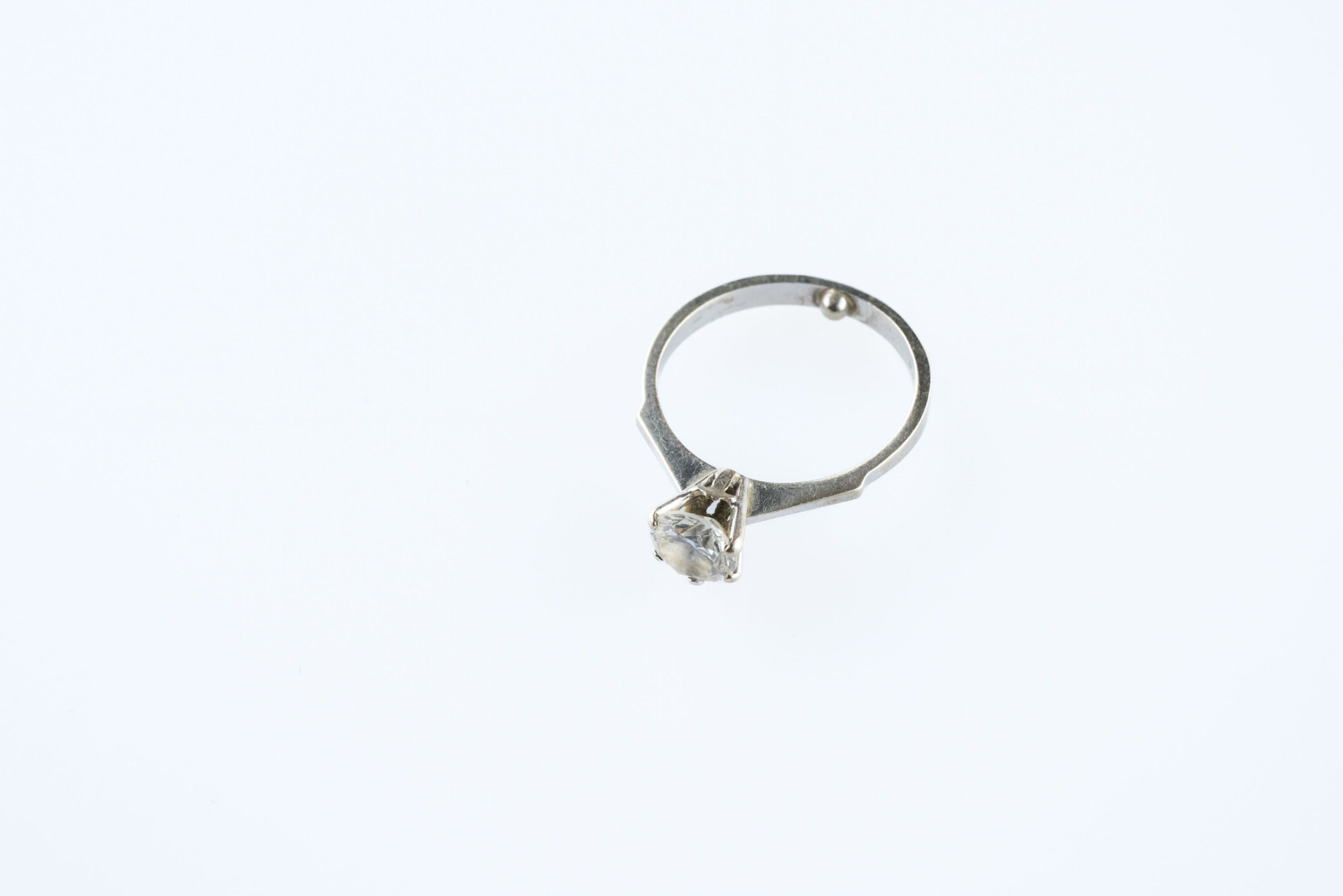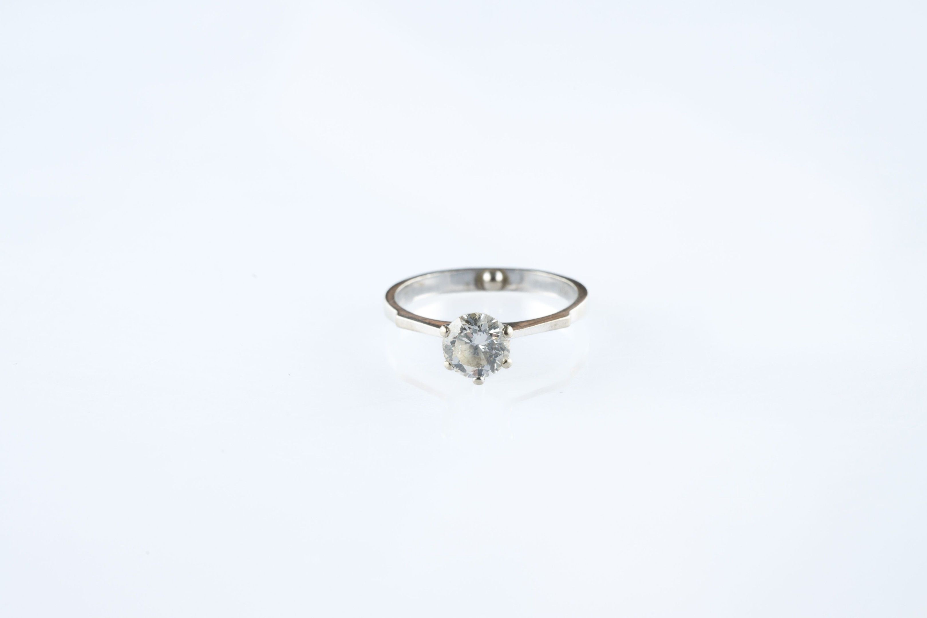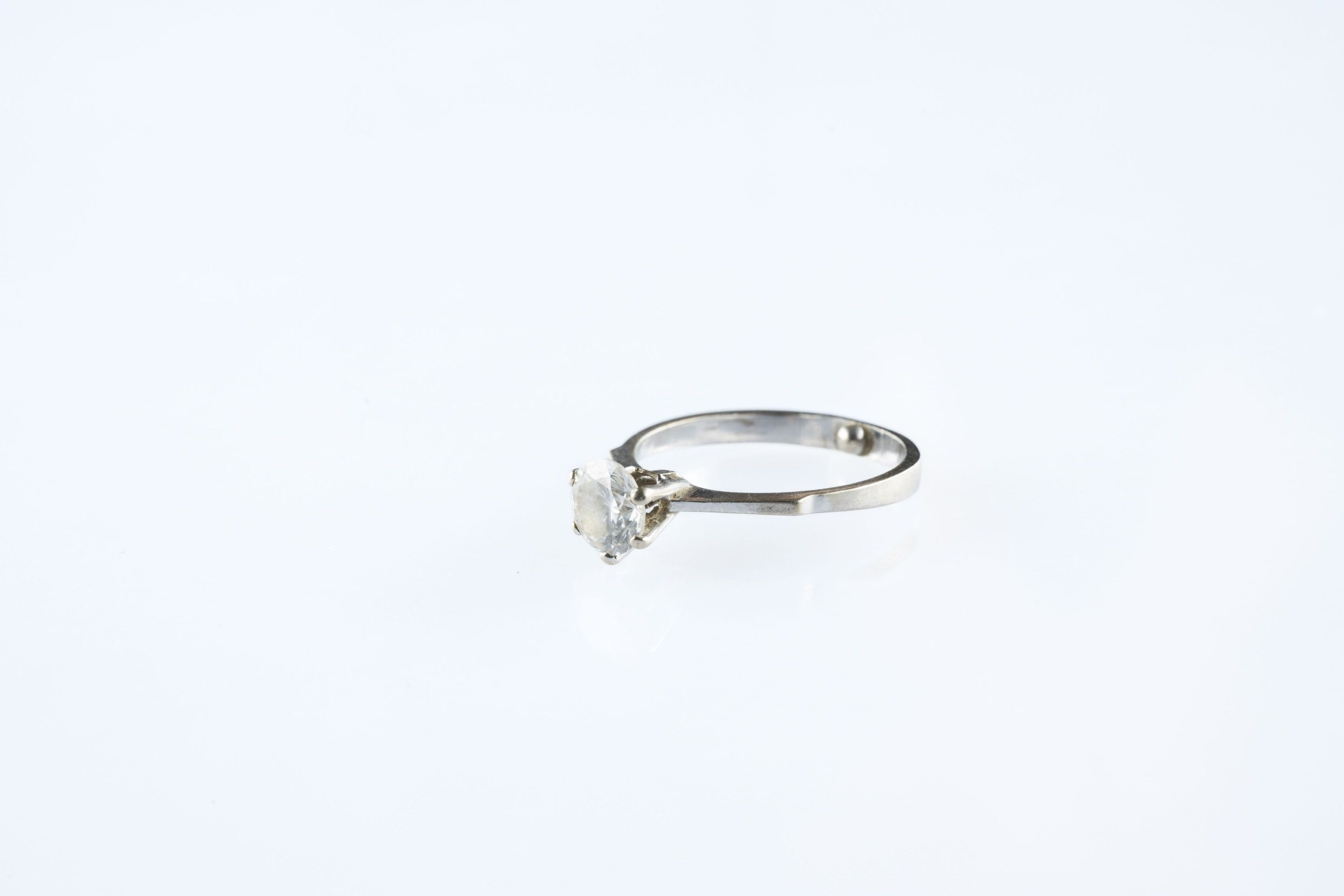 Solitaire in 18k (750 thousandths) white gold set with a brilliant-cut diamond weighing approx. 0.8 ct.