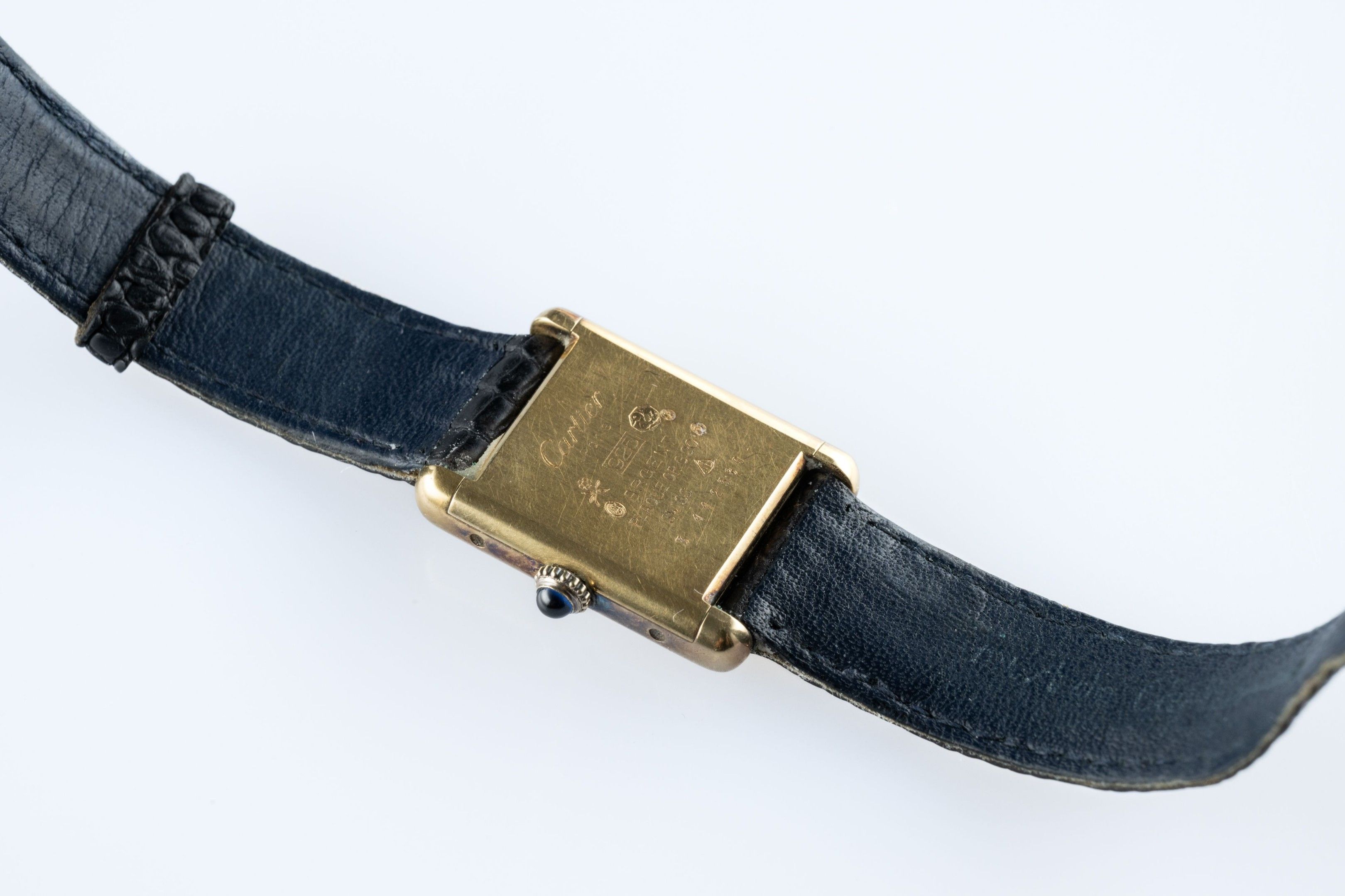 CARTIER. Tank" Must line wristwatch, case in gold-plated sil…