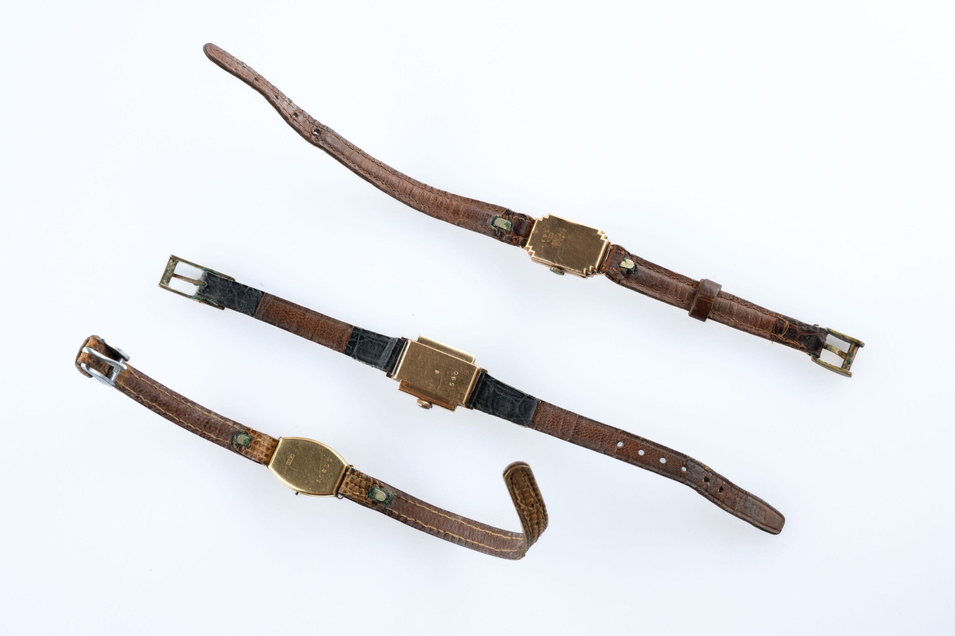 Set of three ladies' wristwatches, cases in 18k (750 thousandths) yellow gold.
