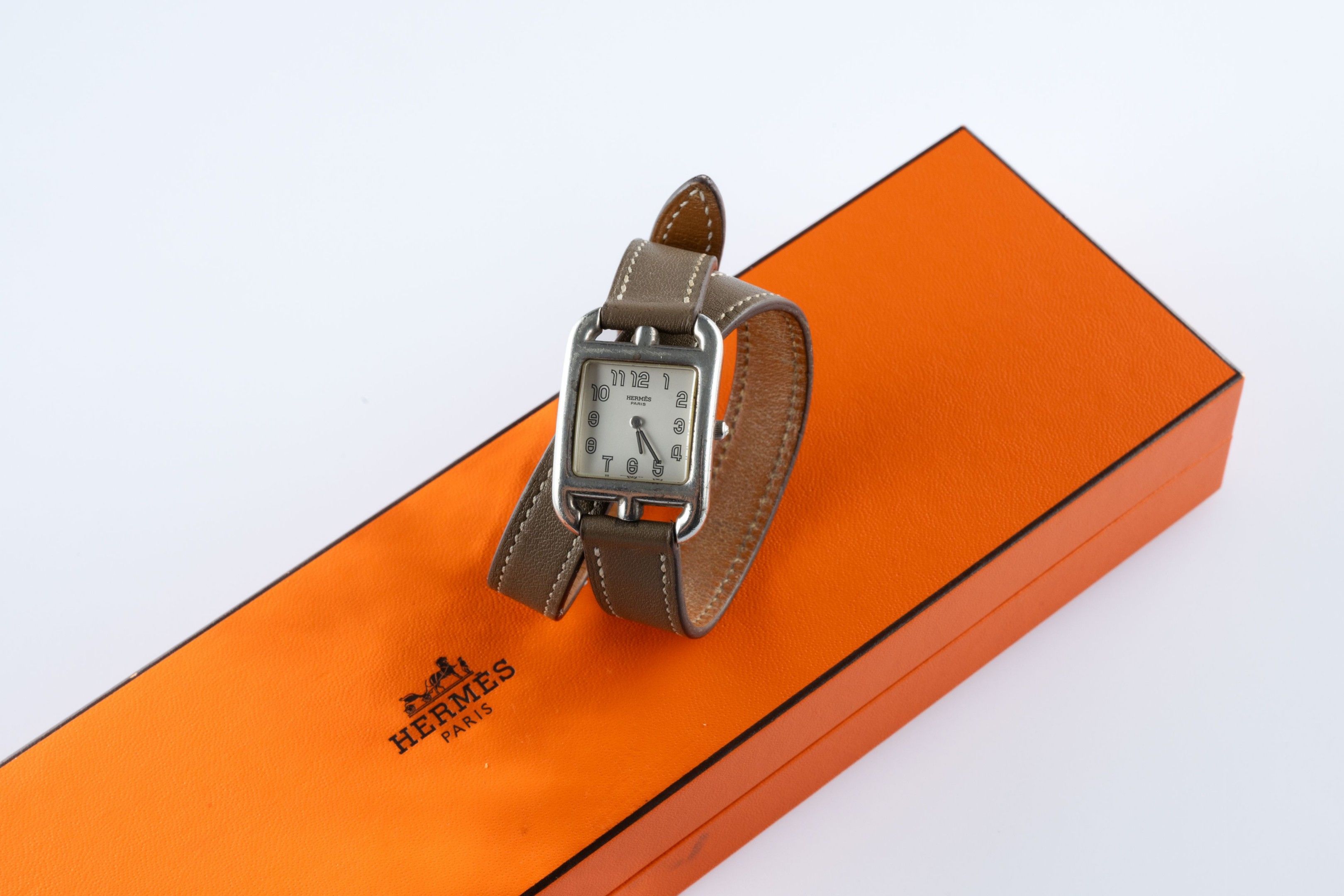 HERMES. Cape Cod" wristwatch in silver, dial with grey backg…