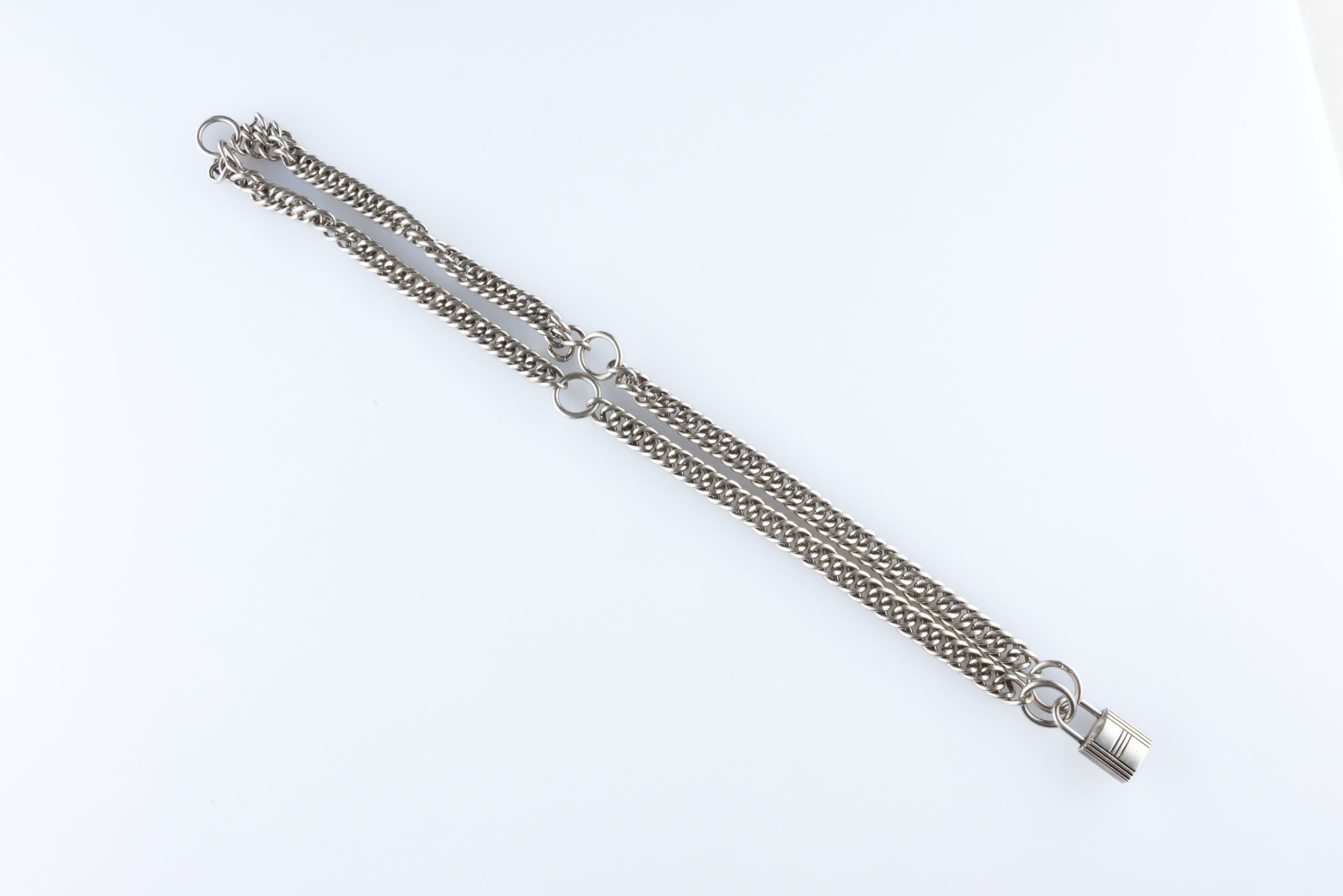 HERMES. Silver long necklace with curb chain and "Kelly" pad…