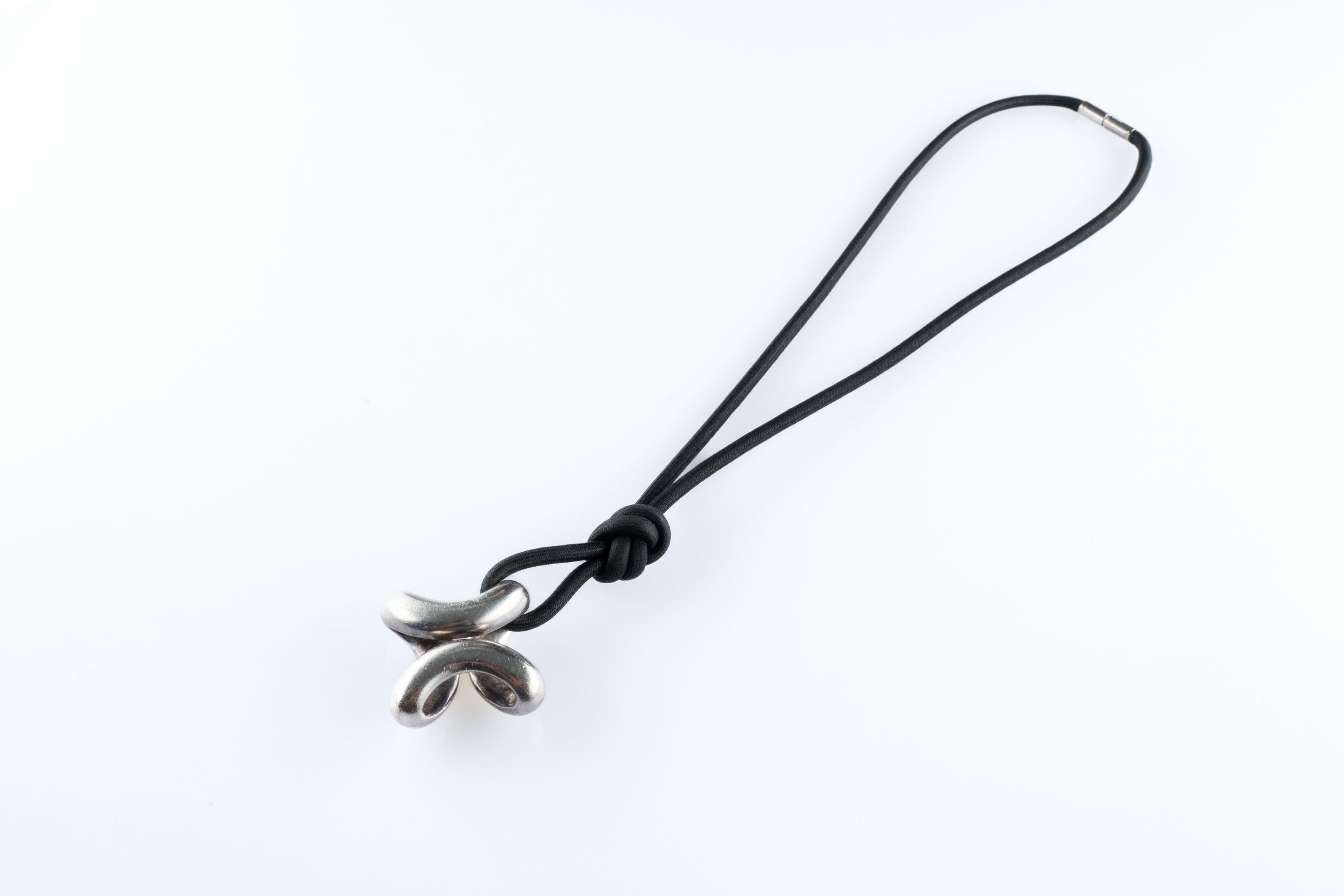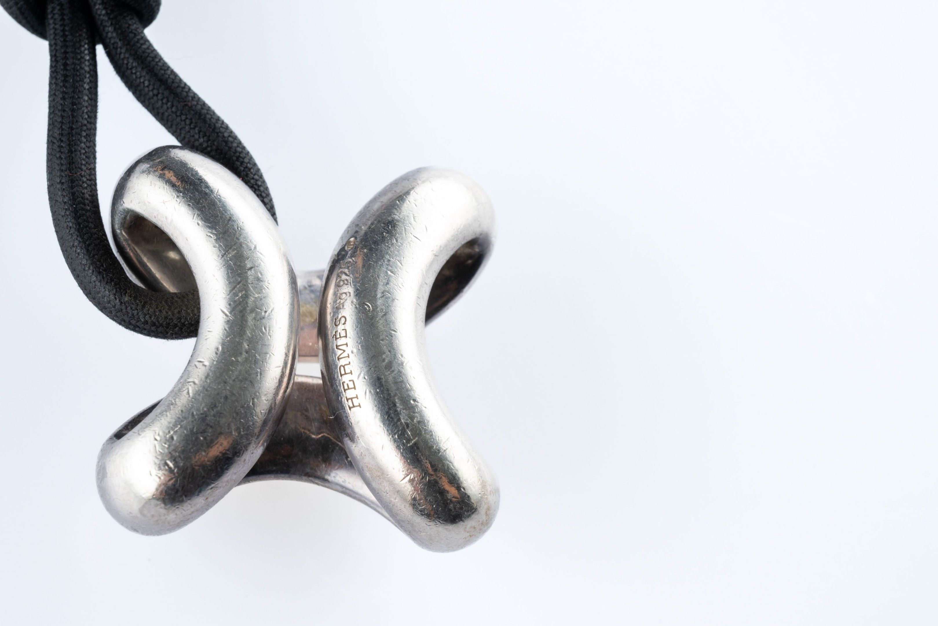 HERMES. Lima" necklace, silver pendant and clasp on black te…