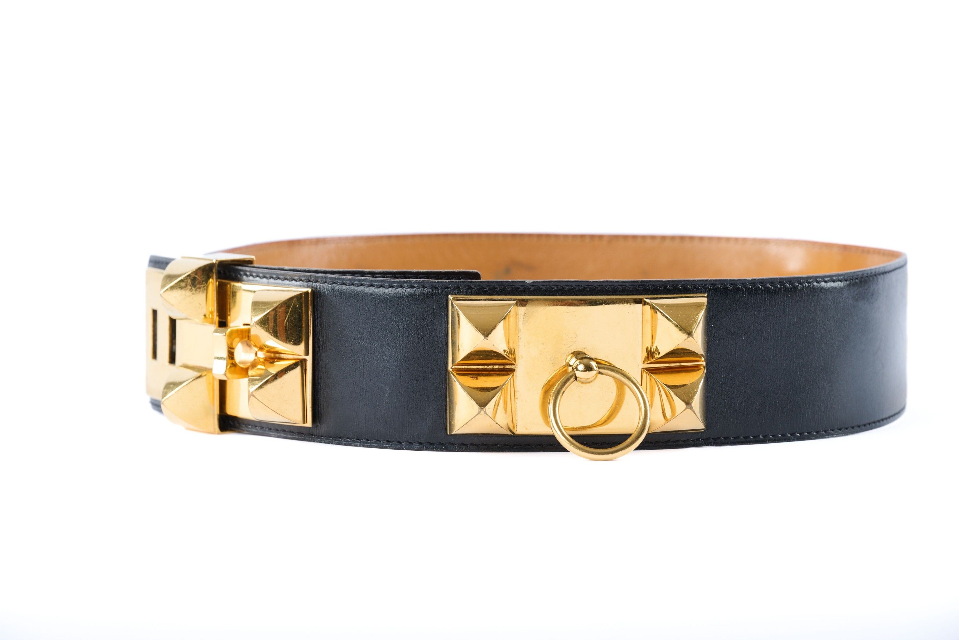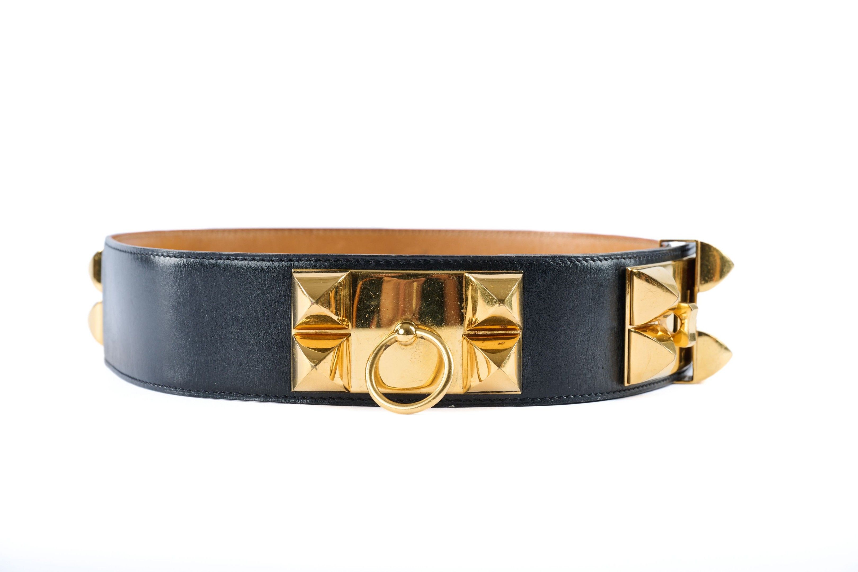 Premium HERMES. Collier de chien" belt in black box calfskin with go…