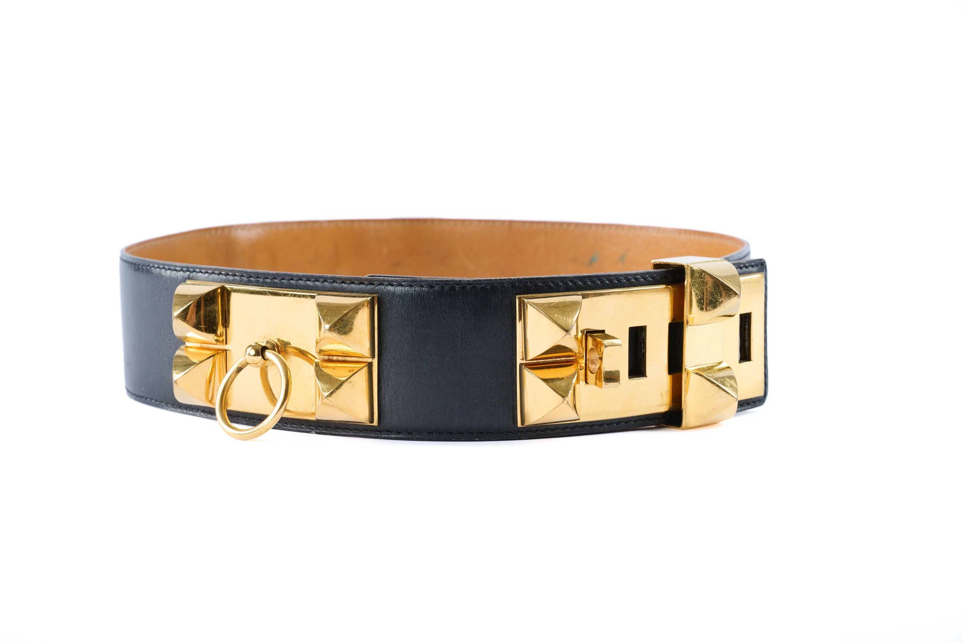 HERMES. Collier de chien" belt in black box calfskin with go…