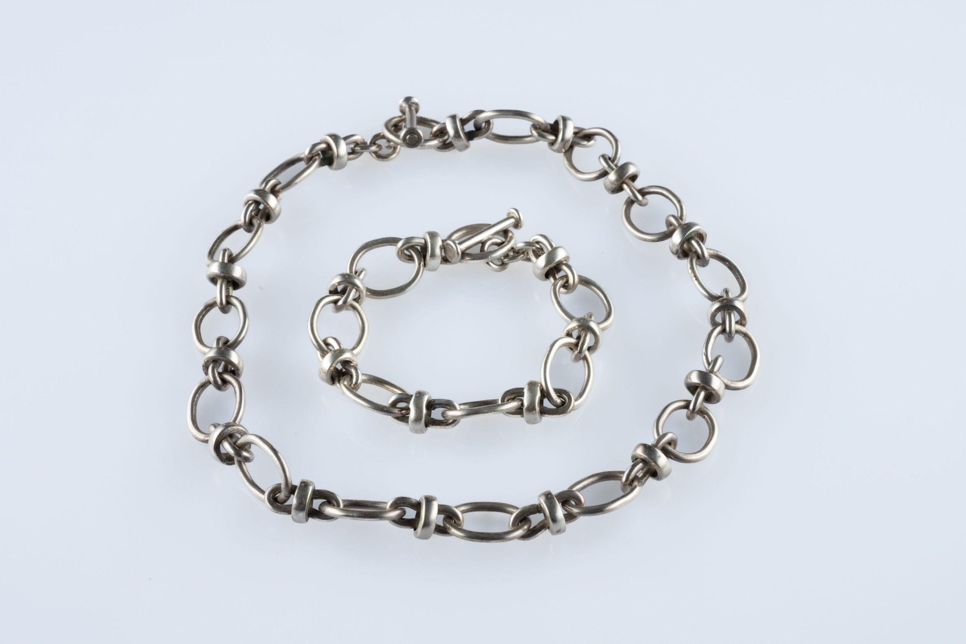 Silver set comprising a necklace and a bracelet in the spirit of a marine chain.
