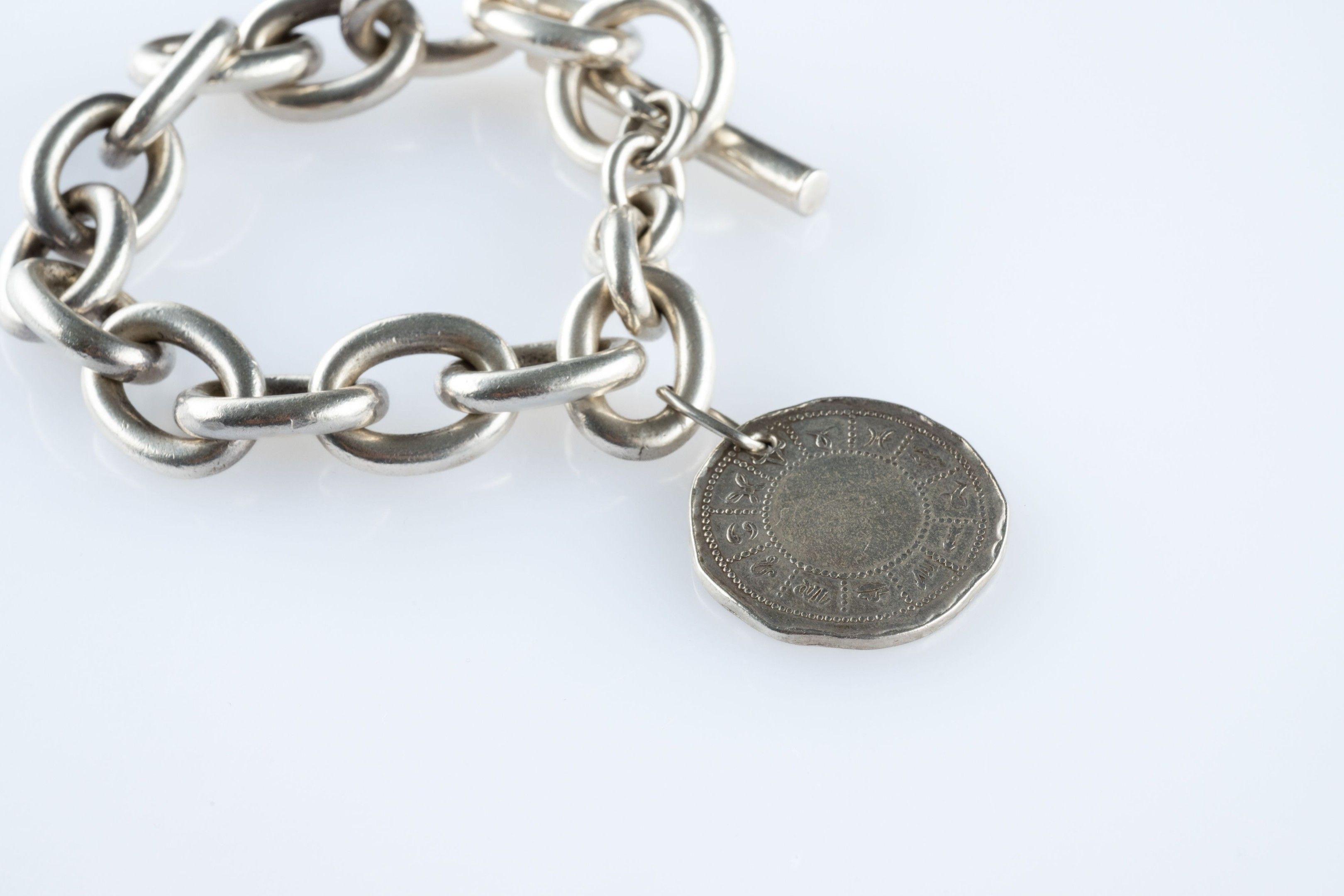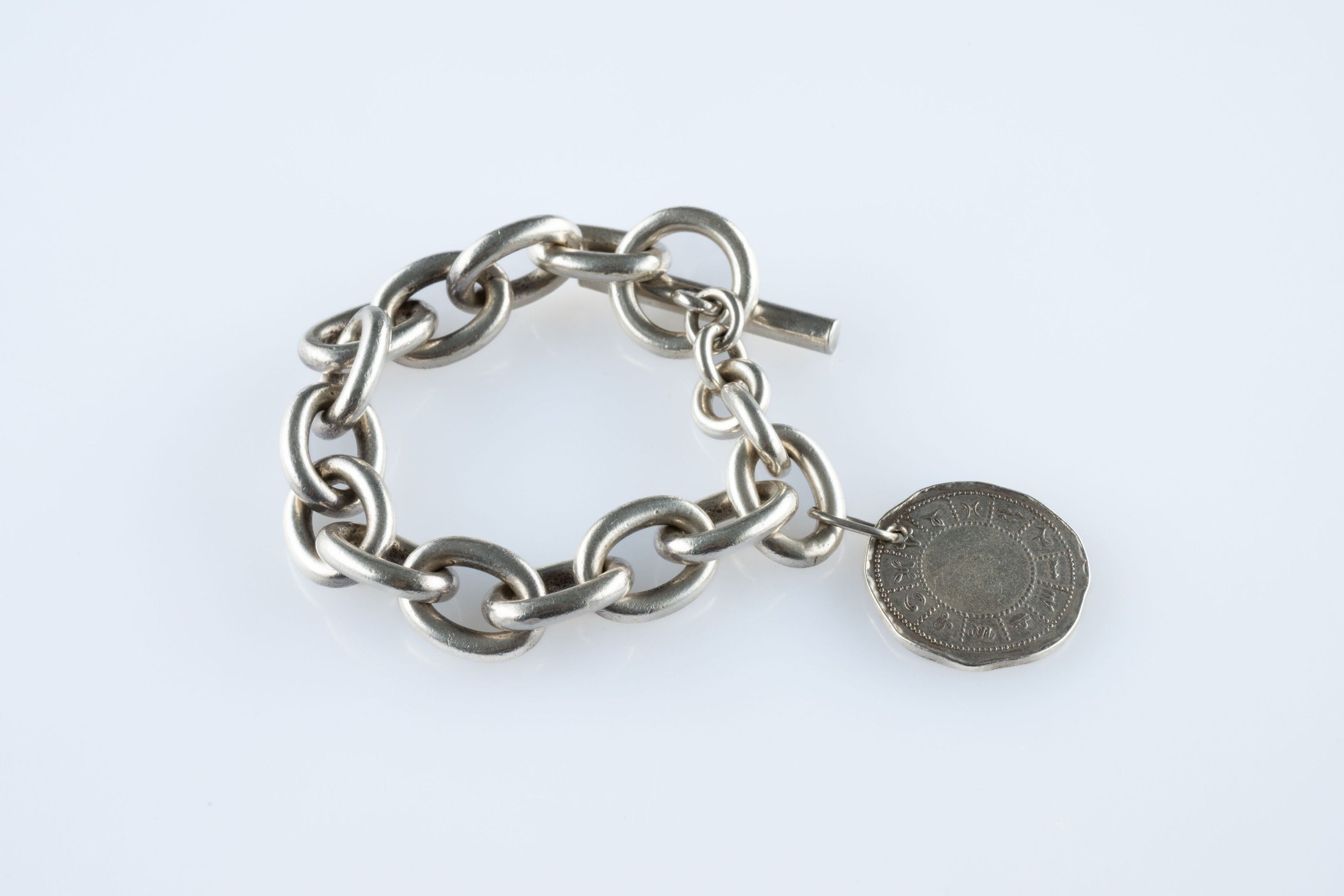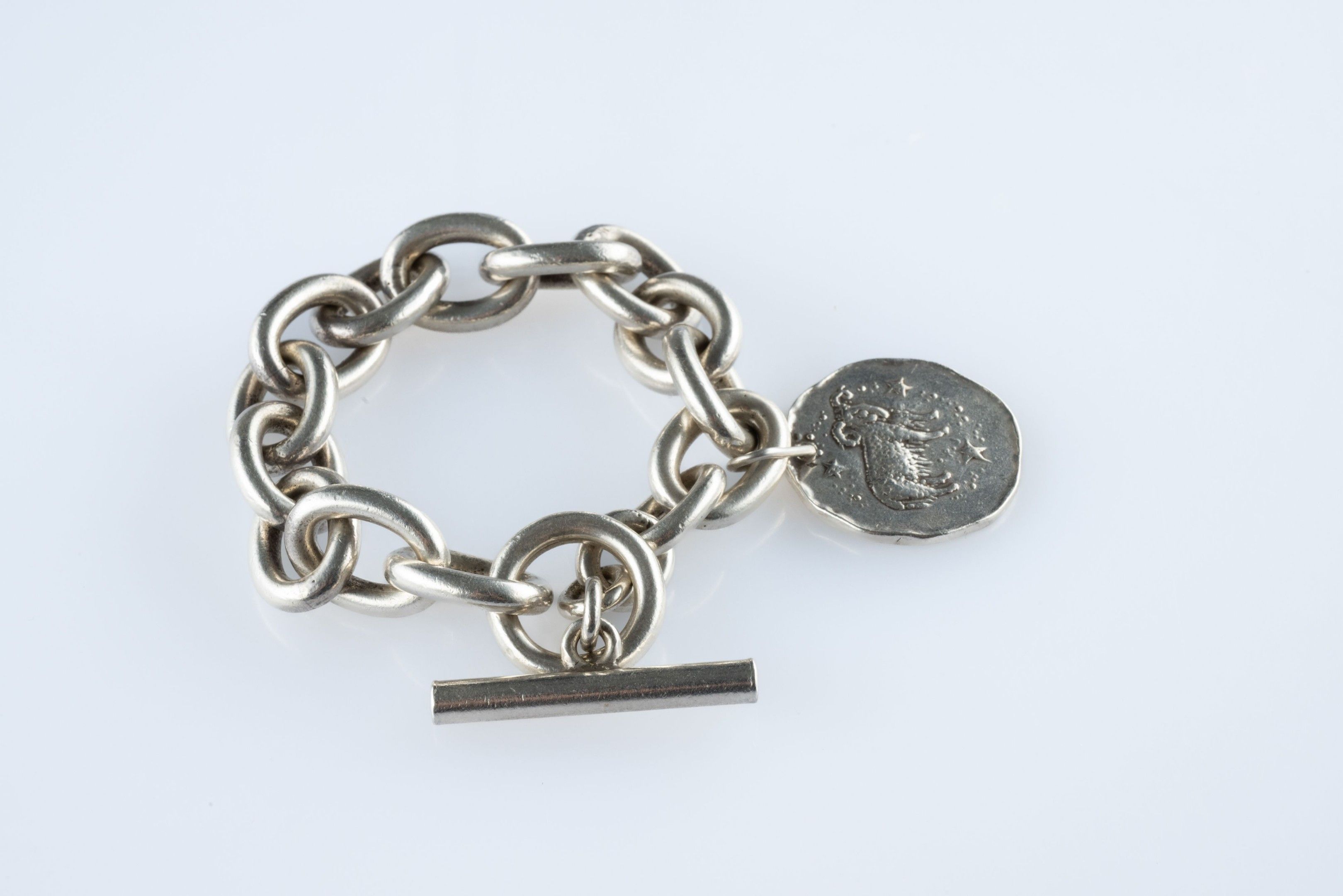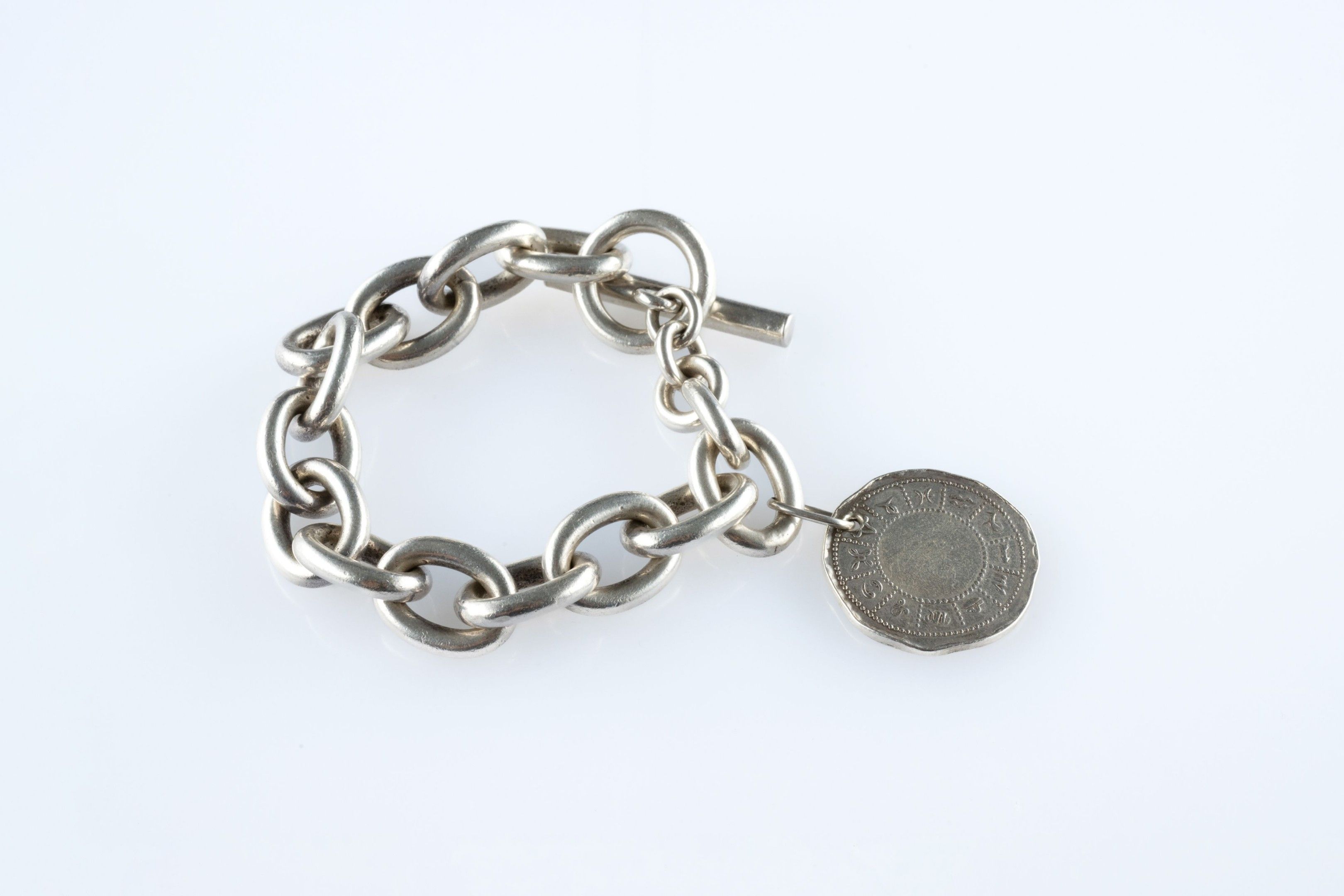 In the Hermès style. Anchor chain bracelet holding a circula…