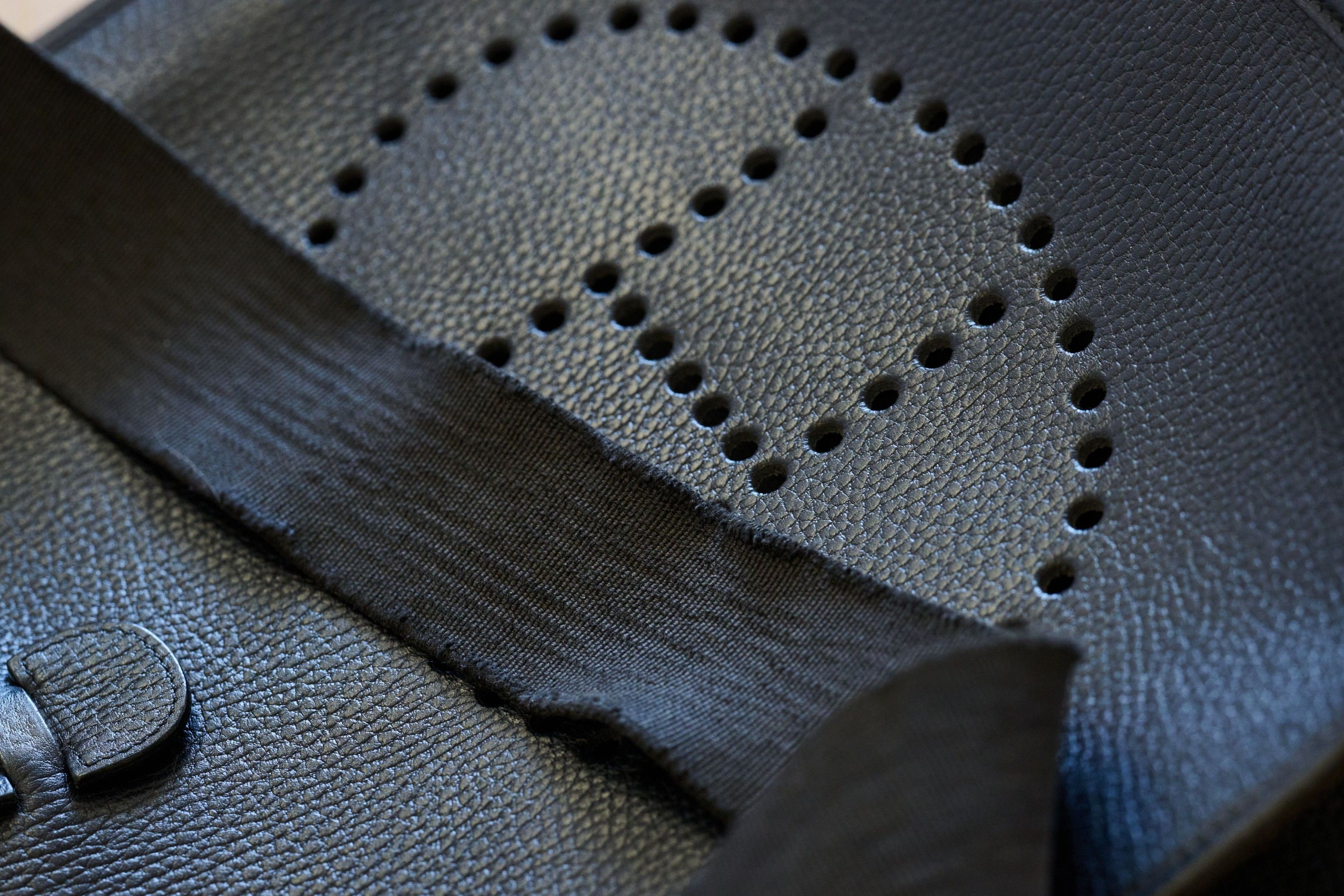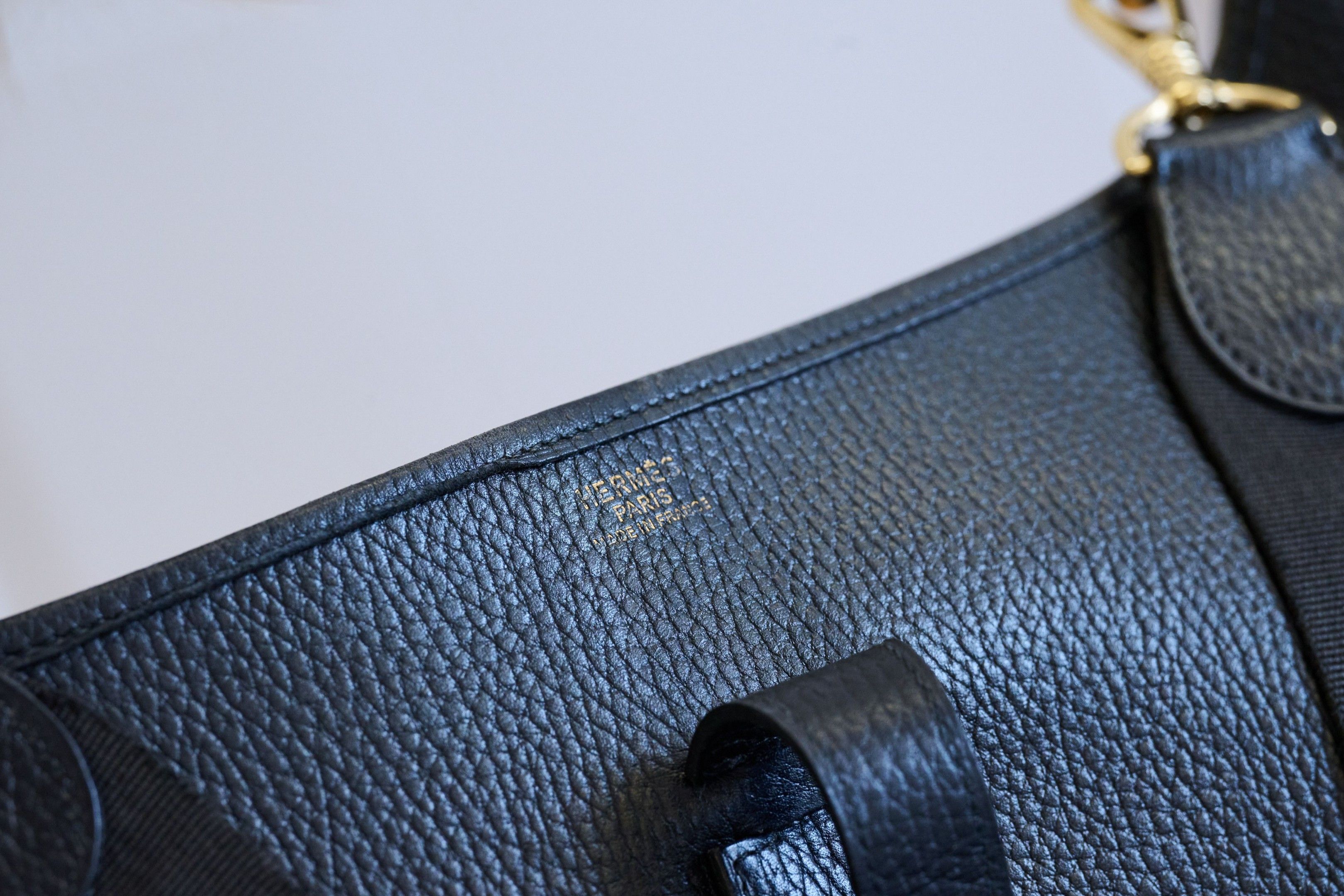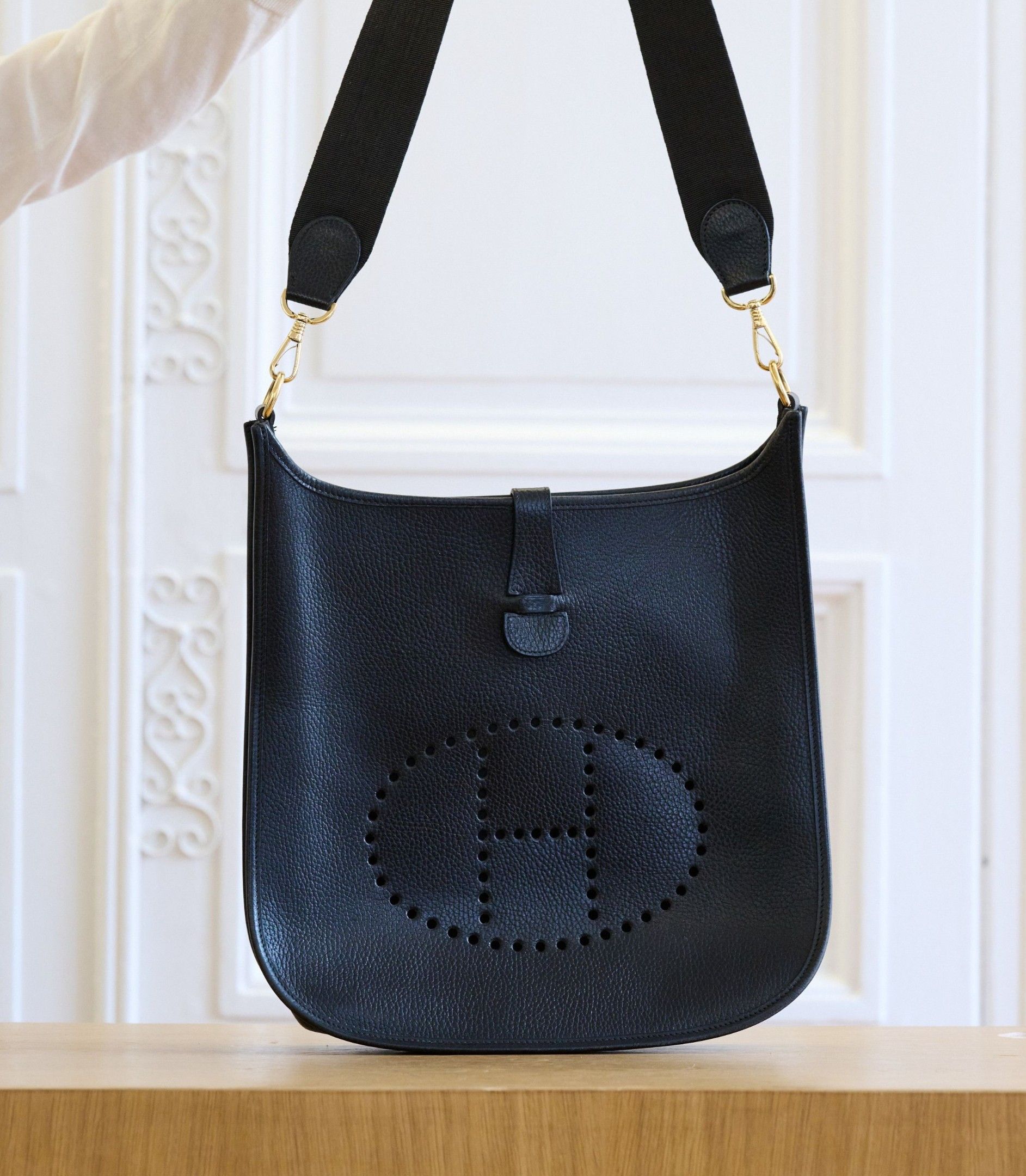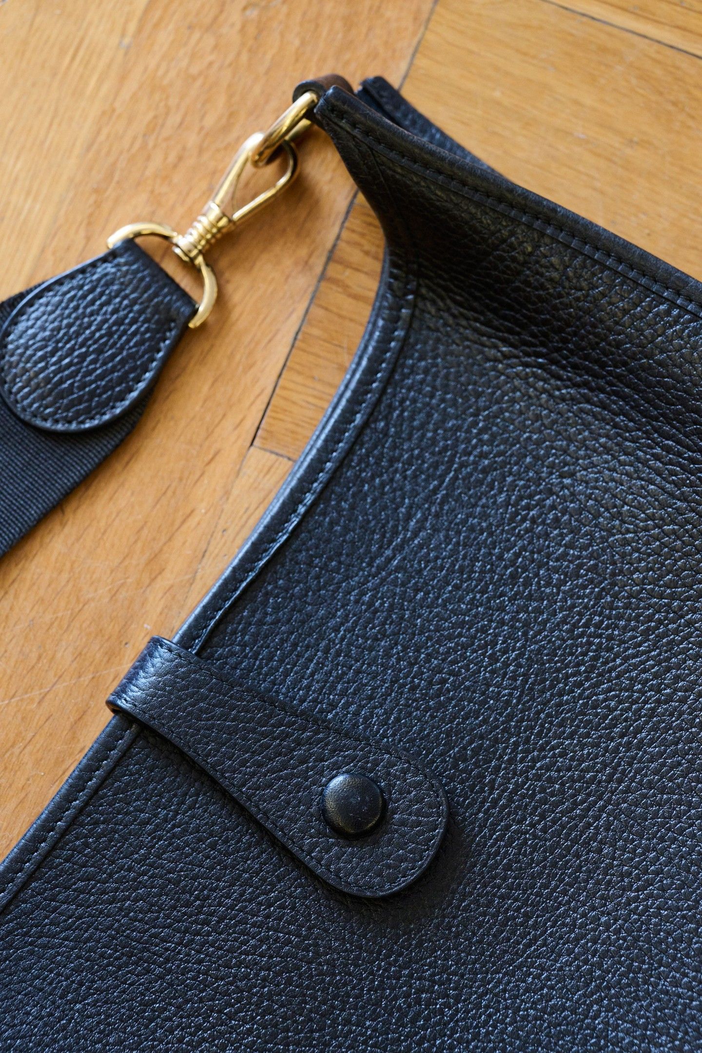 Premium HERMES. Evelyne" bag in black Clémence taurillon leather, gi…