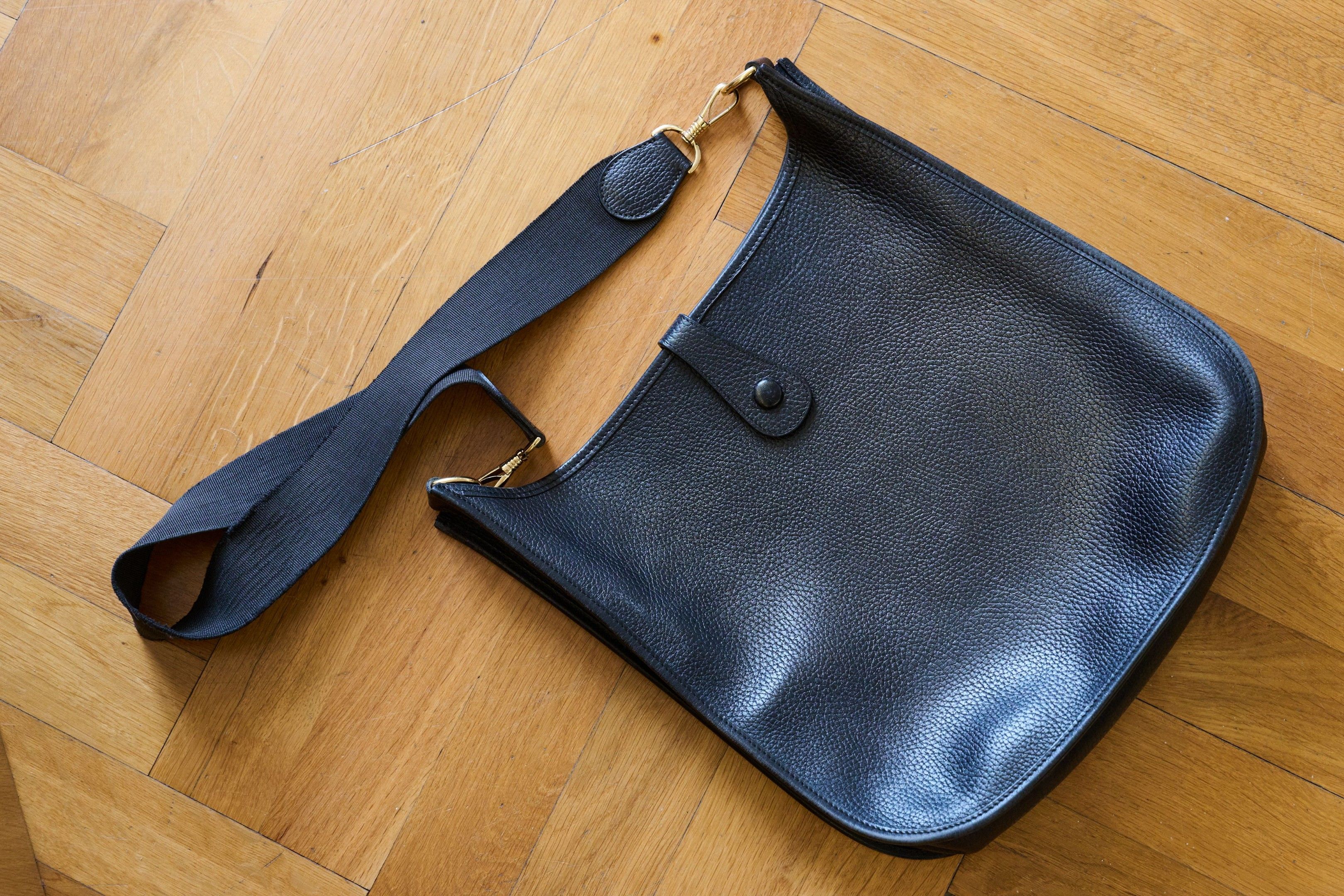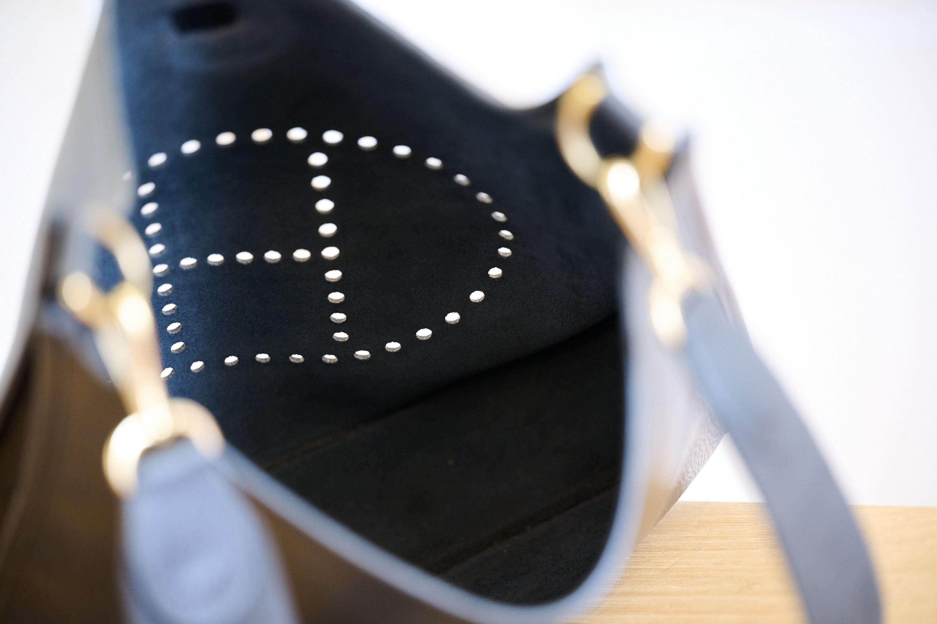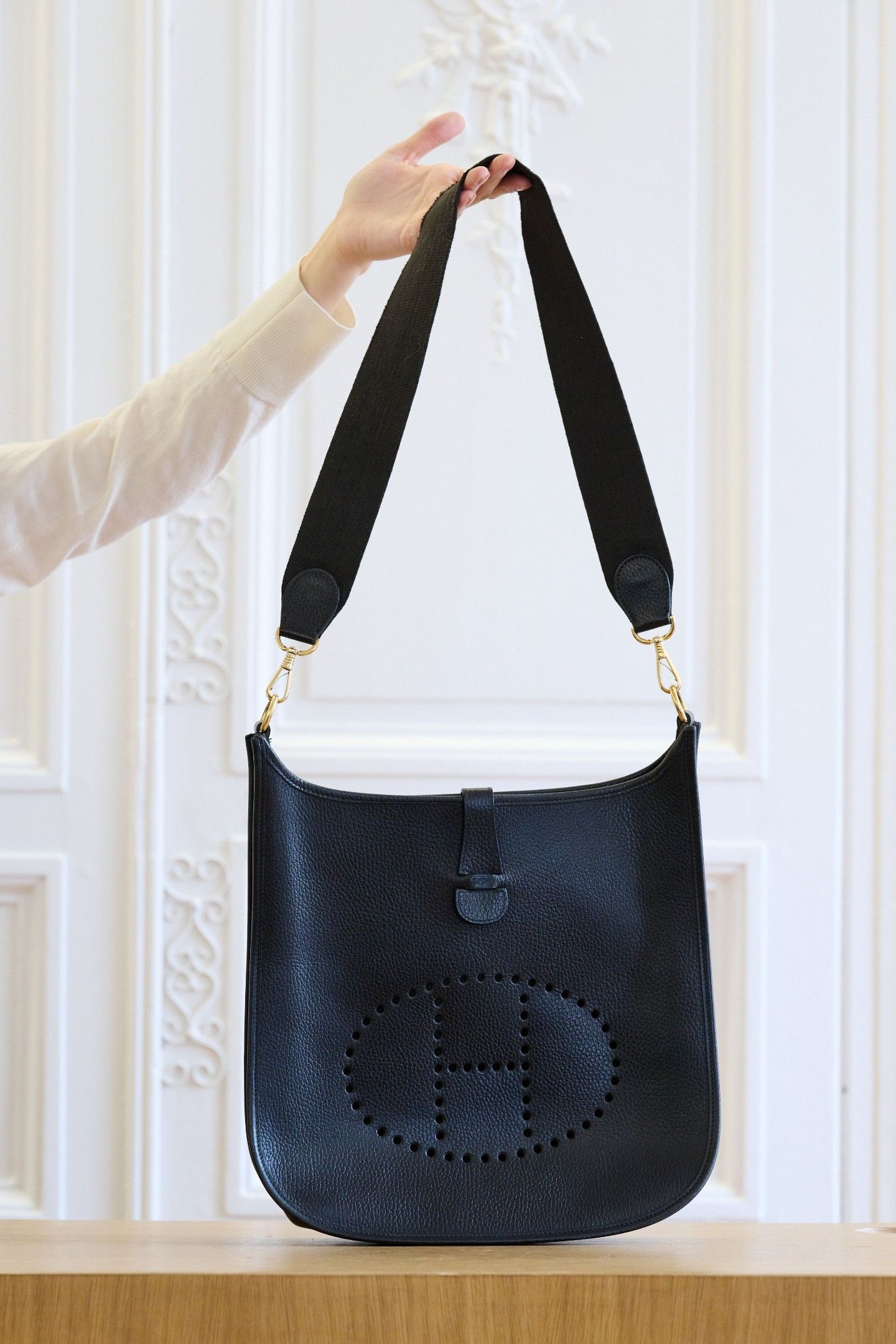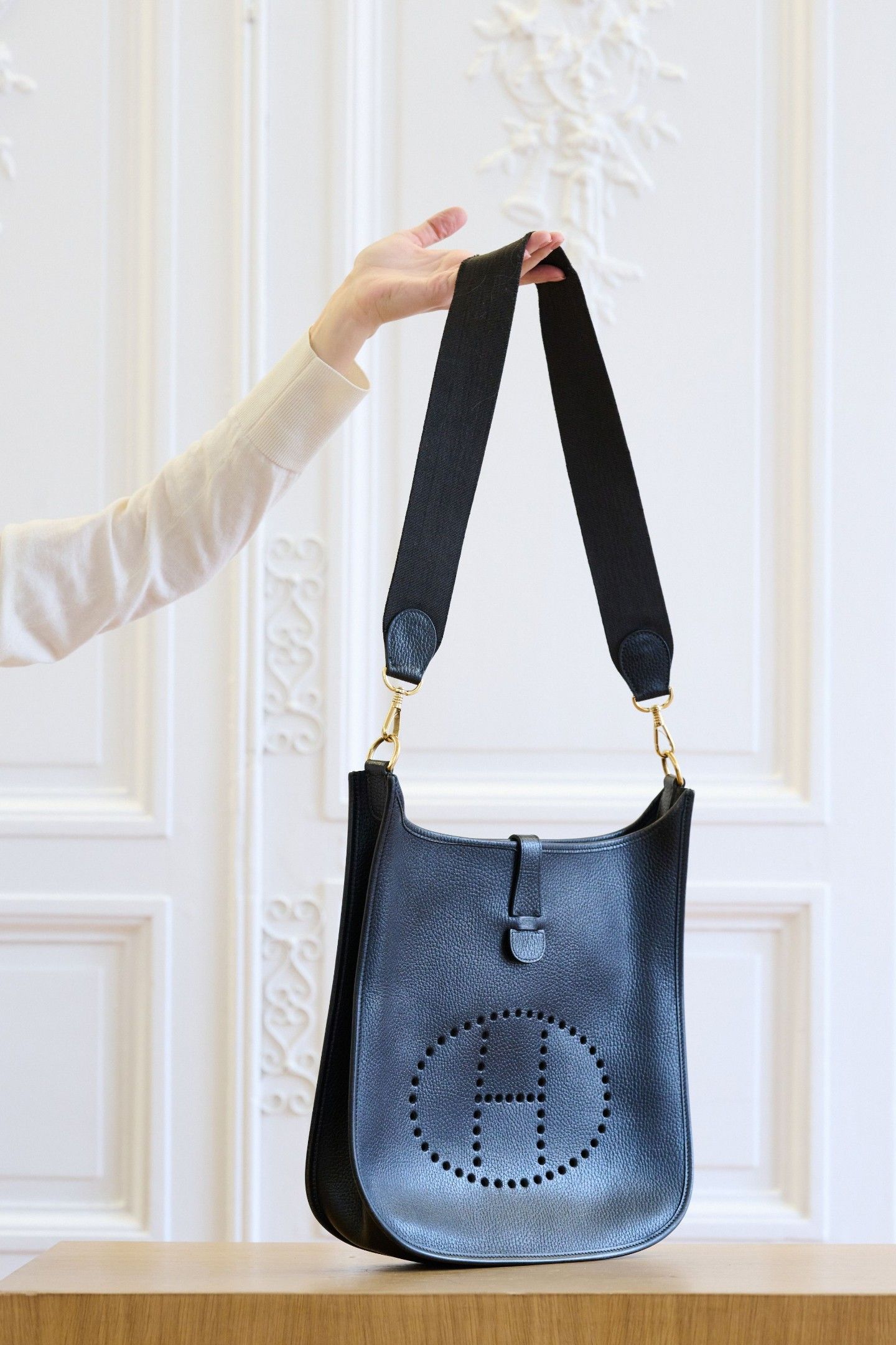 Premium HERMES. Evelyne" bag in black Clémence taurillon leather, gi…