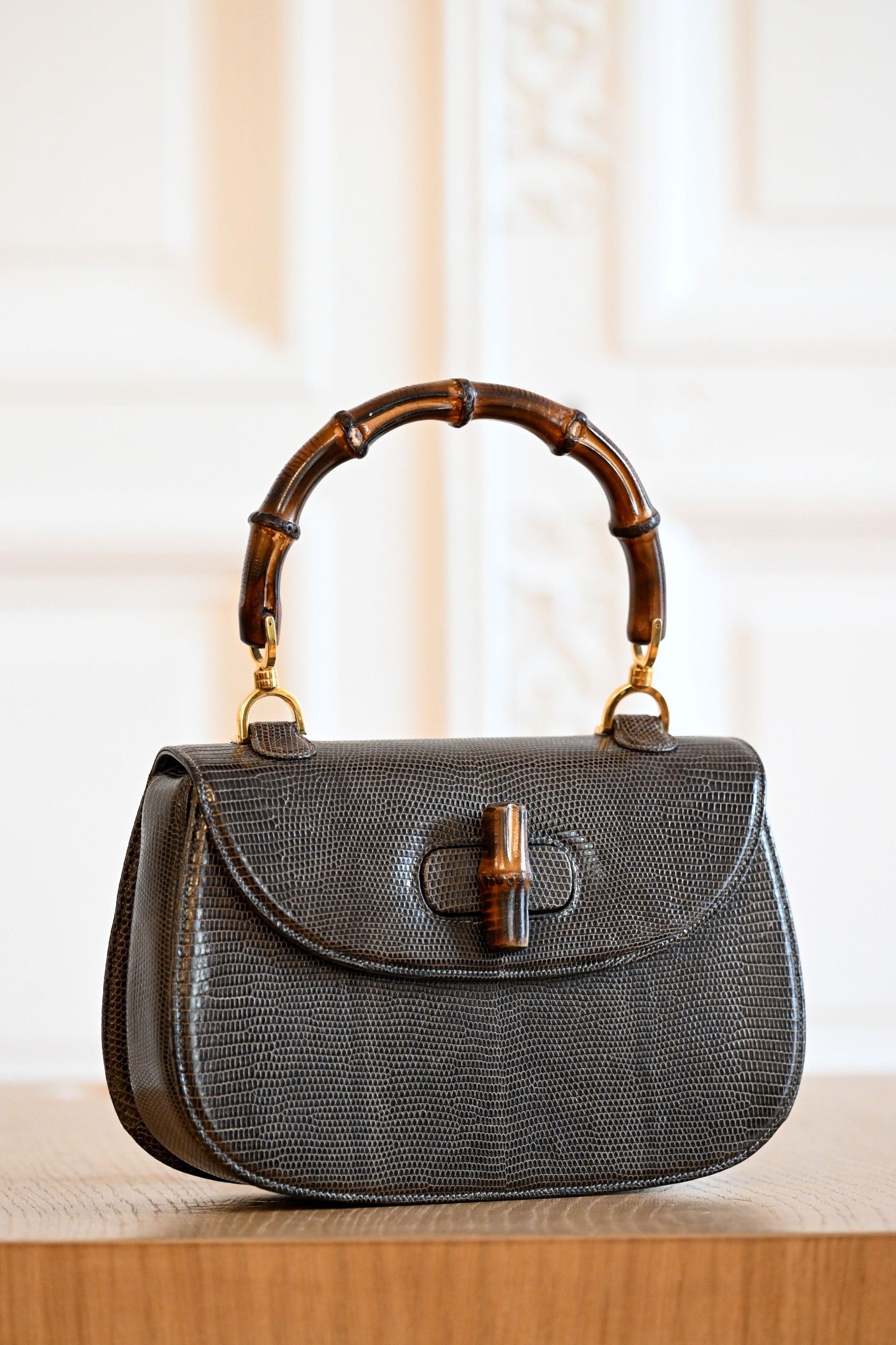 Premium GUCCI. Bamboo 1947" bag, in taupe reptile leather, bamboo ha…