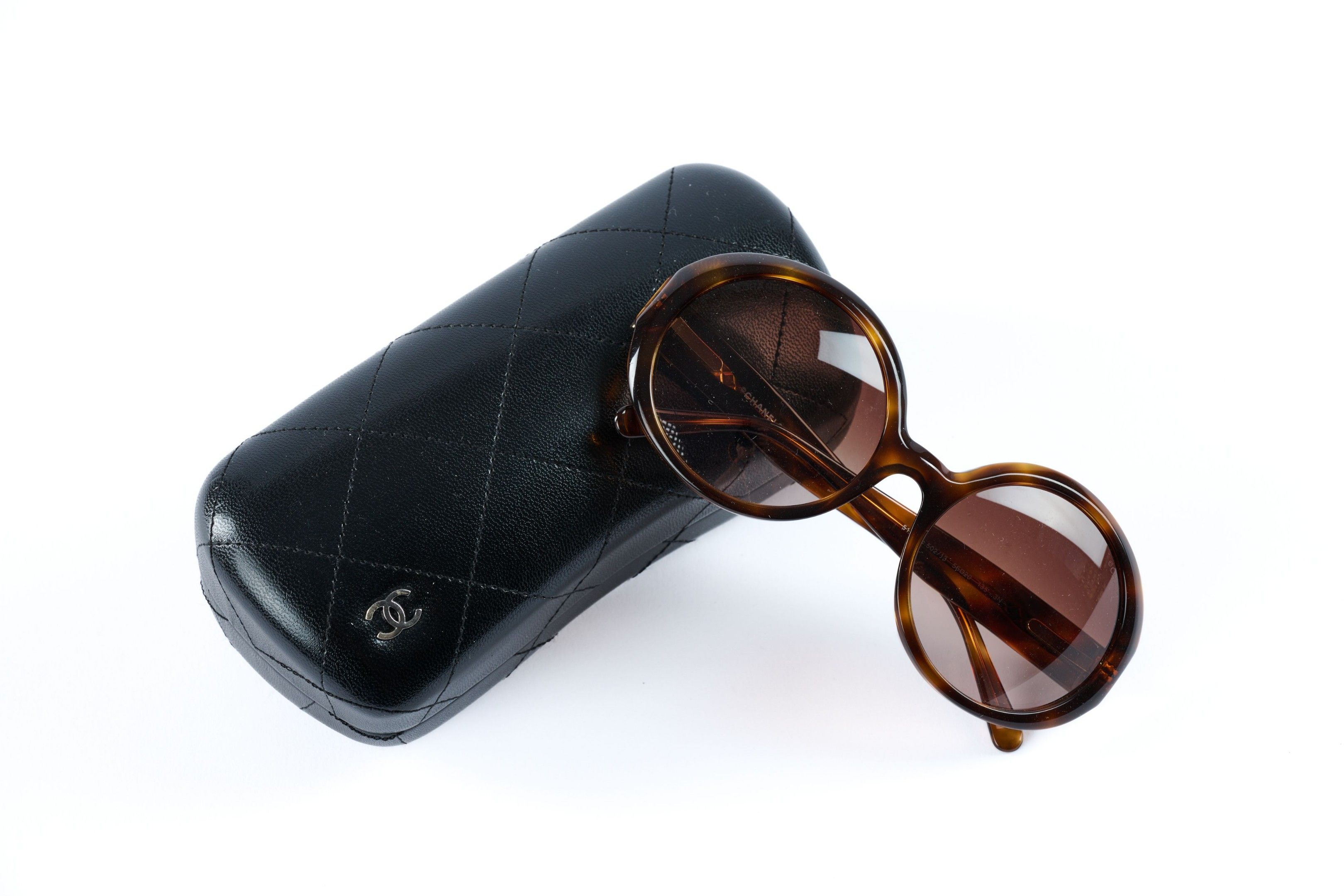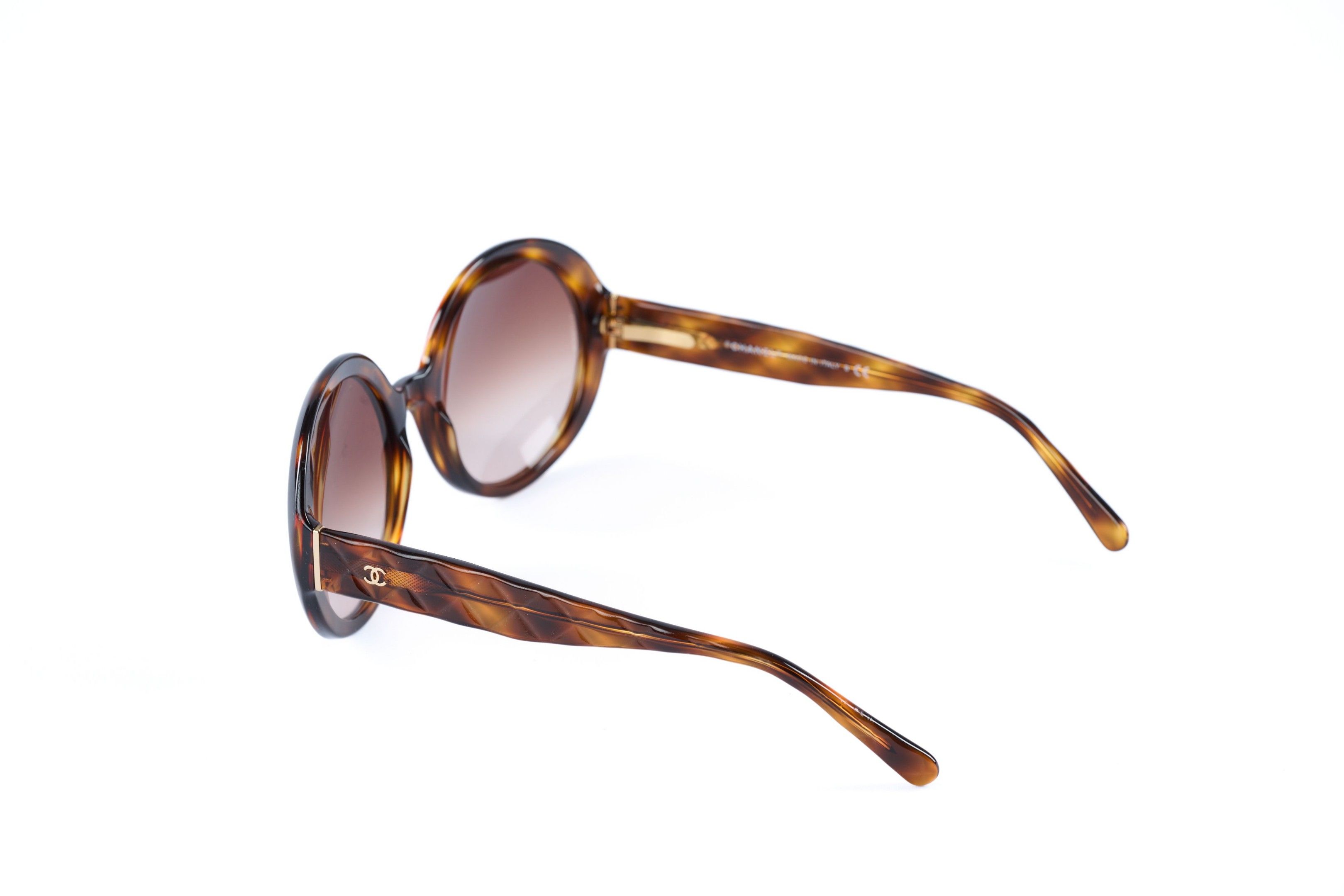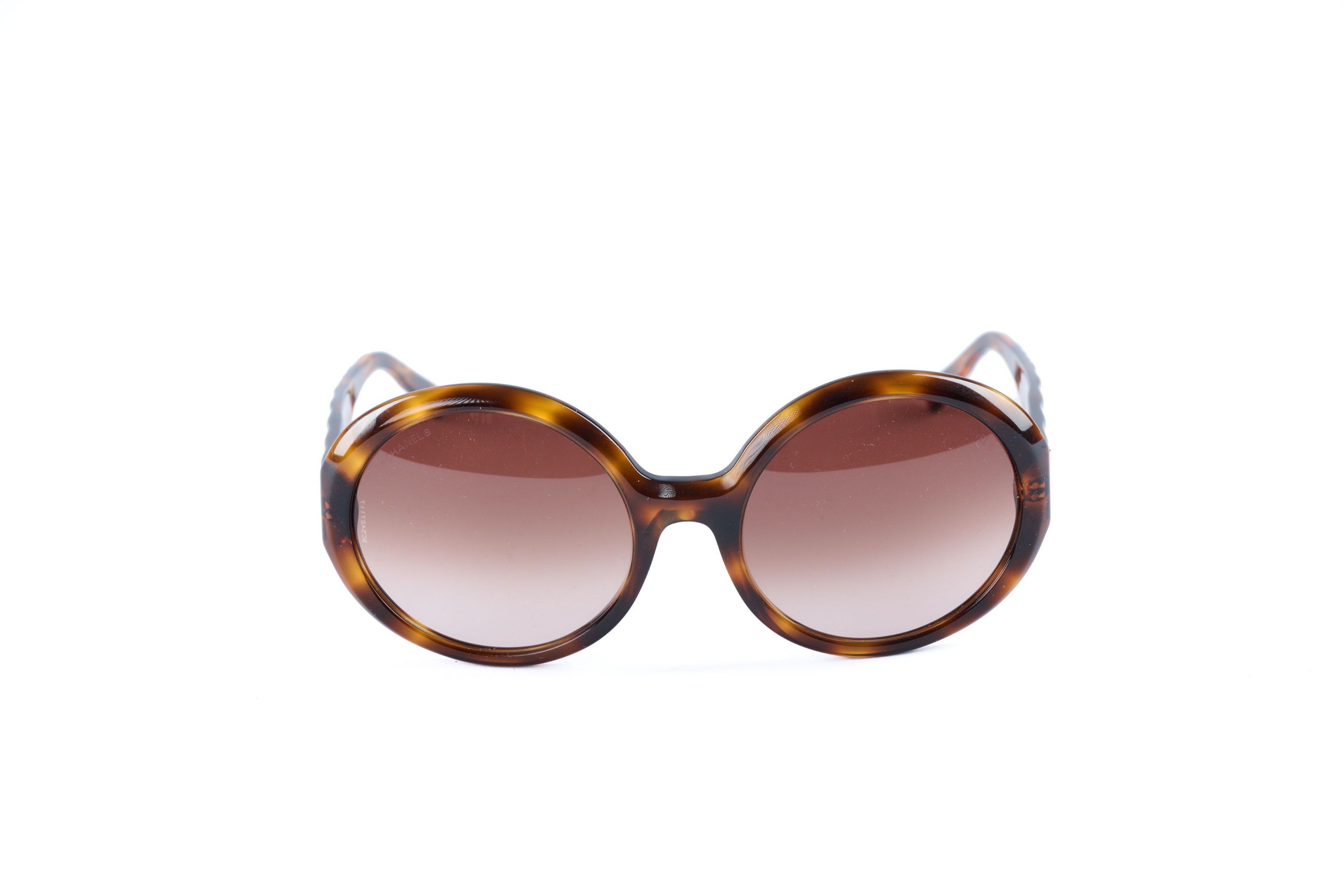 CHANEL. Round sunglasses in acetate imitating tortoiseshell,…