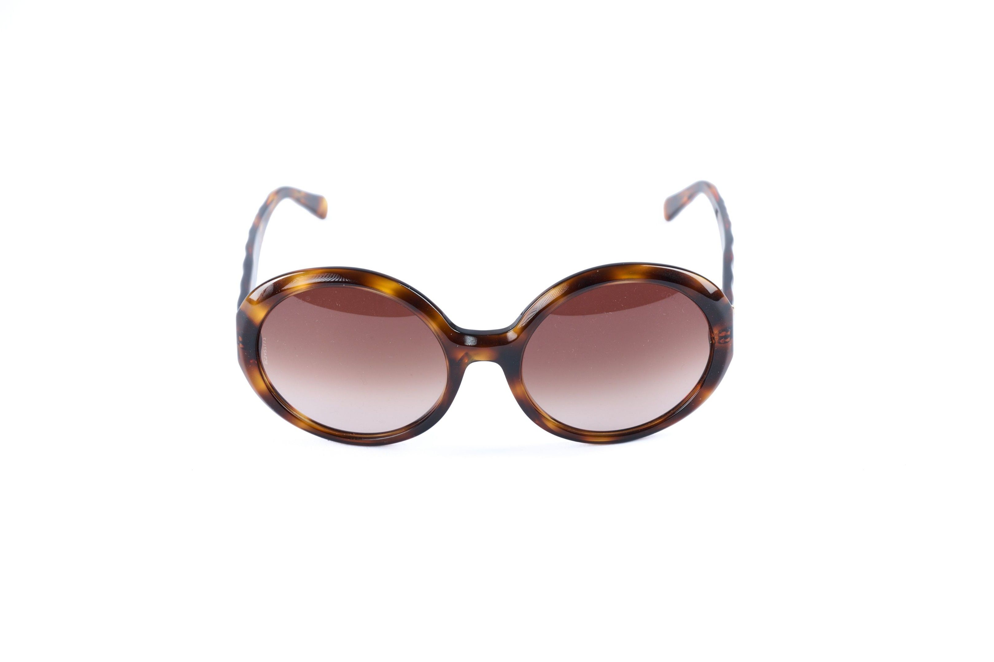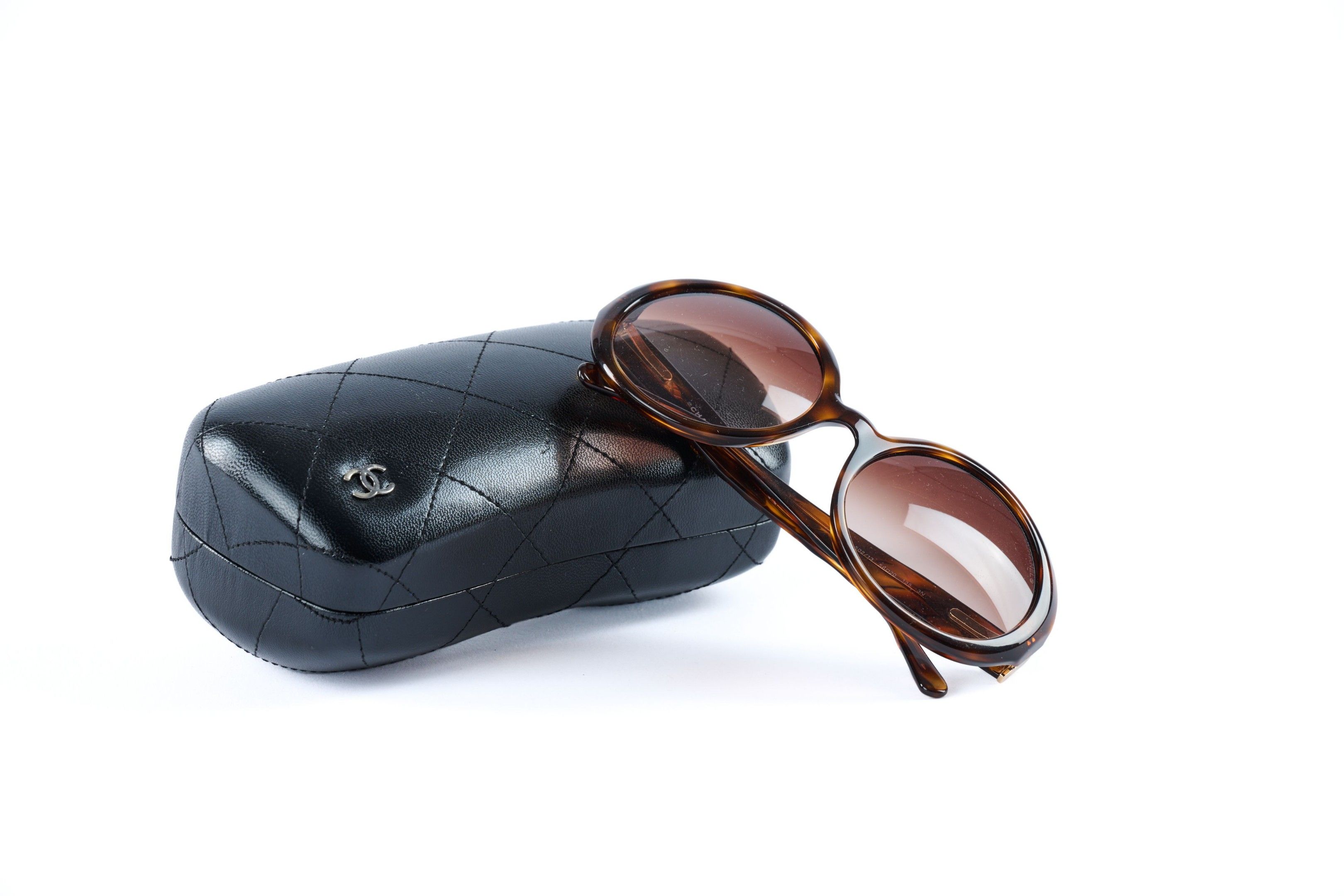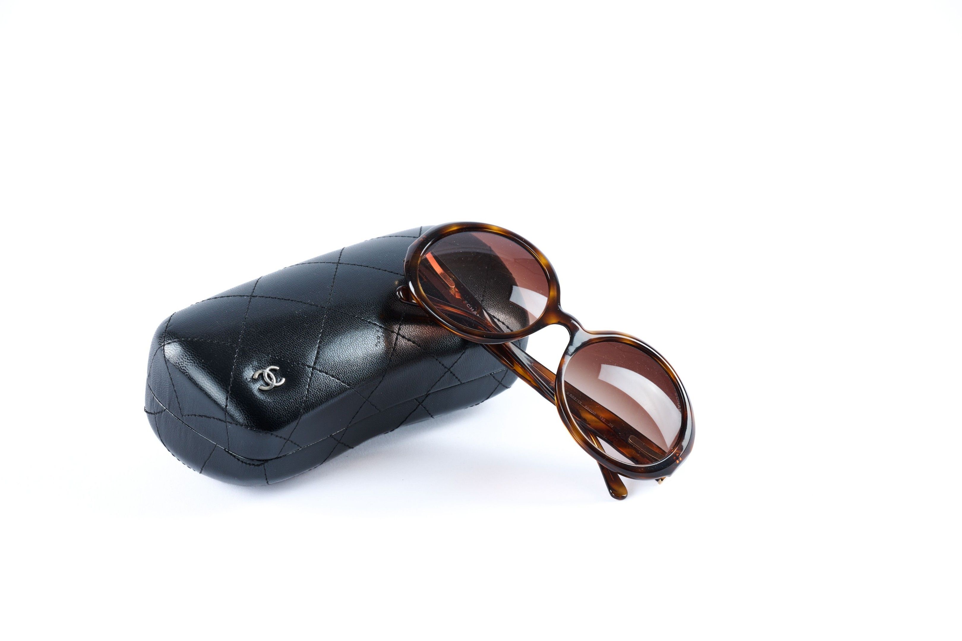 CHANEL. Round sunglasses in acetate imitating tortoiseshell,…