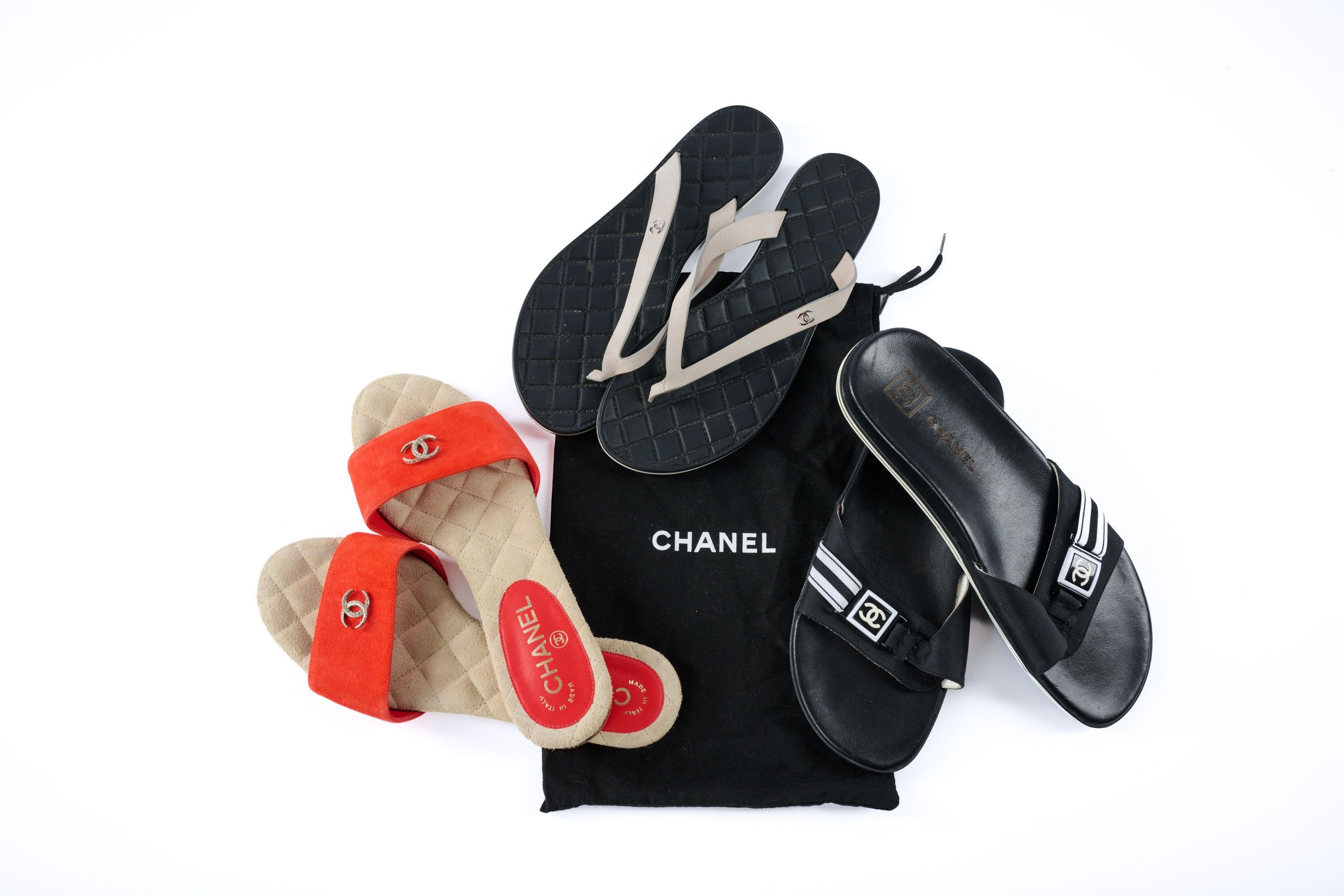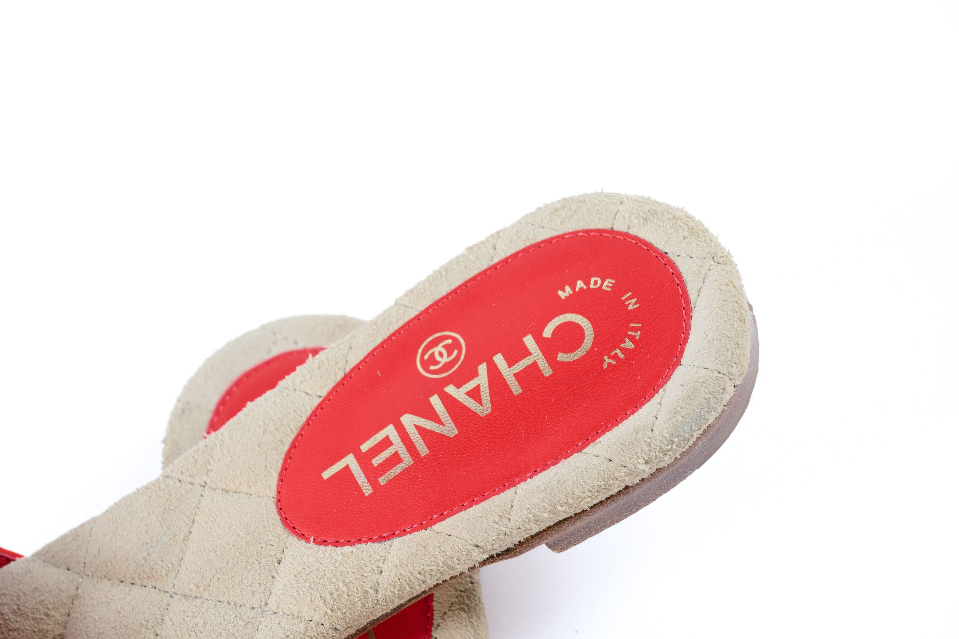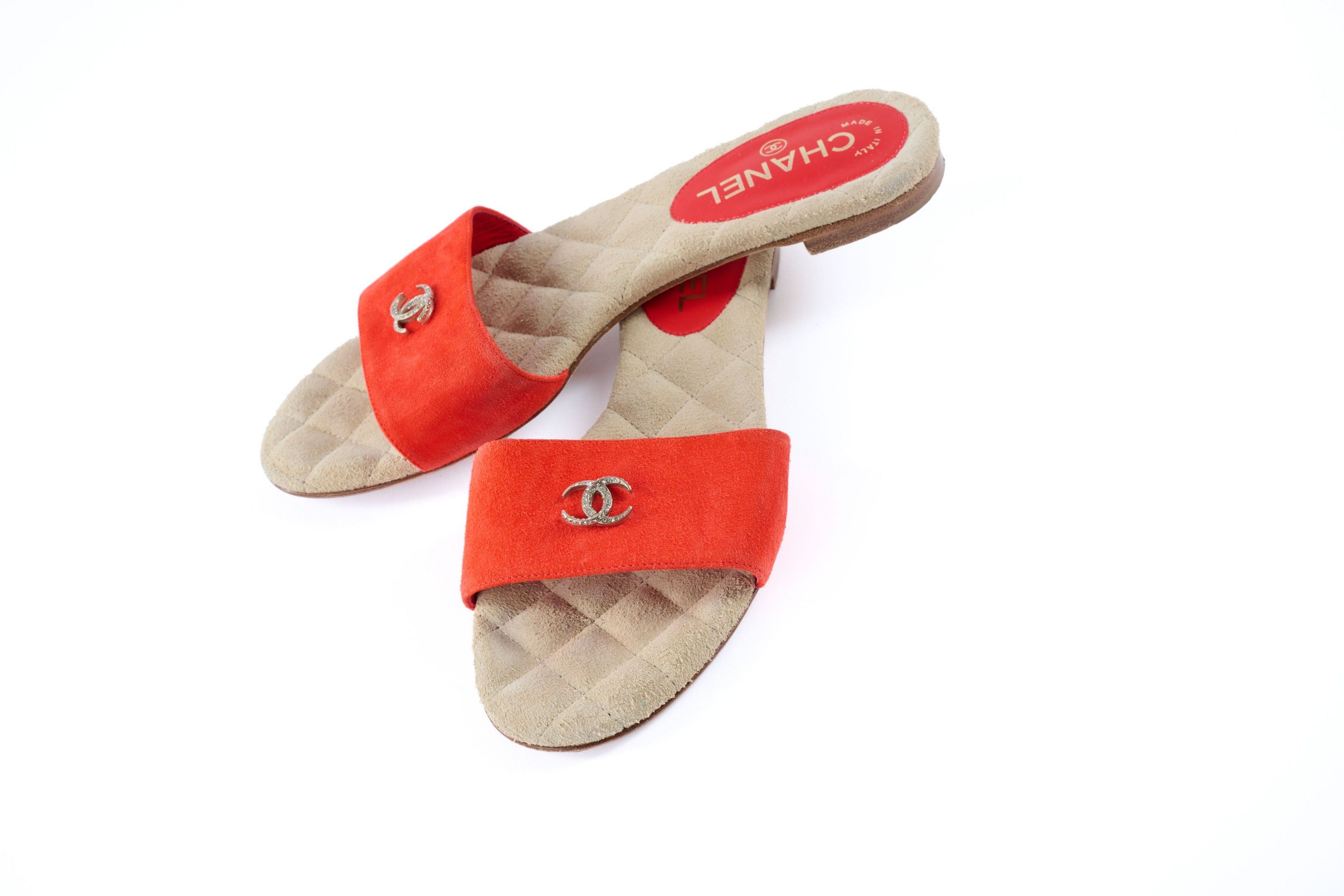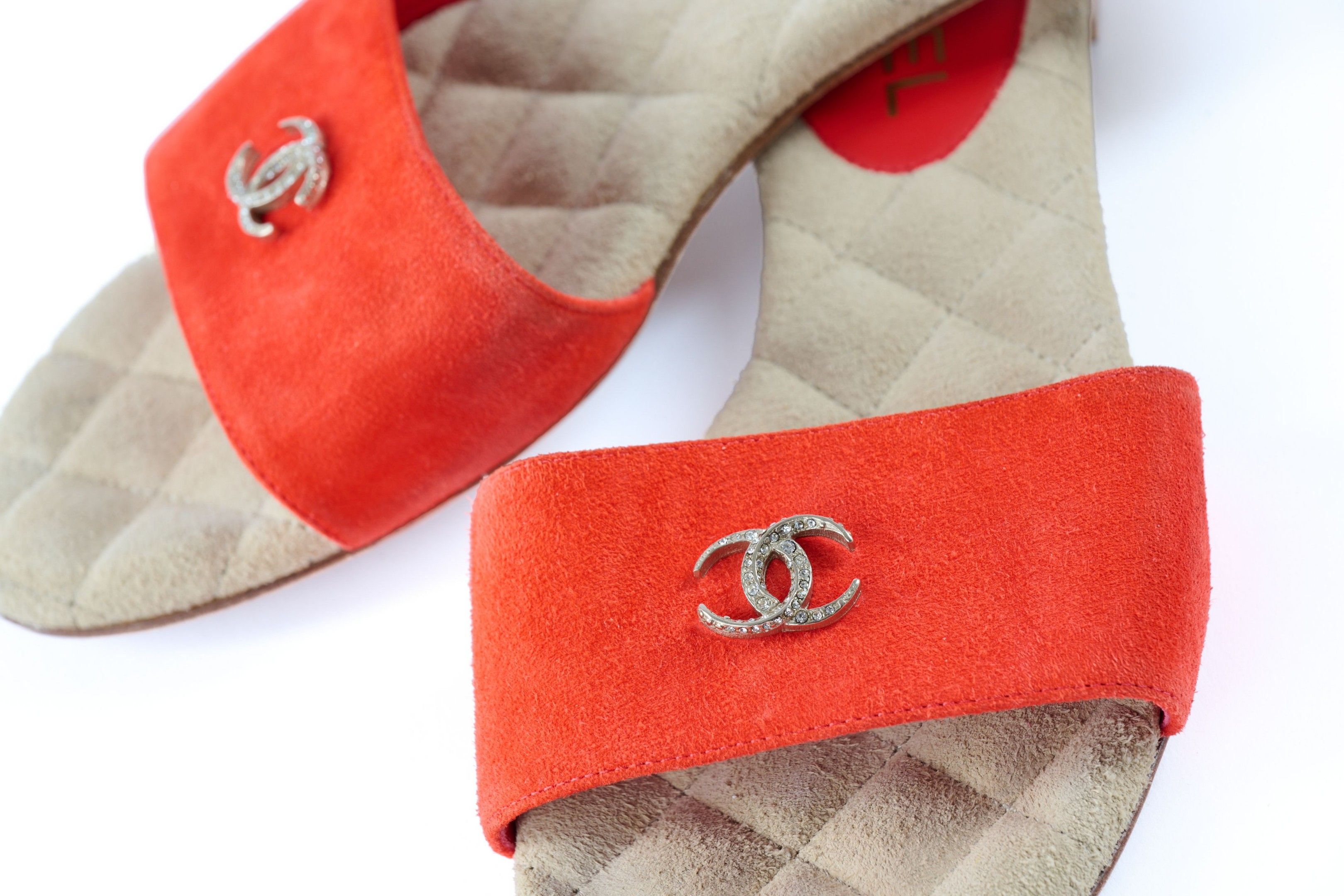 Premium CHANEL. Pair of orange suede nude shoes with a double C and …