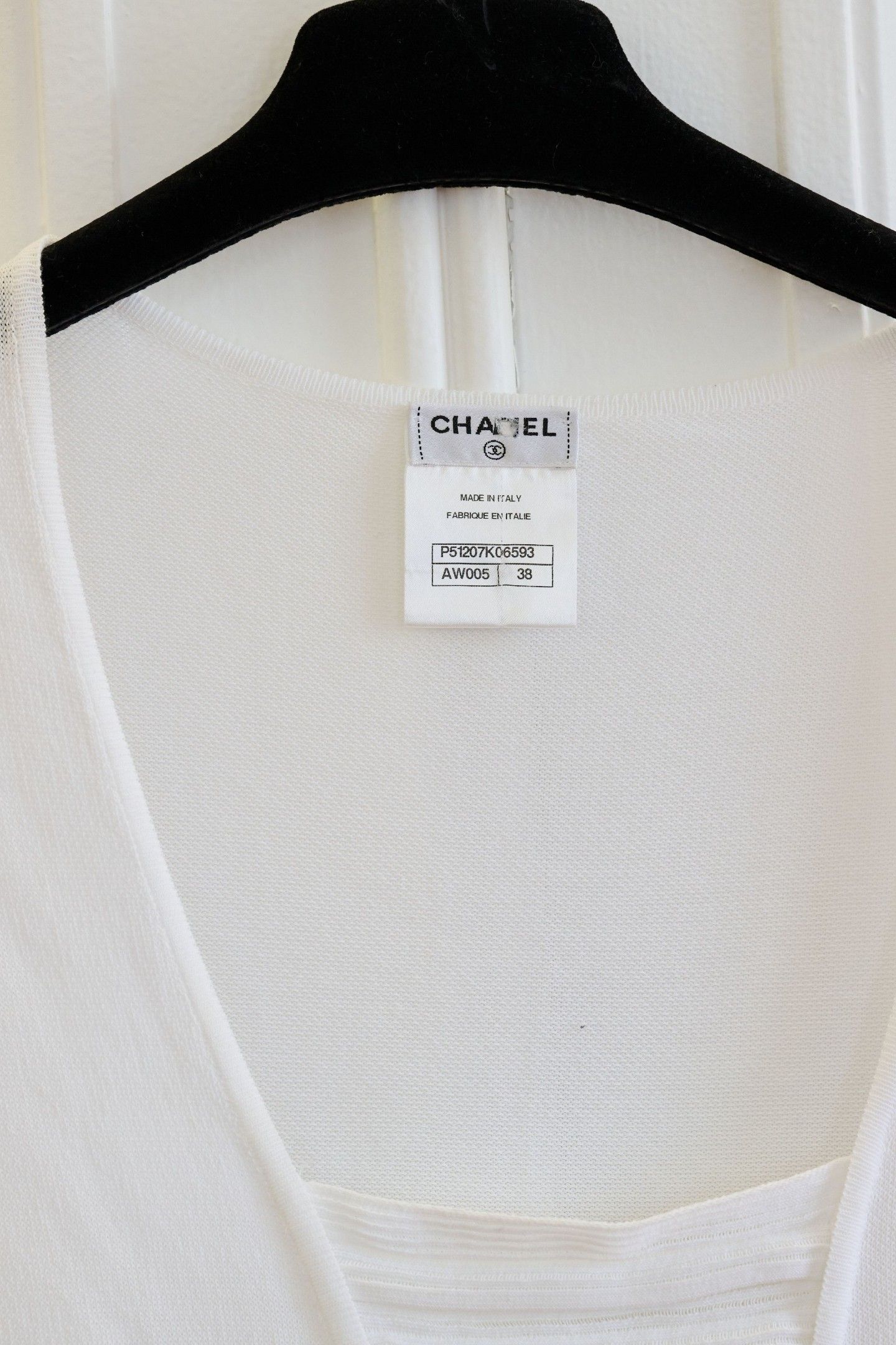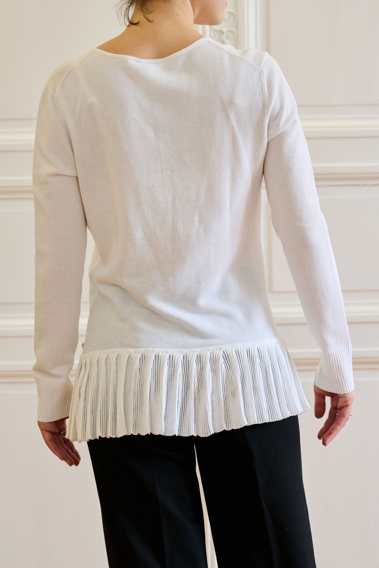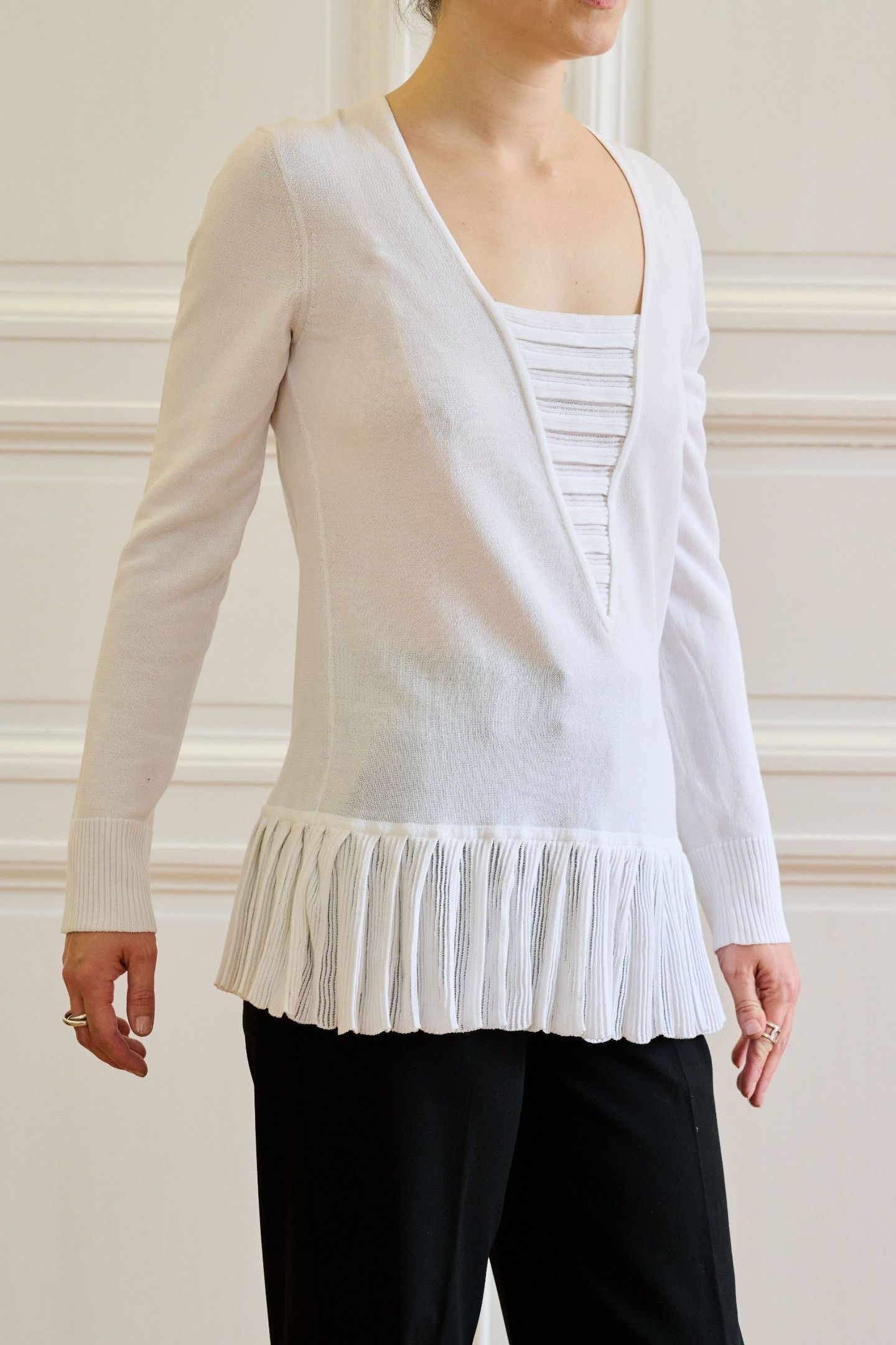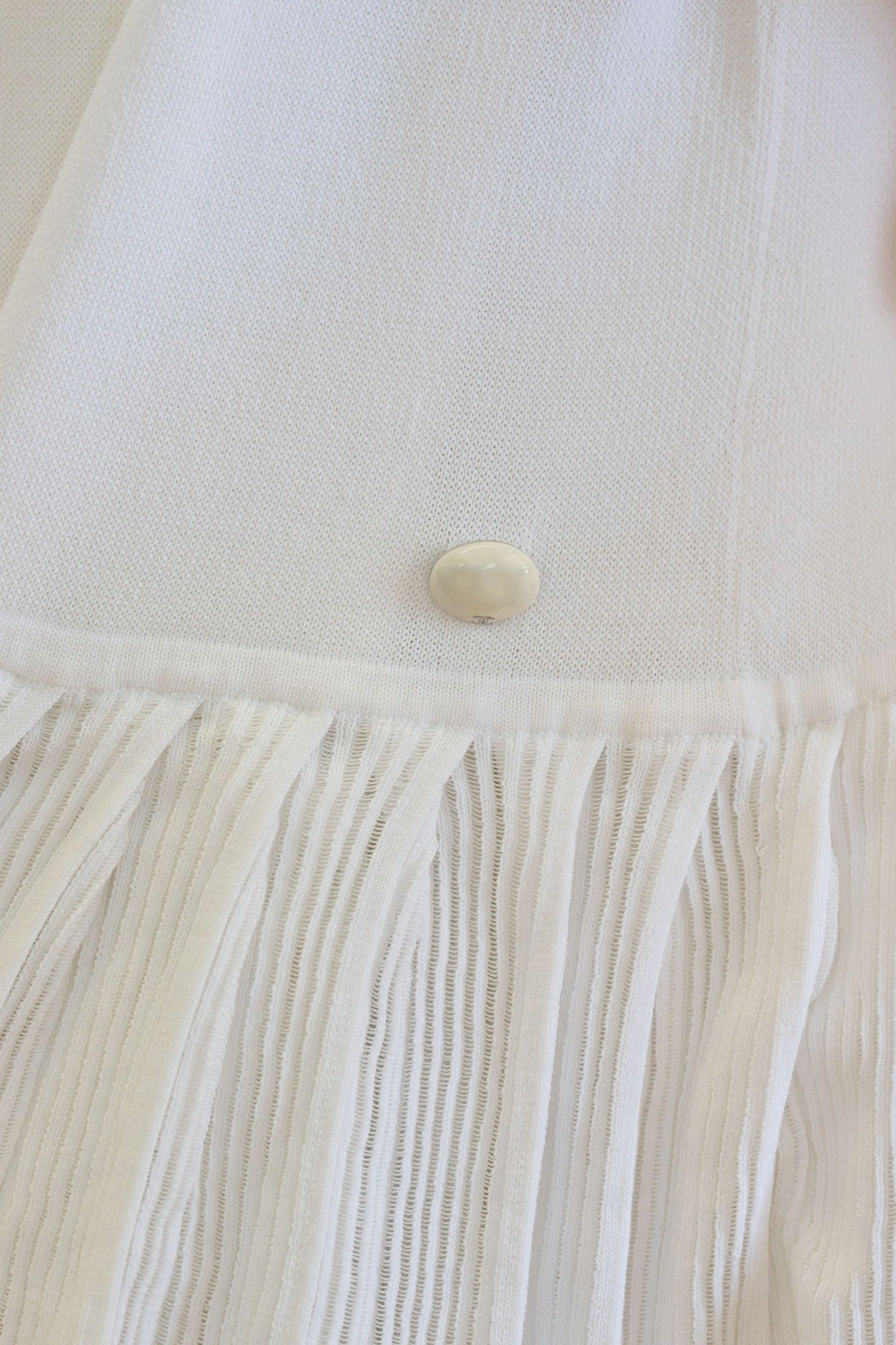 CHANEL. Long-sleeved top in white cotton, with a peplum-effe…
