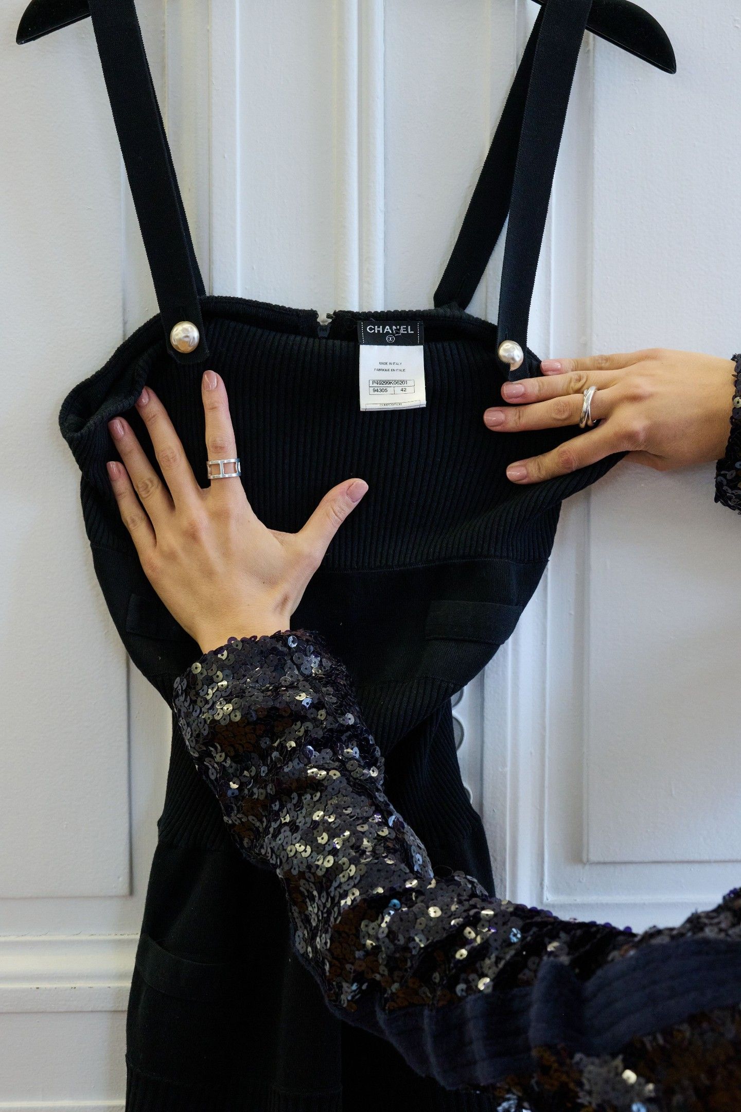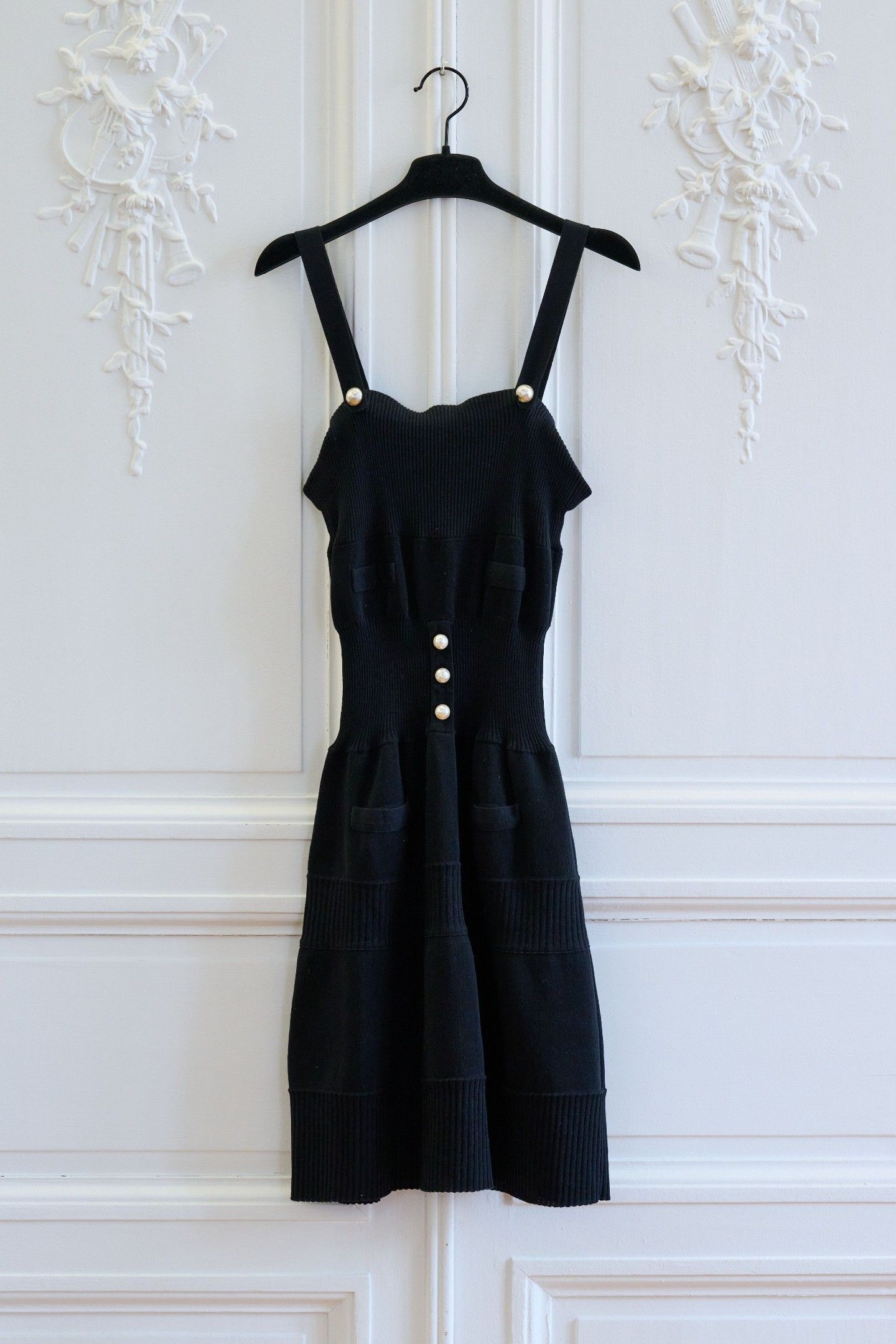 Premium CHANEL. Strapless dress in cotton-blend knit, the waist and …