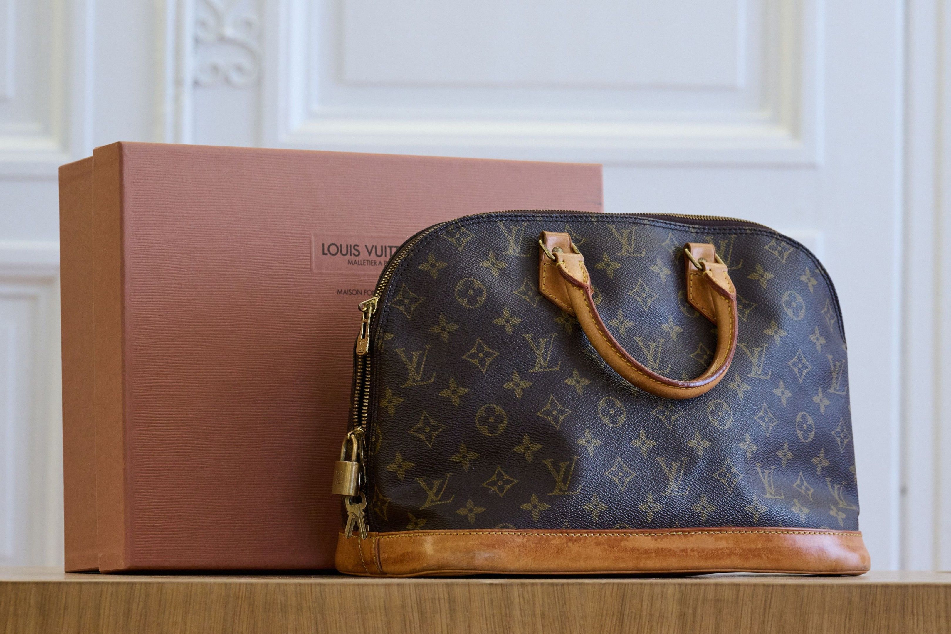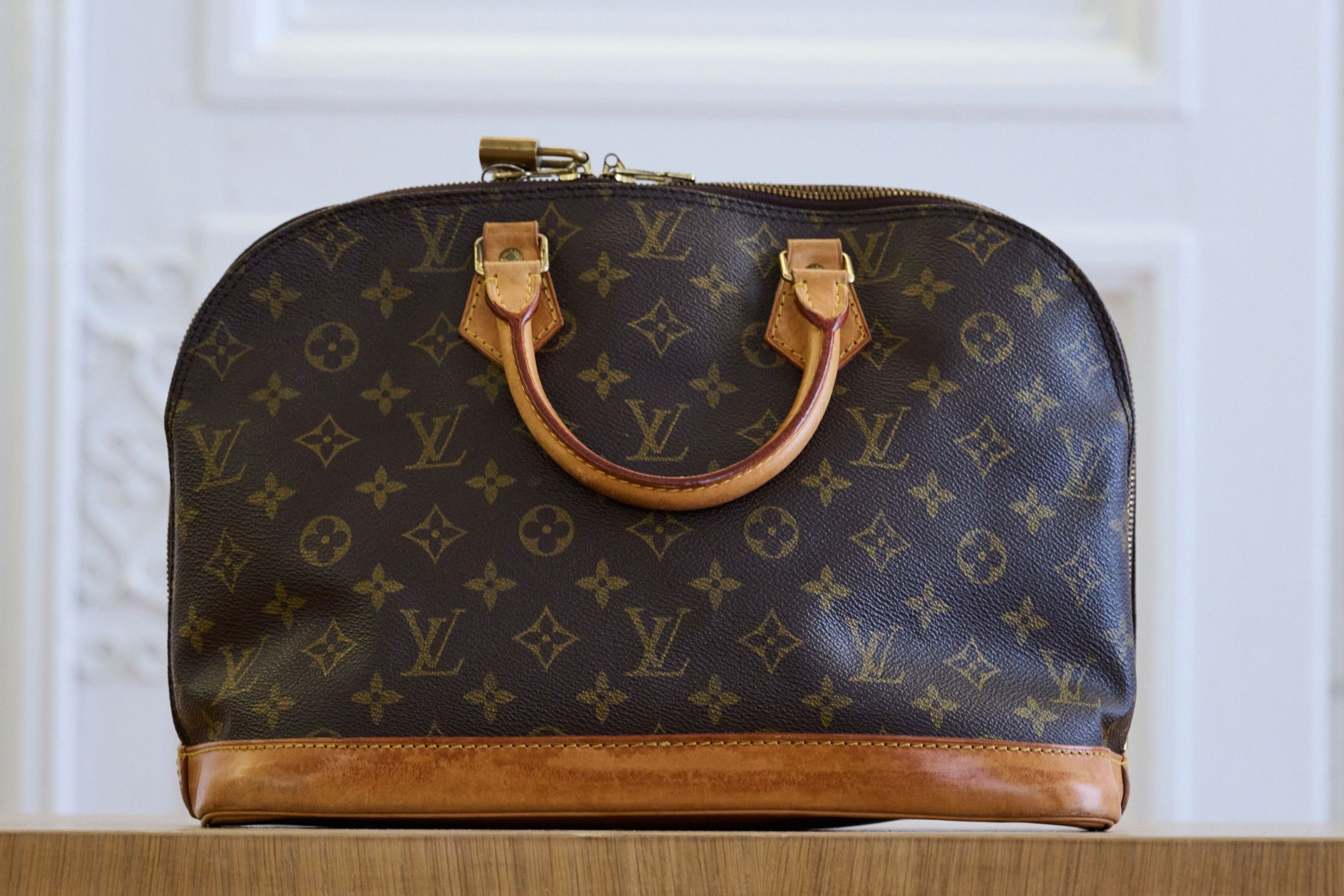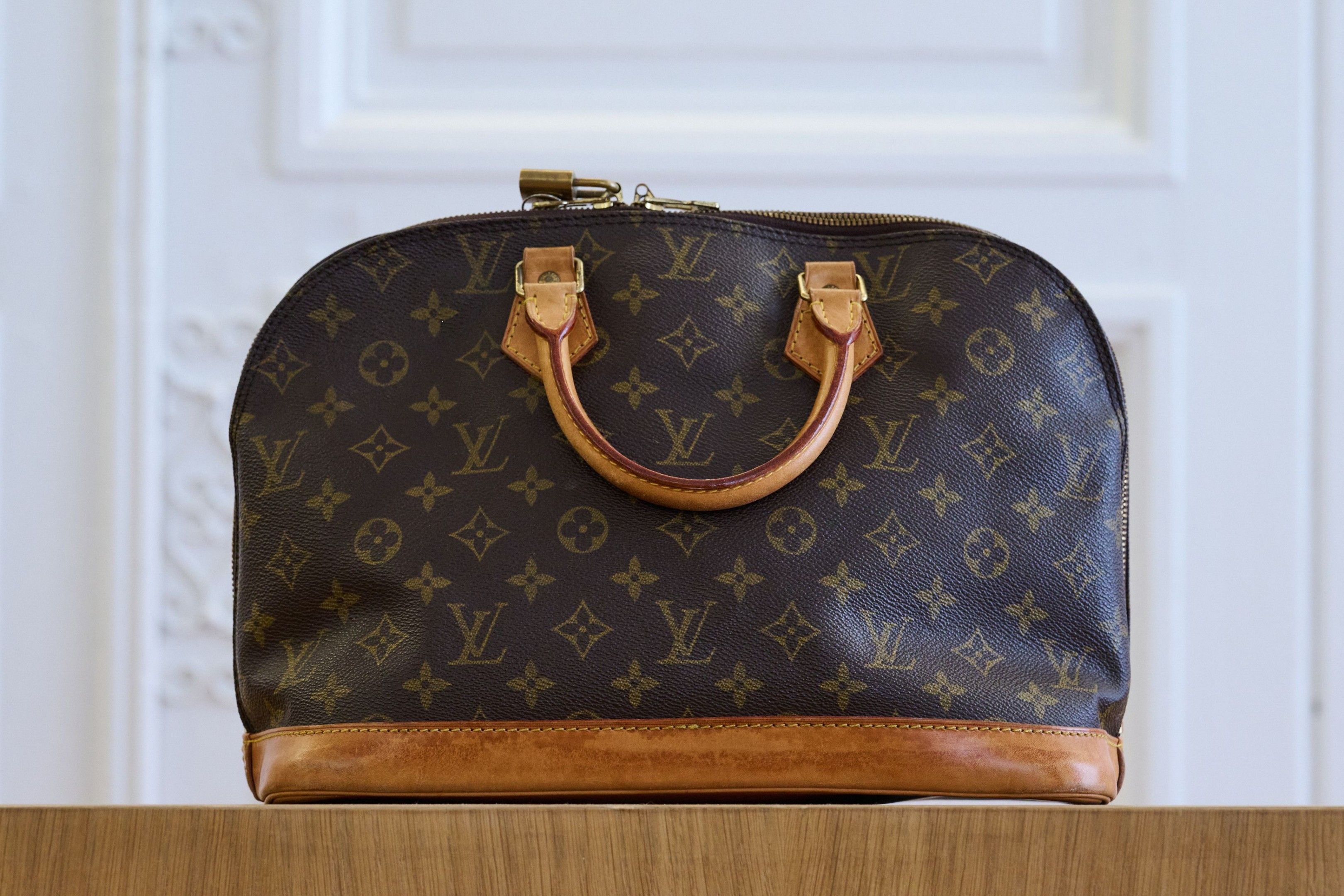 Premium LOUIS VUITTON. Alma" bag in Monogram canvas and leather, dou…