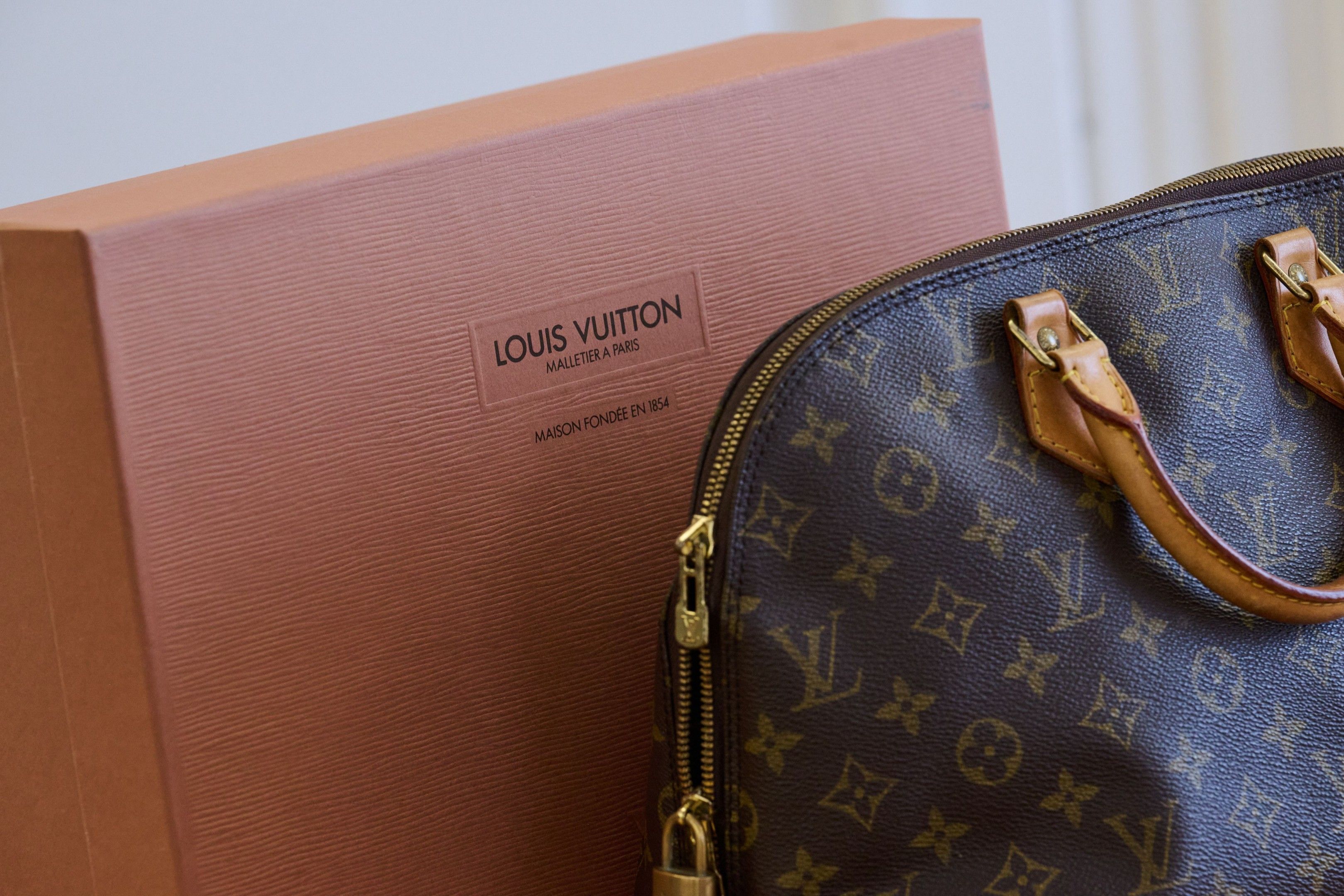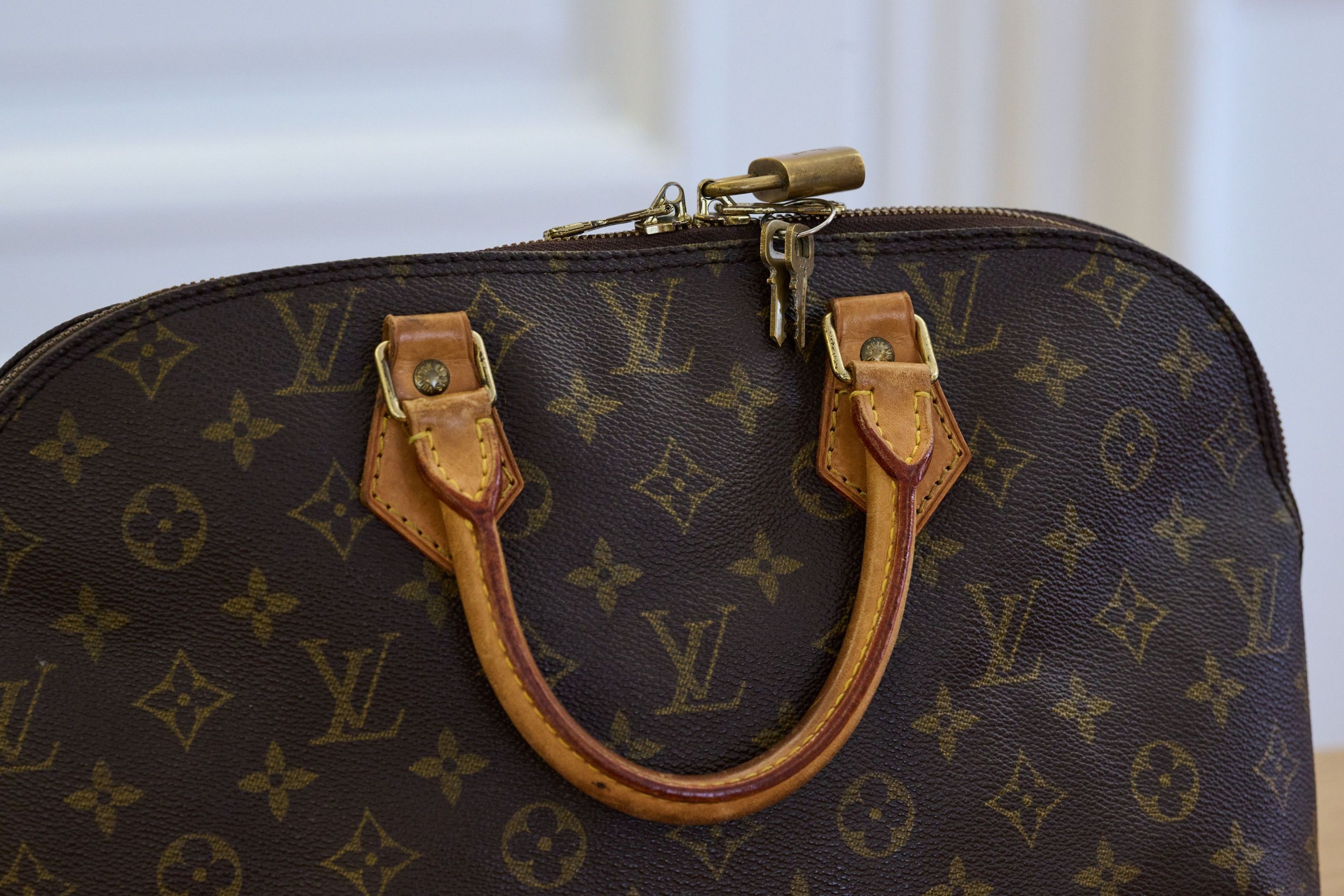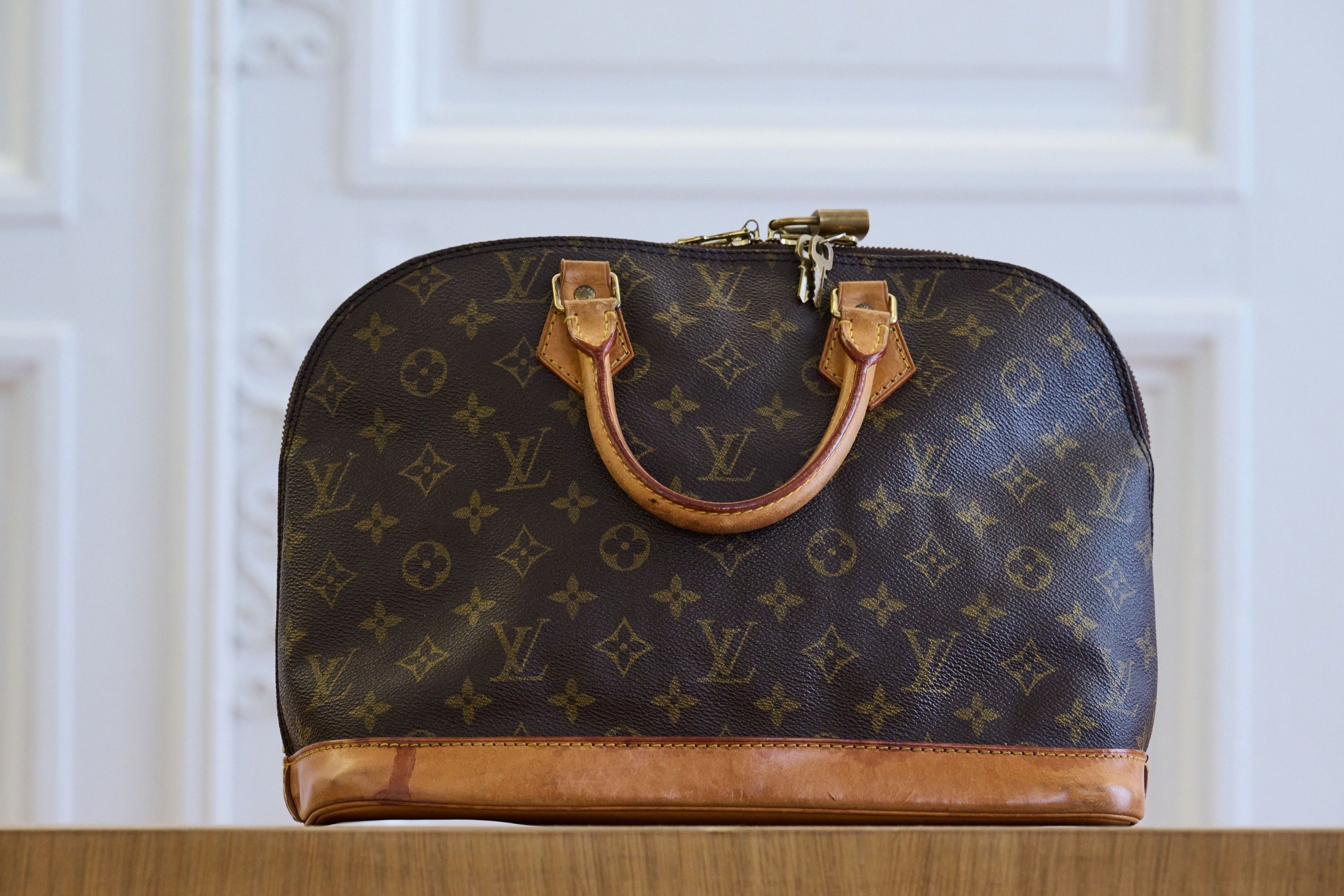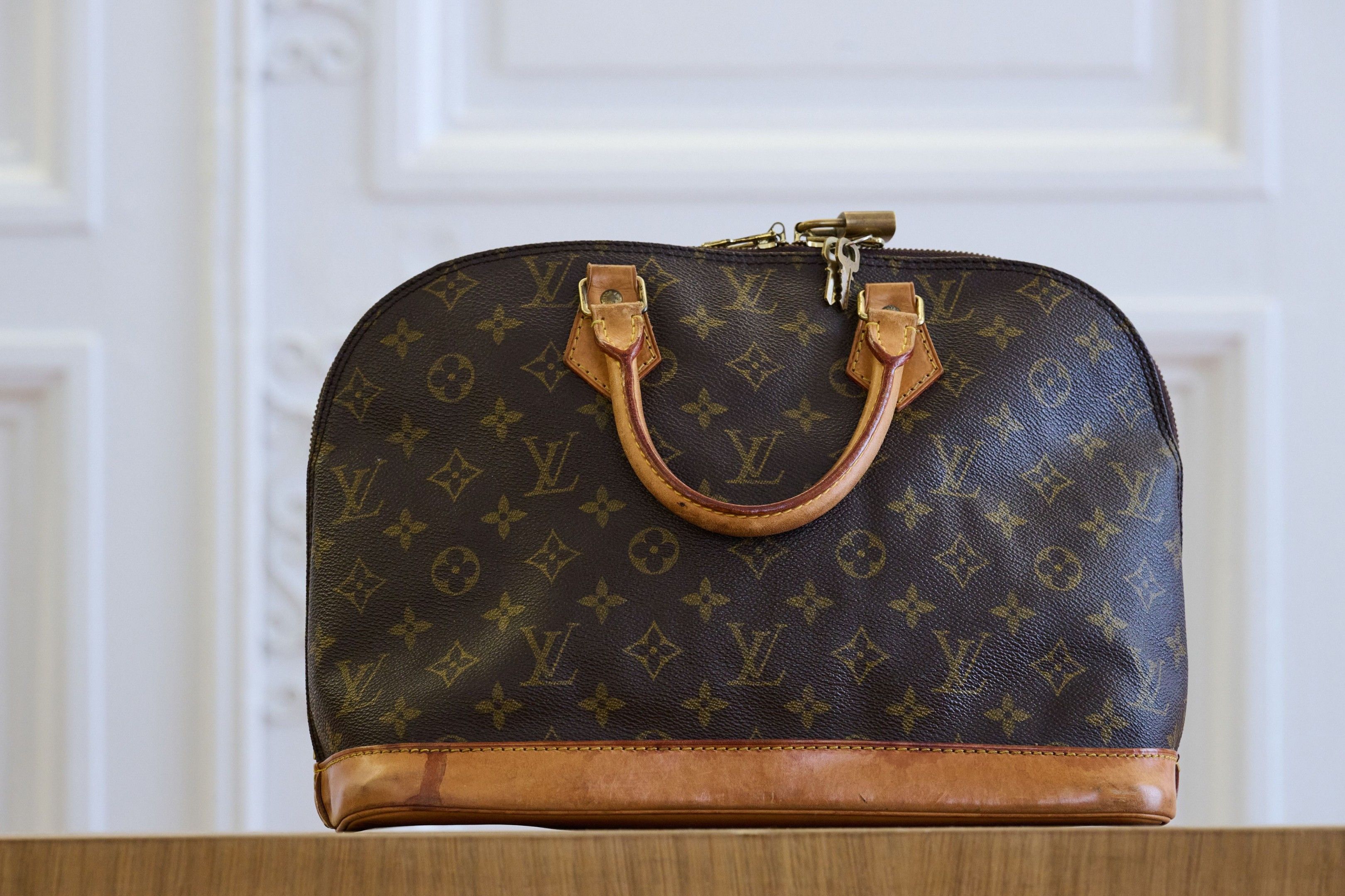 Premium LOUIS VUITTON. Alma" bag in Monogram canvas and leather, dou…