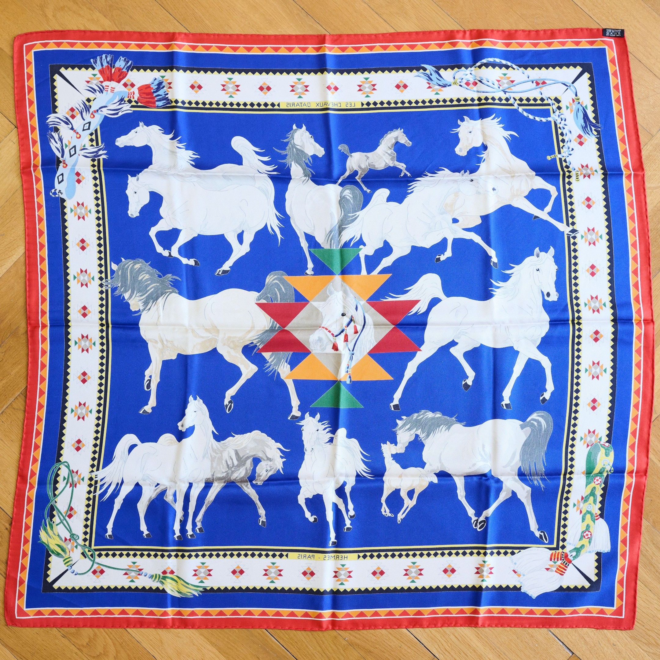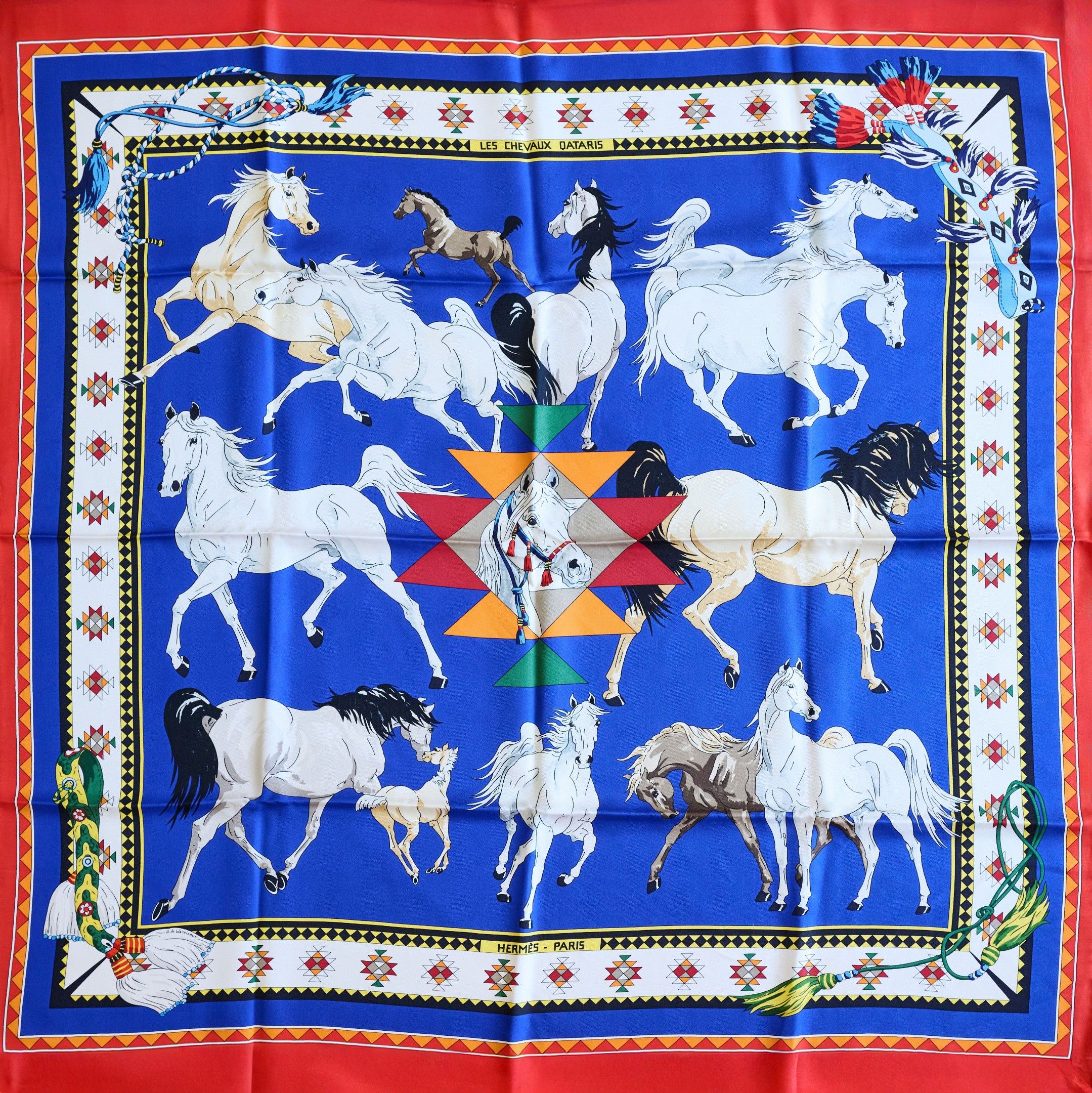 Premium HERMES. Silk square model "Les chevaux Qataris" decorated in…