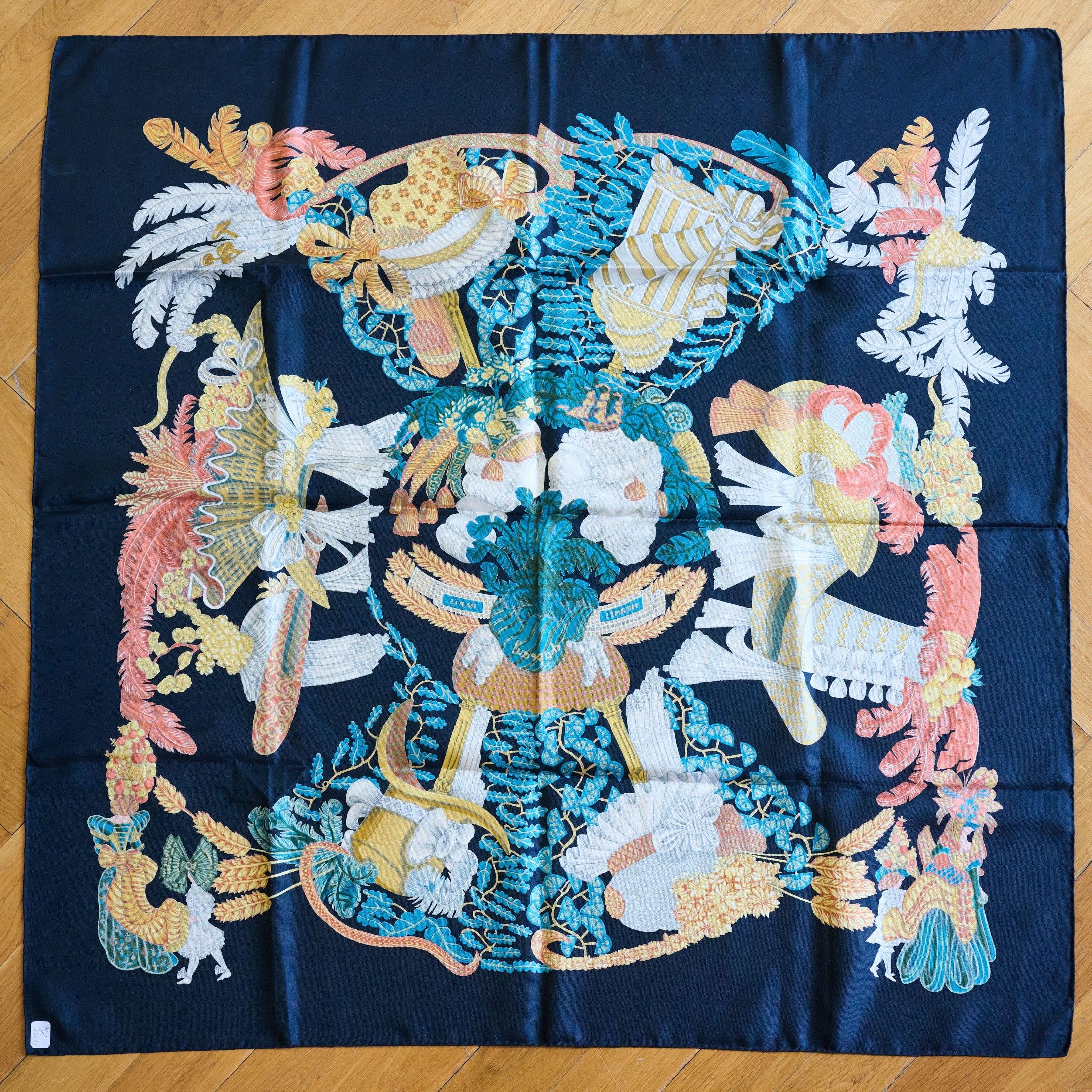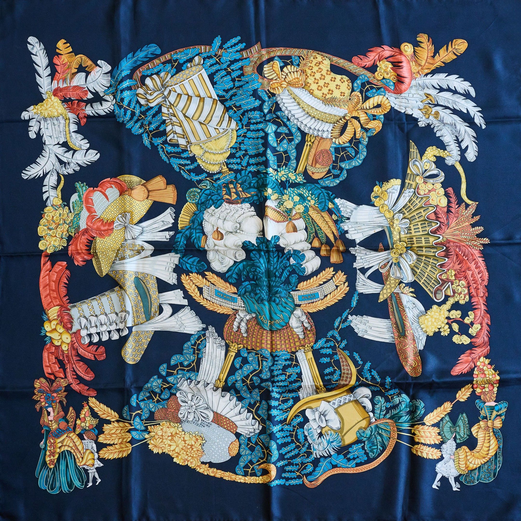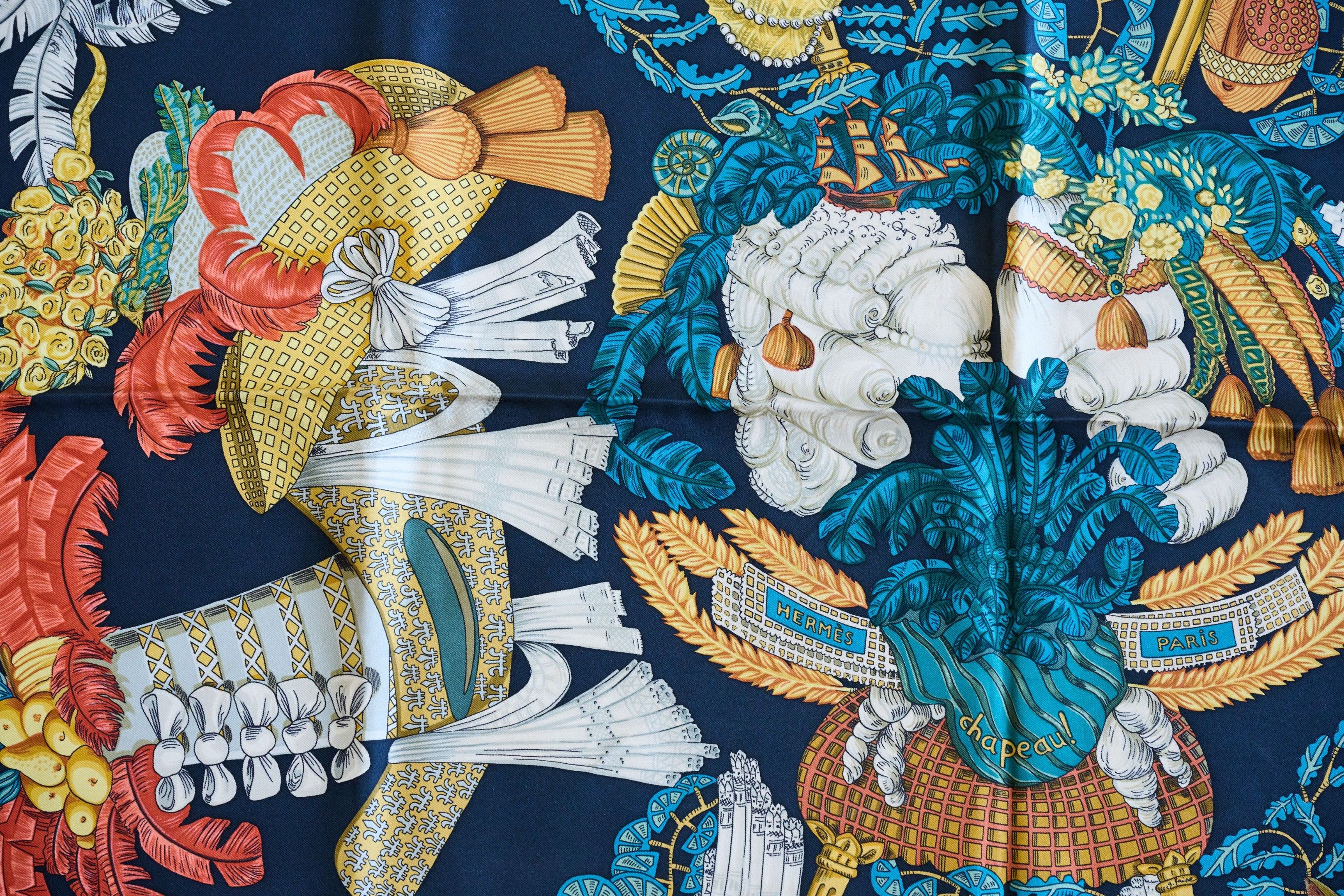 HERMES. Silk square "Chapeau!" model with polychrome decorat…