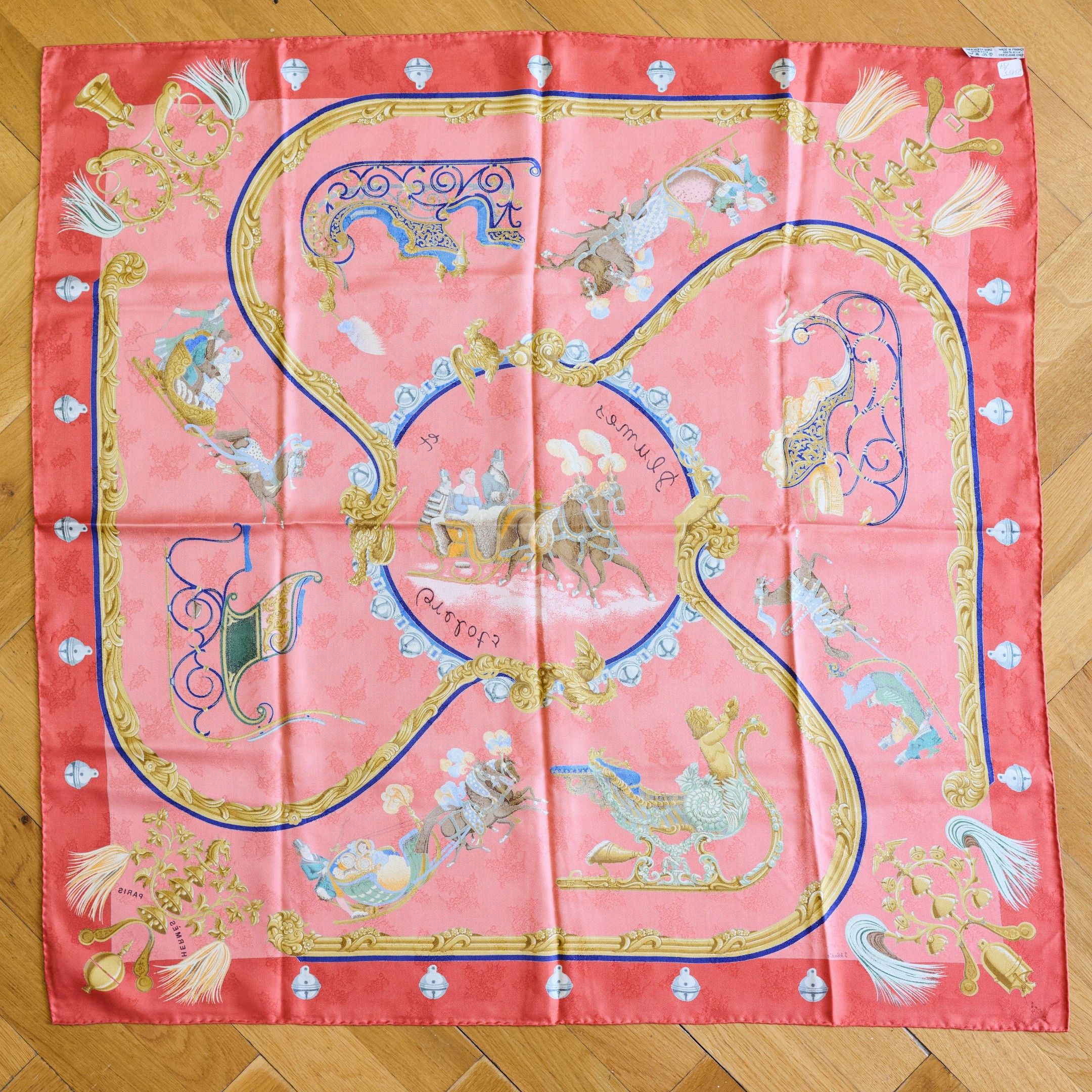 HERMES. Plumes et Grelots" damask silk square with polychrom…